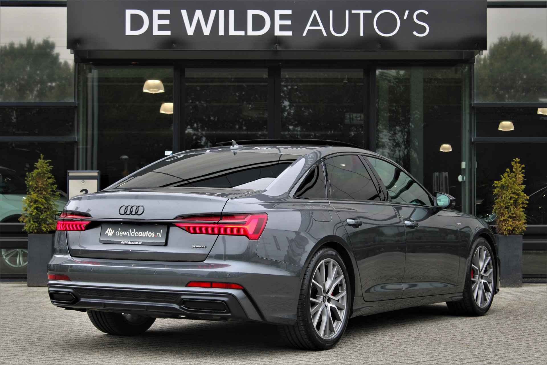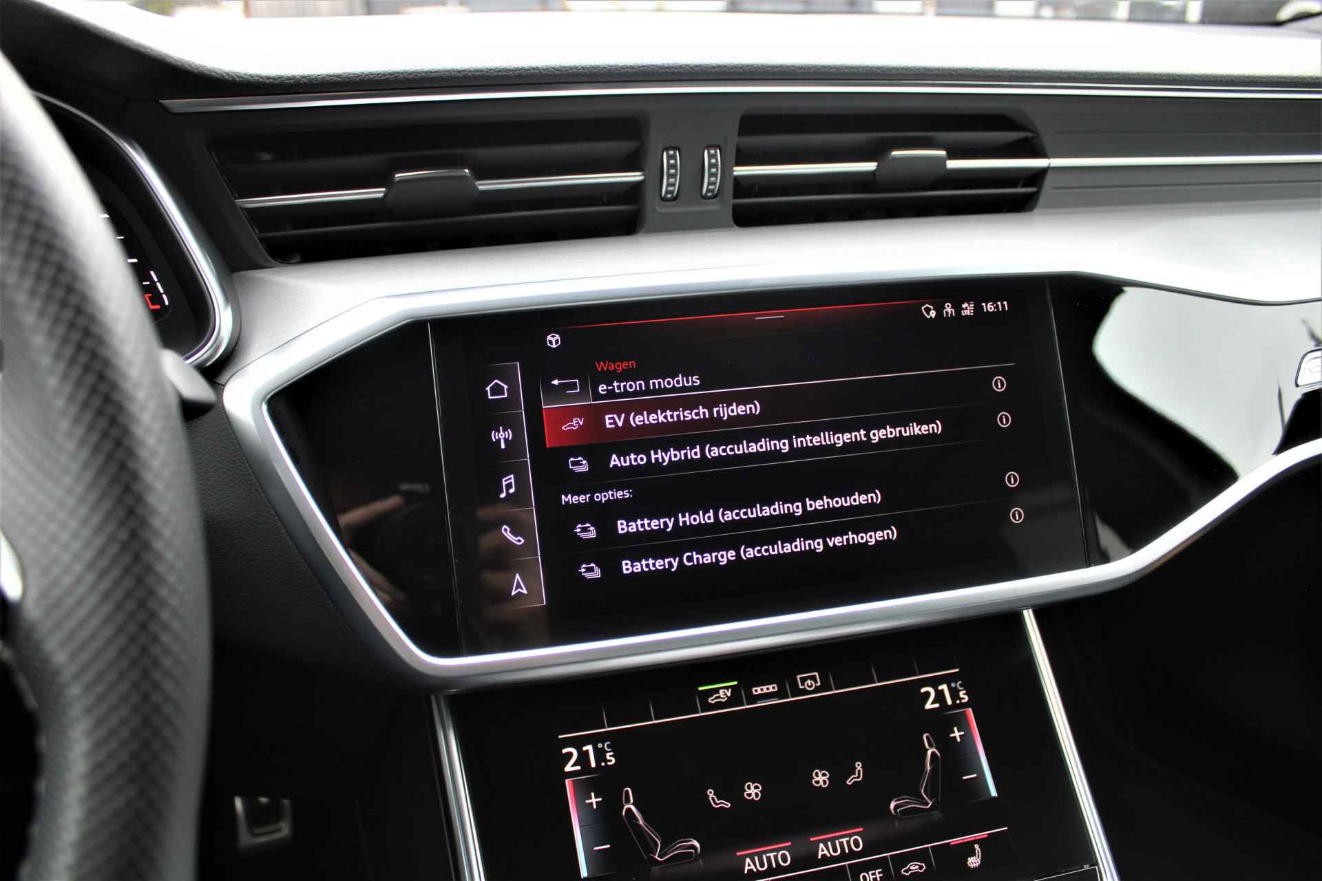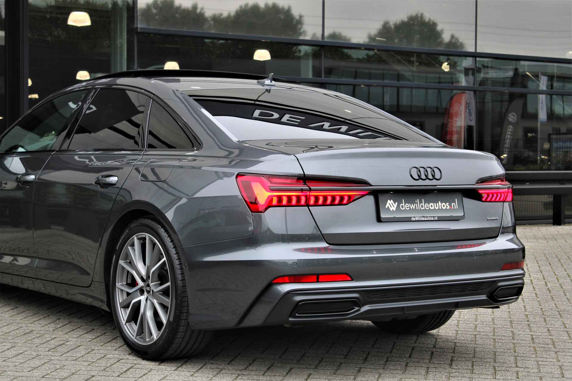 Audi A6 Limousine 55 TFSI e hybride quattro Competition S-line in de prachtige kleur 'Daytonagrijs metallic' gecombineerd met het zwart-optiek pakket. De Audi A6 is compleet Audi dealer onderhouden en heeft één eigenaar gehad. Het betreft een BTW-auto, waardoor de BTW voor de zakelijke rijder is terug te vorderen. De Audi A6 55 TFSI e heeft een gecombineerd vermogen van 367 pk en een elektrische actieradius van +/- 60 kilometer. Verder is de auto super compleet uitgevoerd met o.a. de volgende lijst aan opties:
