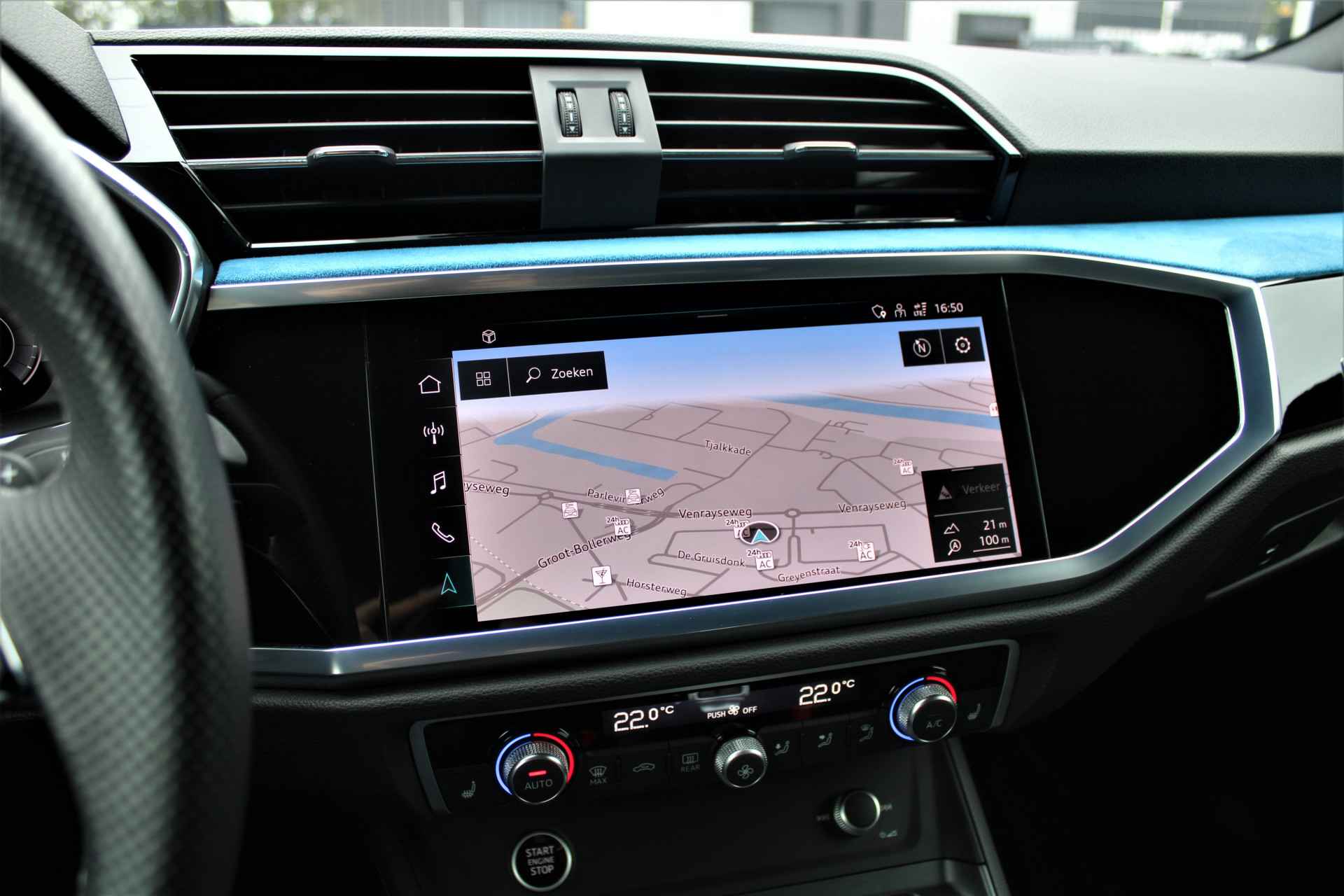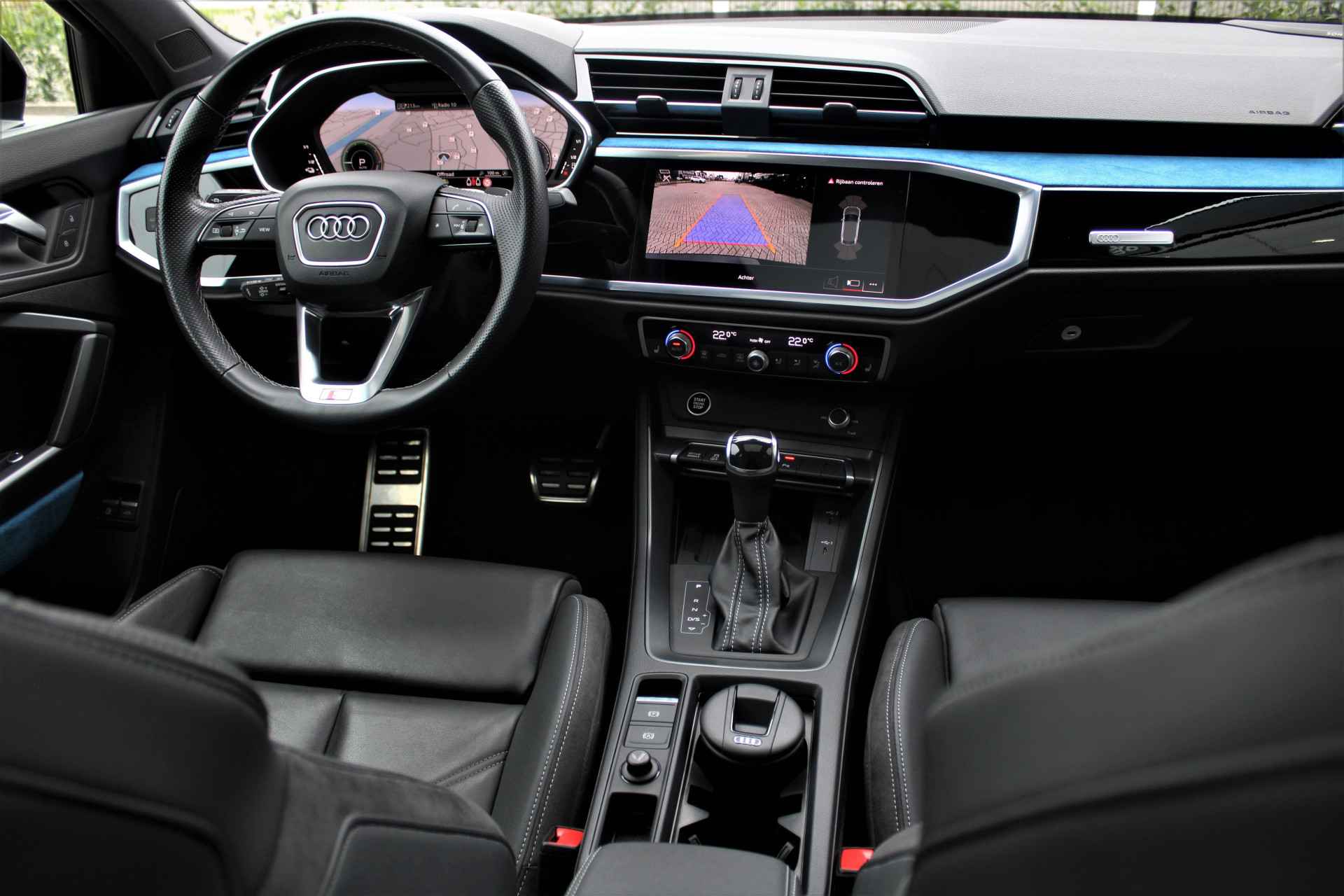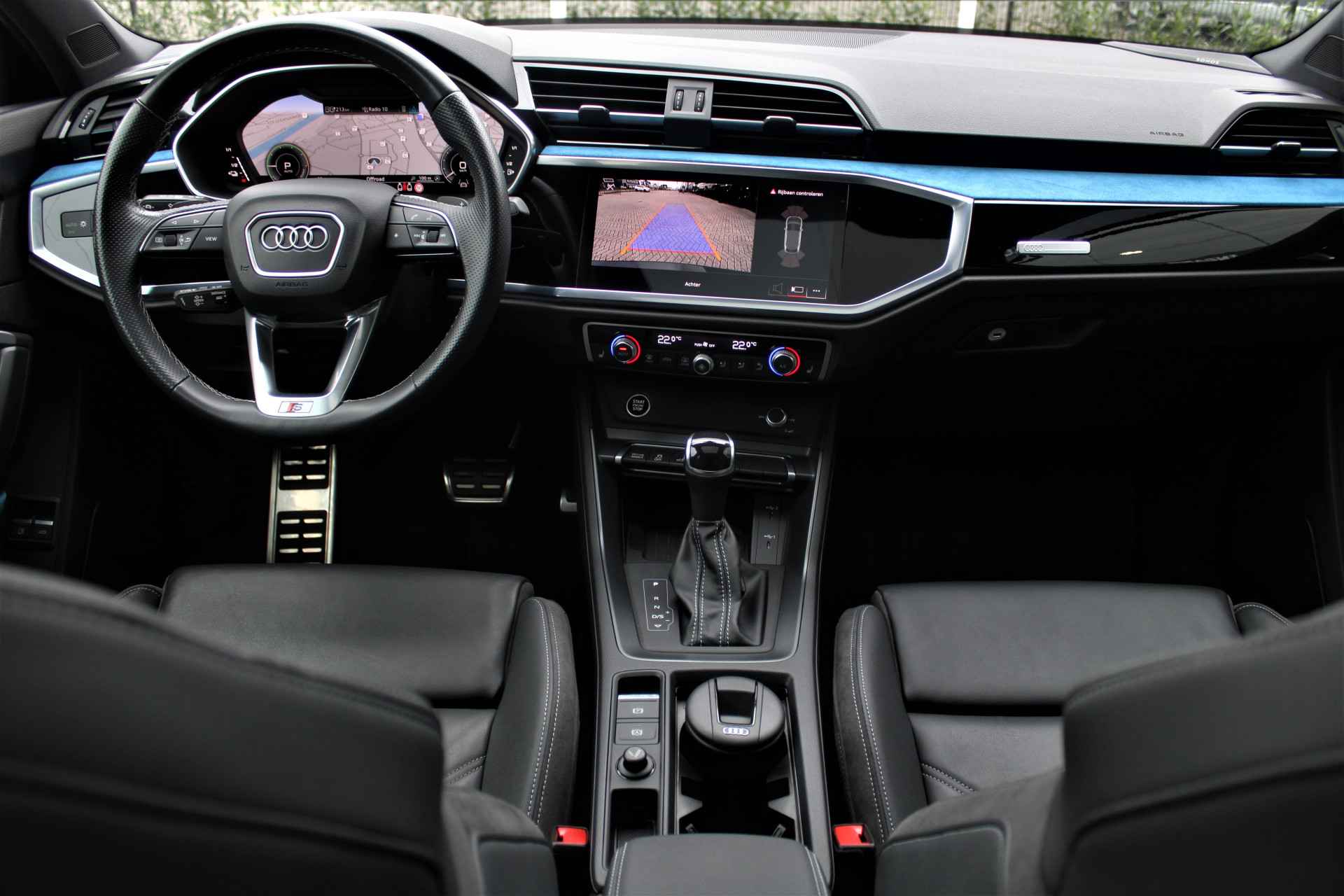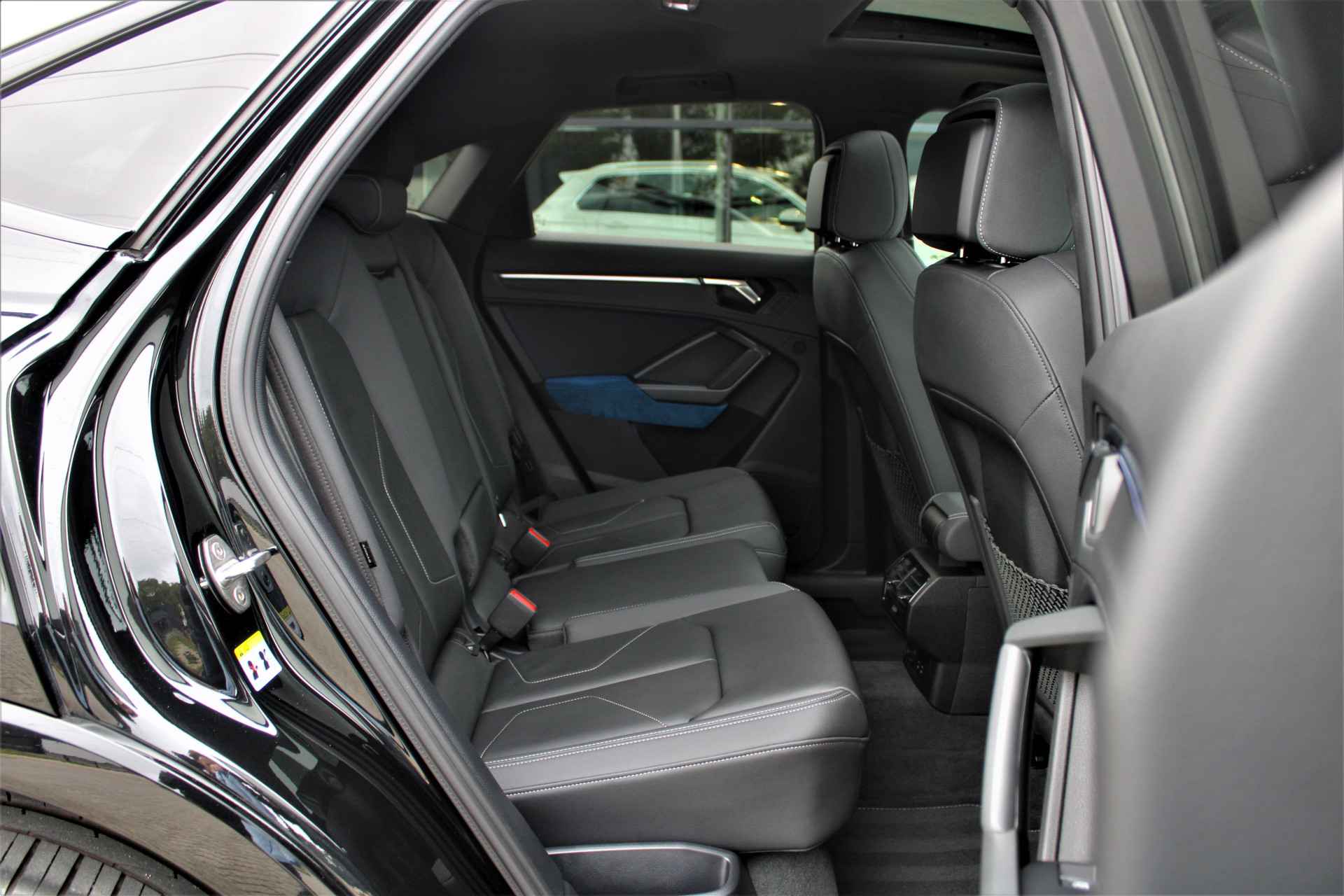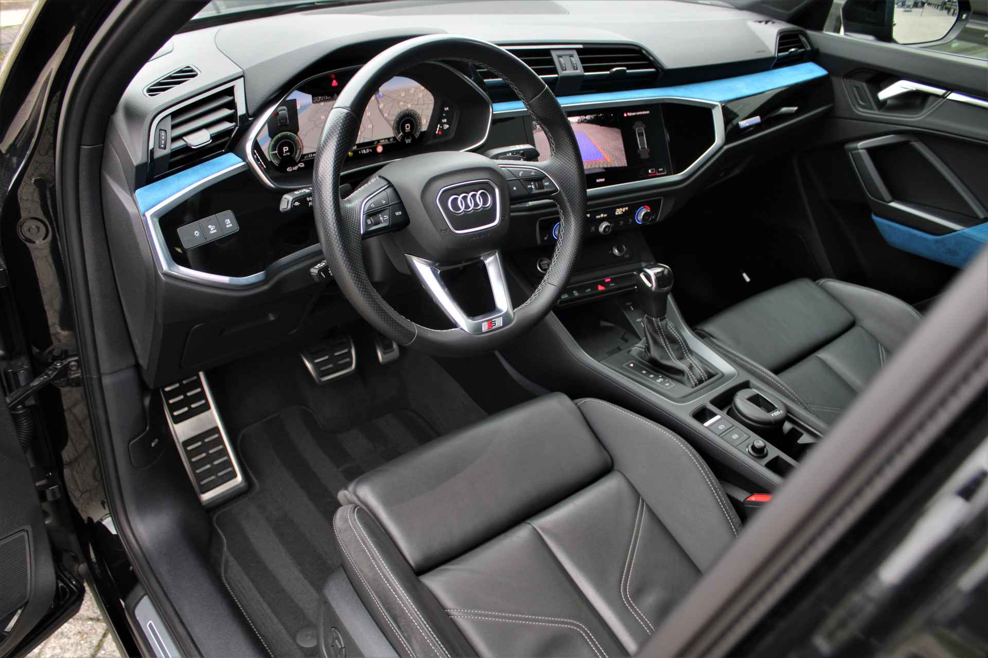 Audi Q3 Sportback 45 TFSI e hybride S-line uitgevoerd in de kleur 'Mythoszwart metallic'. De Audi Q3 Sportback heeft slechts 1 eigenaar gehad en is compleet Audi dealer onderhouden. Verder heeft de Q3 45 TFSI e Hybrid een gecombineerd vermogen van 245pk en een elektrische actieradius van +/- 50 km. Het betreft een BTW auto, waardoor de BTW voor een zakelijke rijder is terug te vorderen. De auto is super compleet uitgerust met o.a. de volgende lijst aan opties: