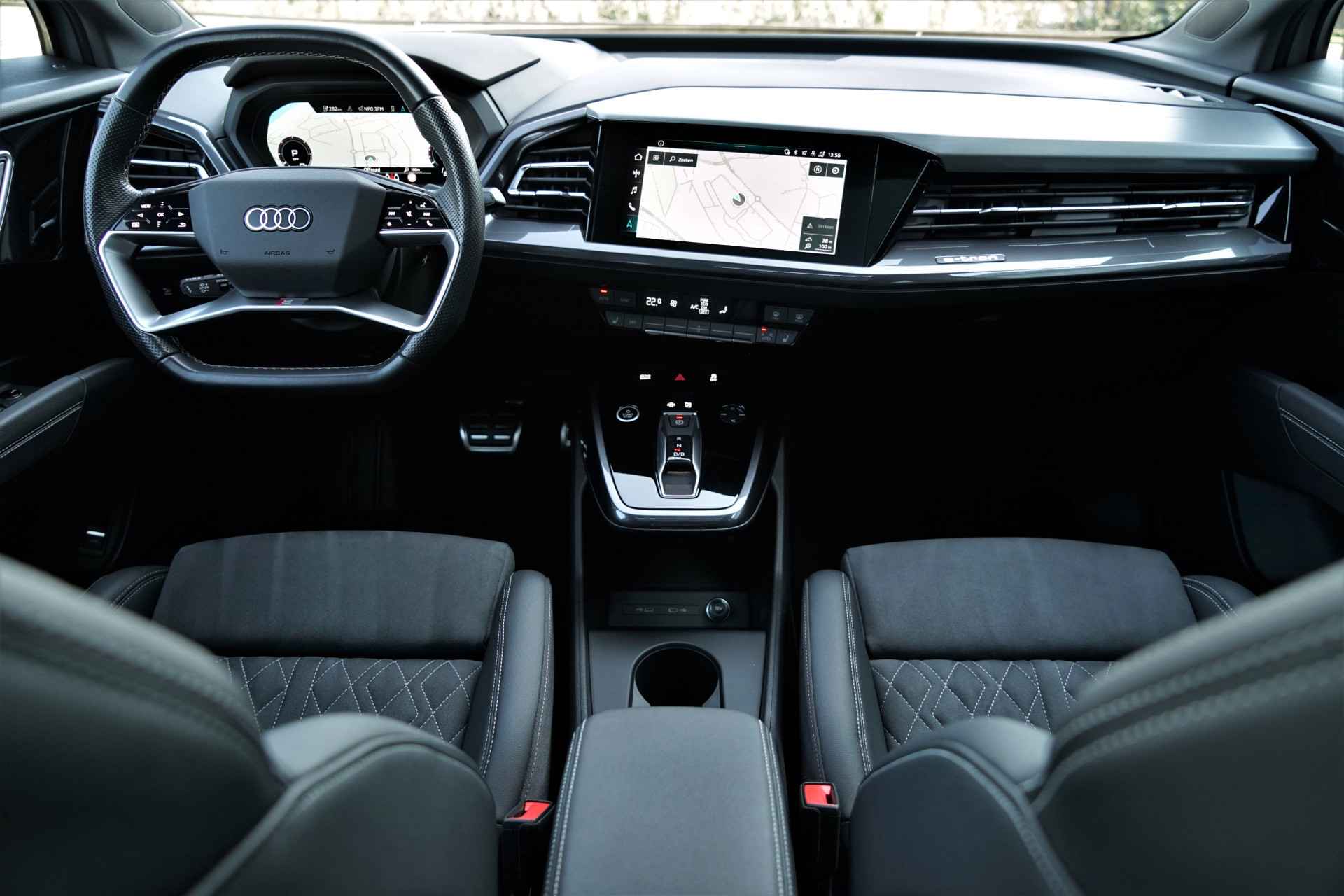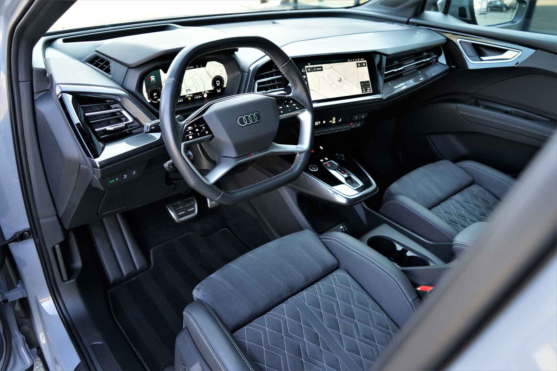 Audi Q4 e-tron 35 in de prachtige kleur 'Kieselgrijs'. De auto is compleet Audi dealer onderhouden en heeft slechts één eigenaar gehad.