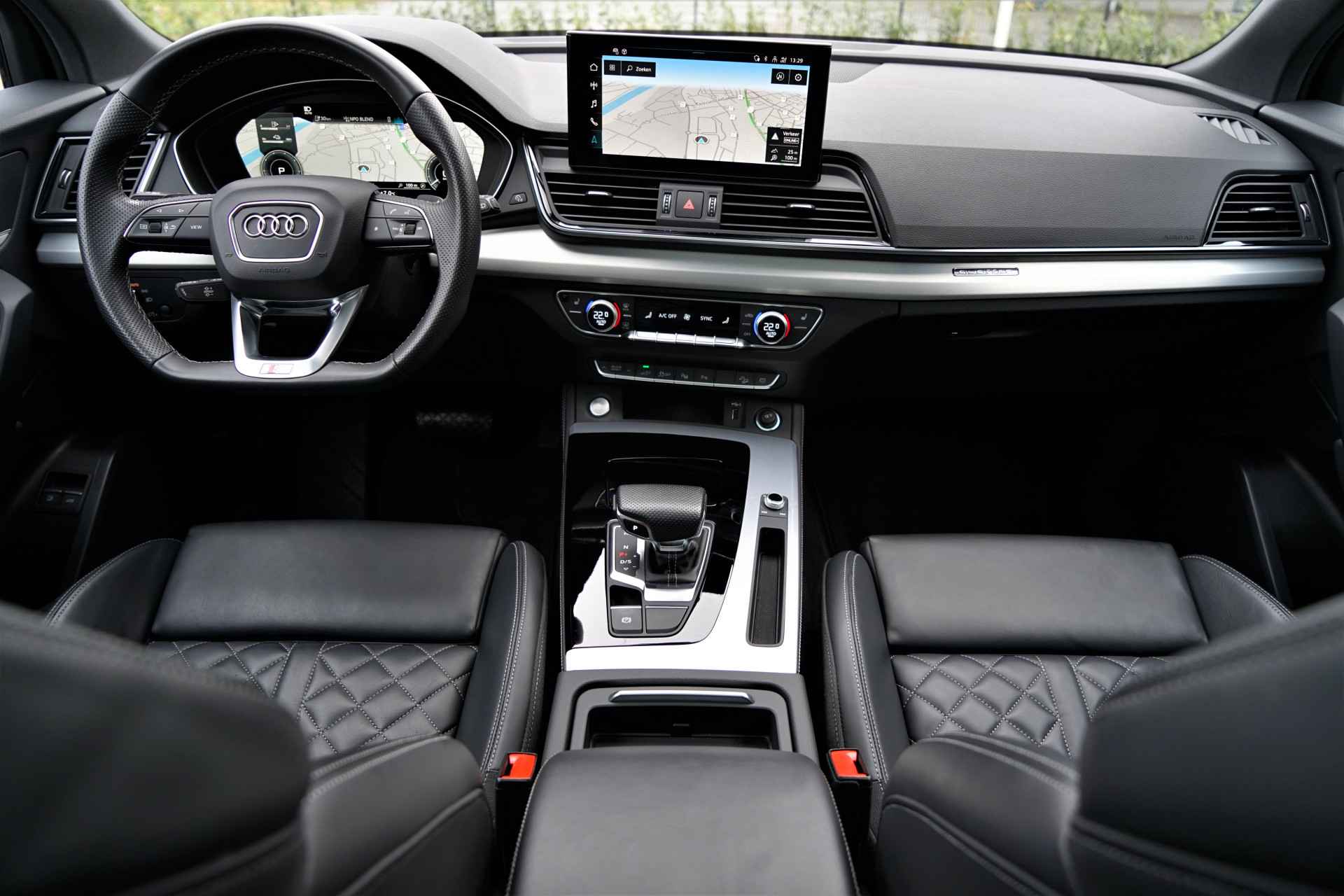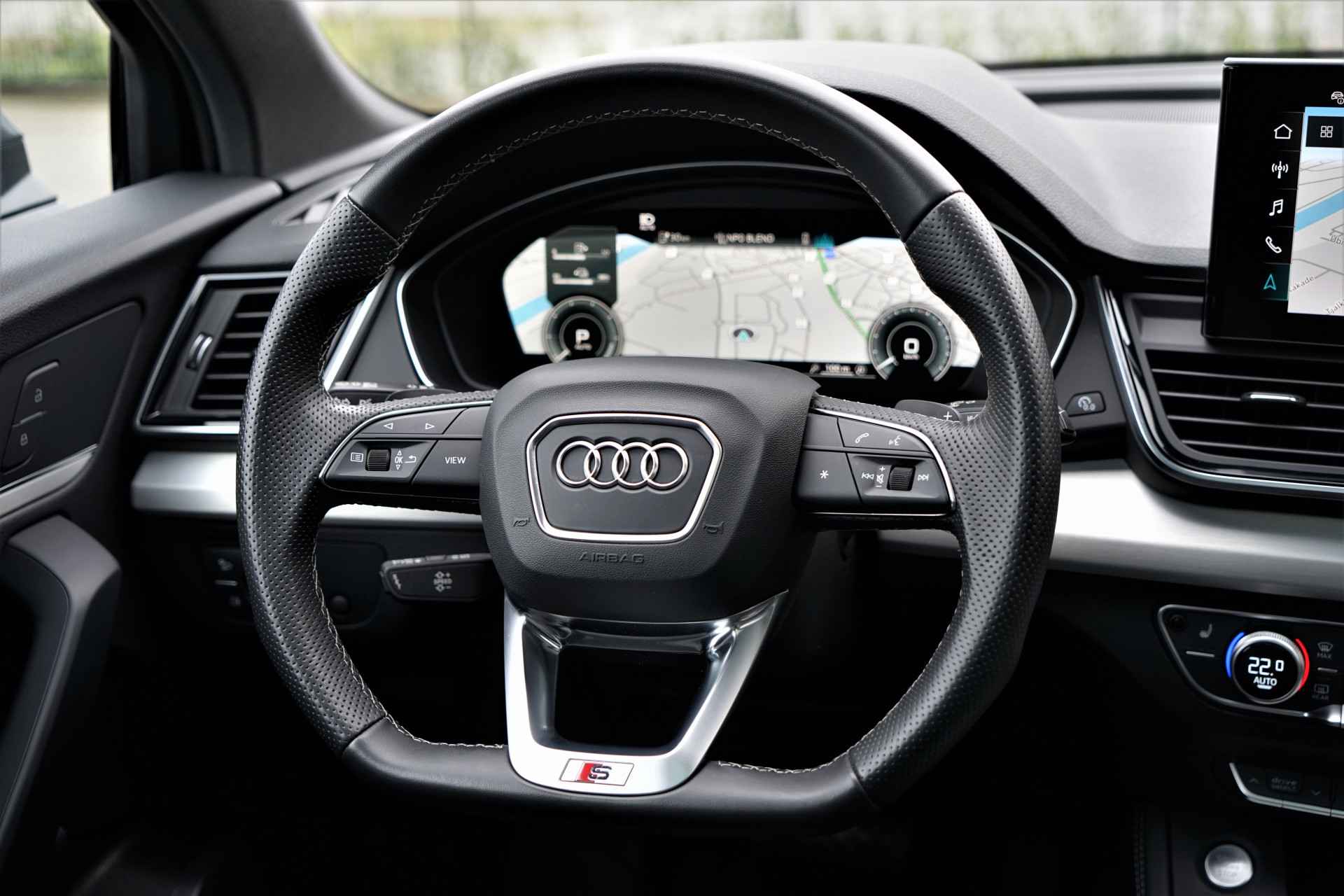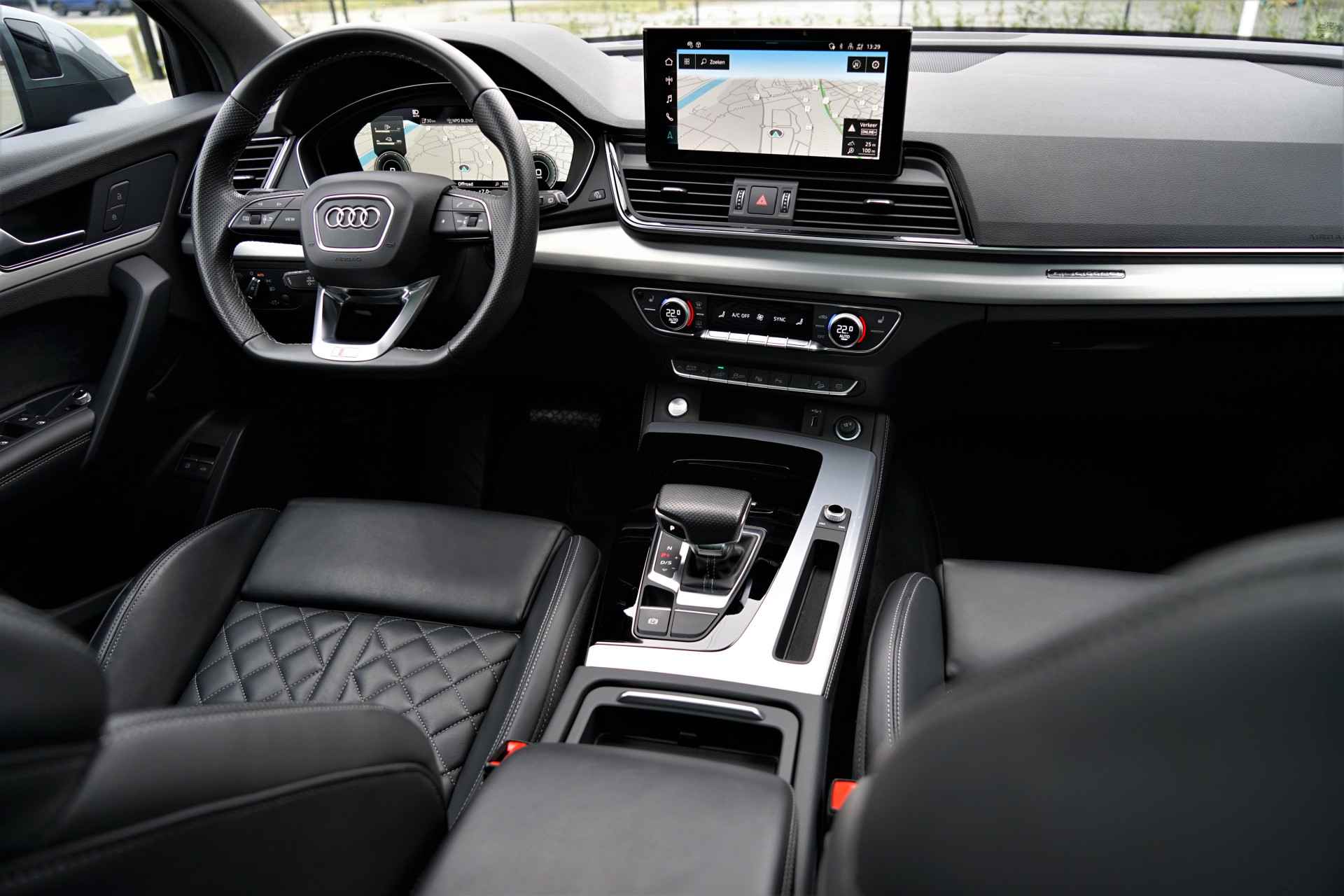 Audi Q5 50 TFSI e Quattro S-line Competition in de prachtige kleur 'Daytonagrijs metallic'. De auto is compleet Audi dealer onderhouden en heeft slechts één eigenaar gehad.