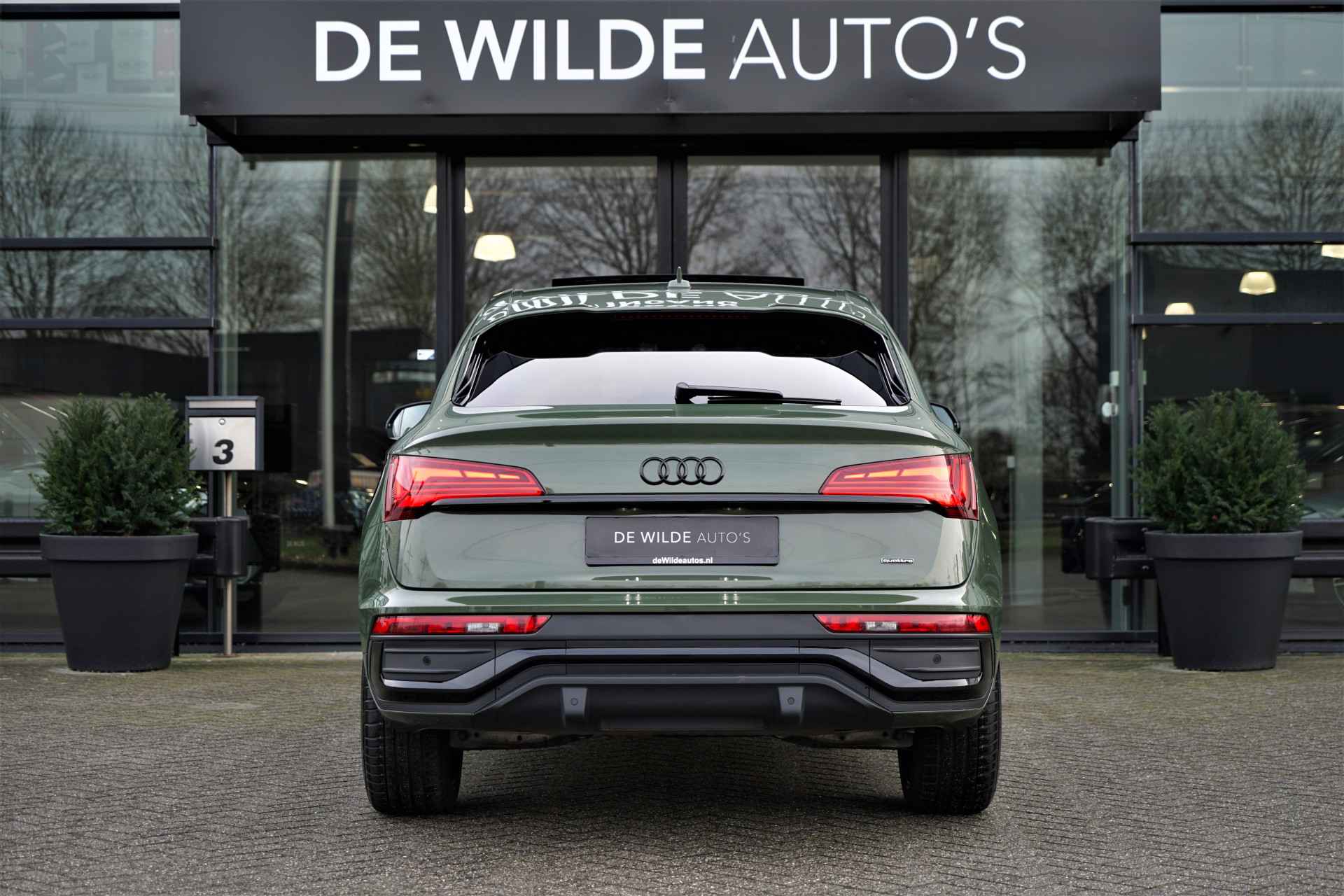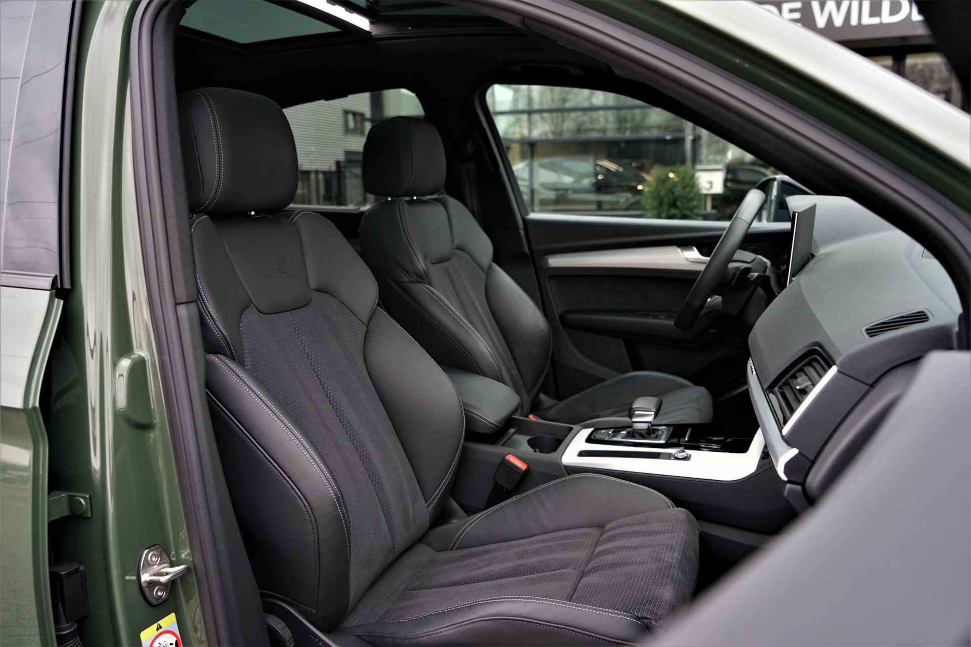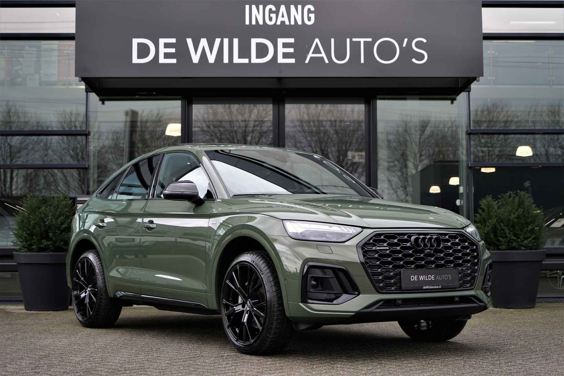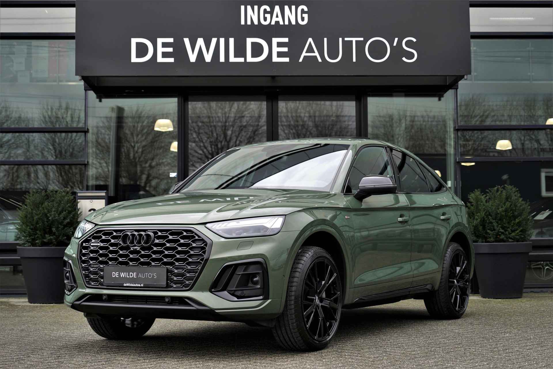 Audi Q5 Sportback 50 TFSI e Quattro S-line in de prachtige kleur 'District Groen metallic'. De auto is compleet Audi dealer onderhouden en heeft slechts één eigenaar gehad.