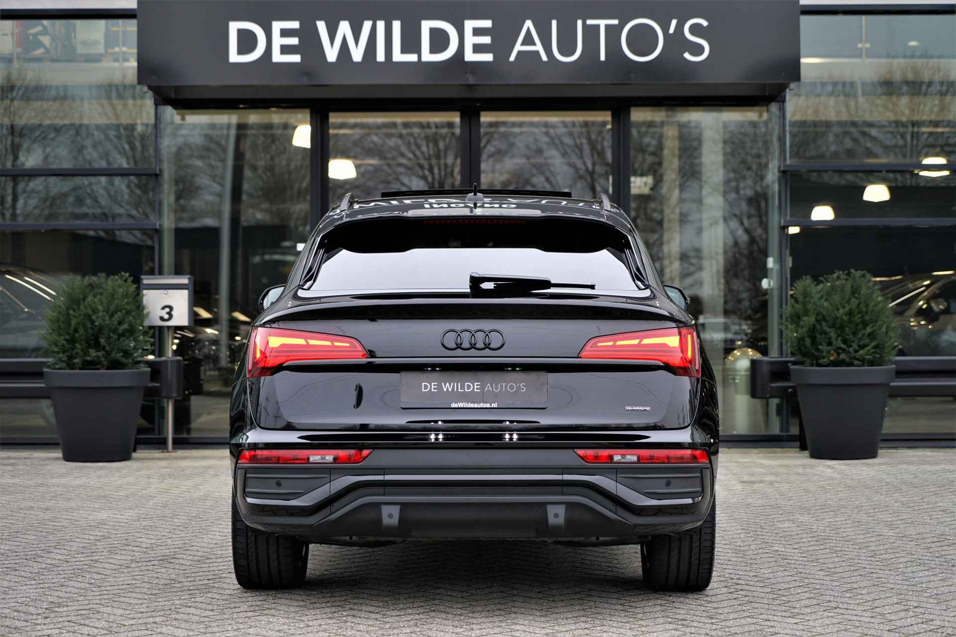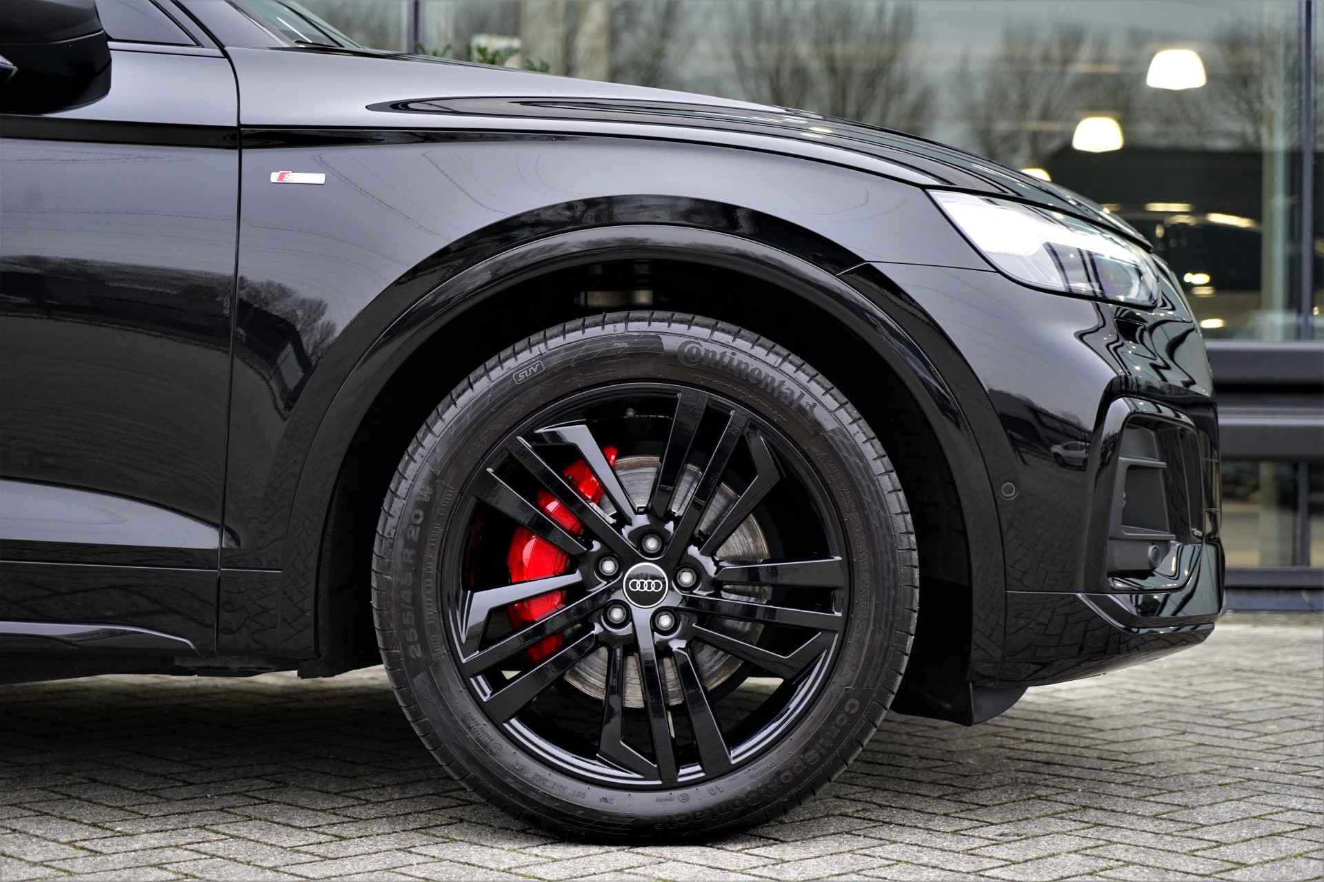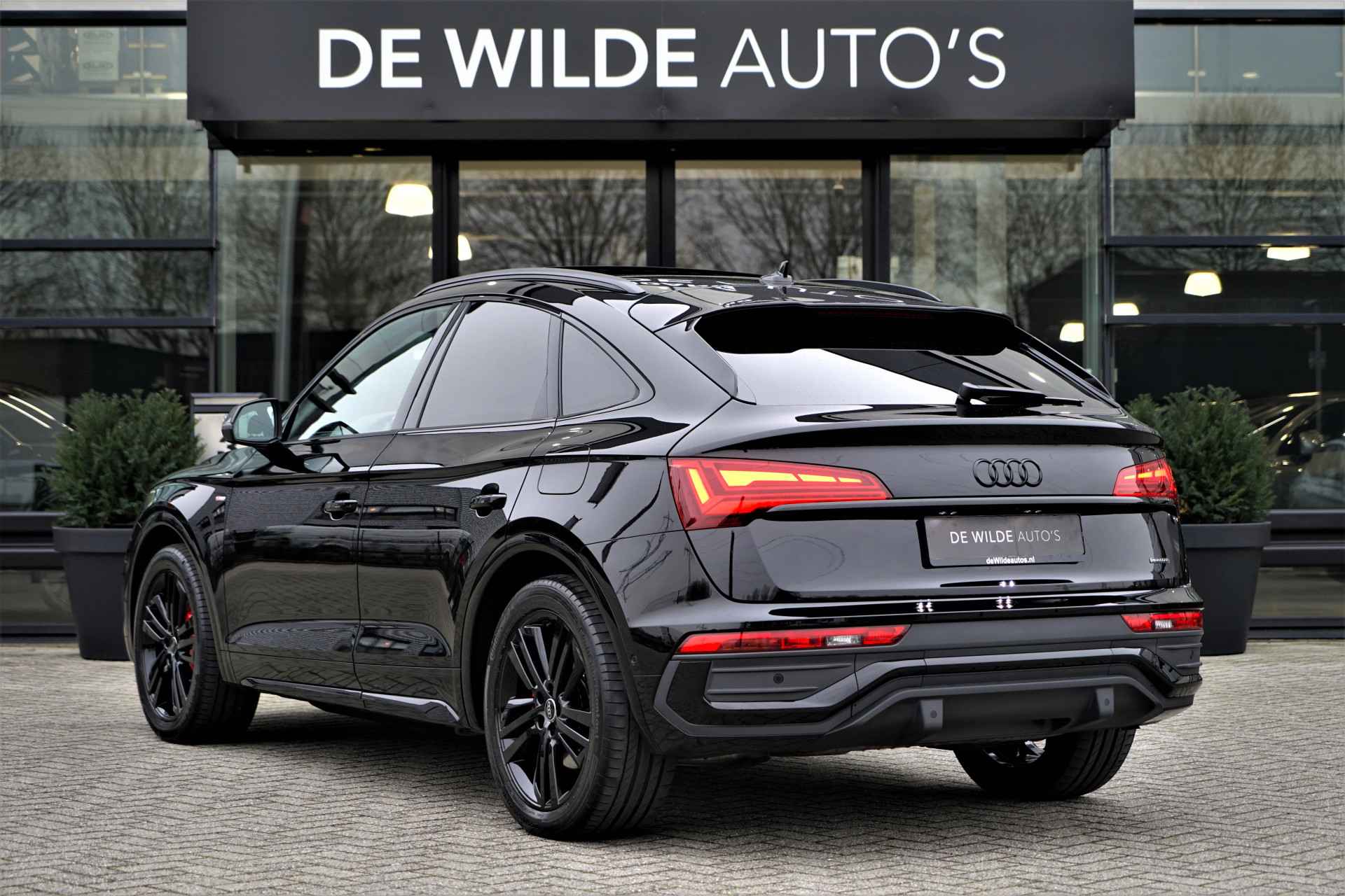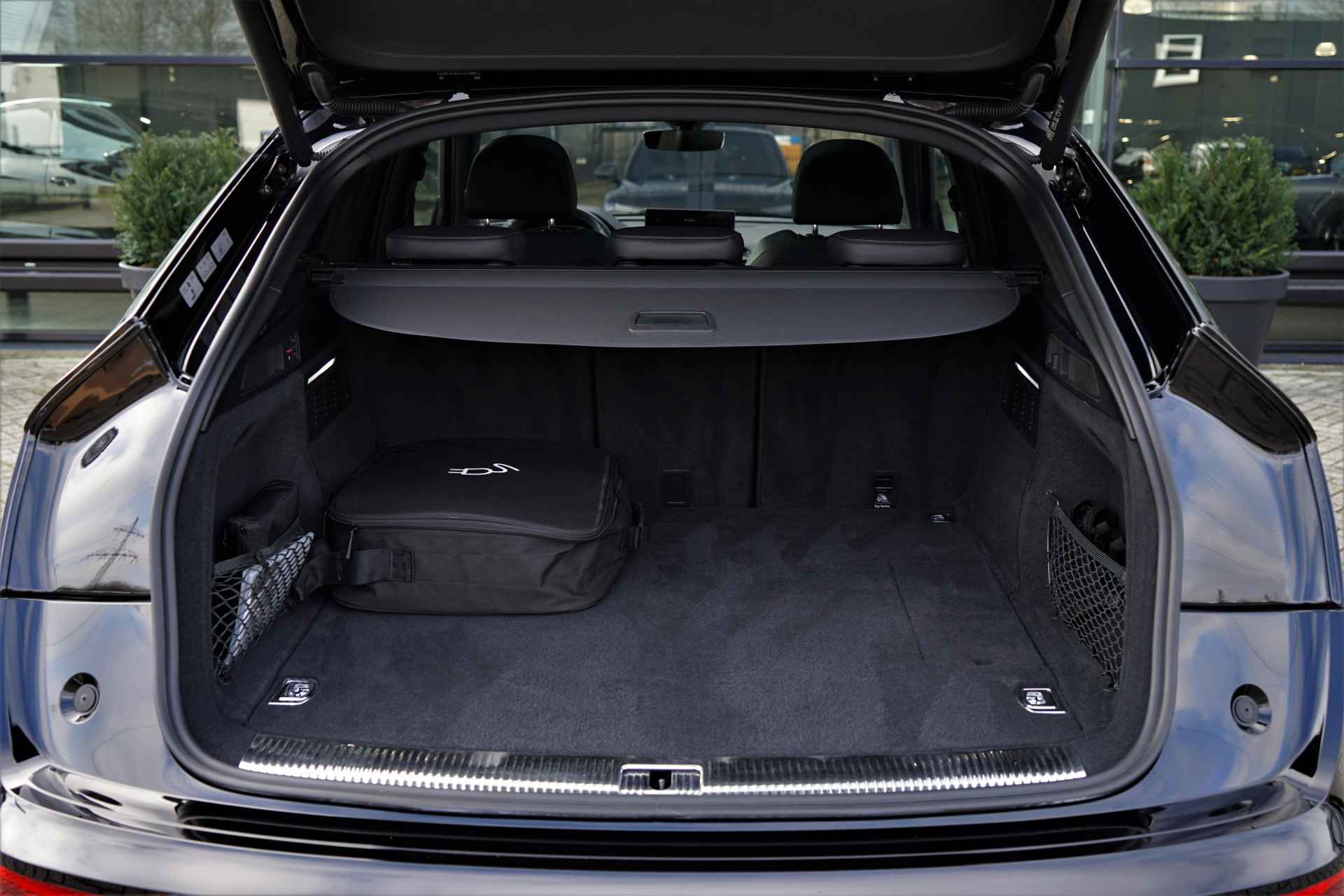 Facelift-versie Audi Q5 sportback Competition 55 TFSI e Quattro S-line in de kleur 'Mythoszwart metallic'. De auto is compleet Audi dealer onderhouden en heeft slechts één eigenaar gehad.