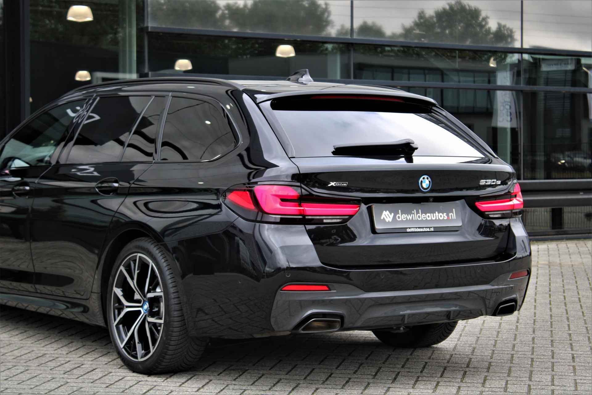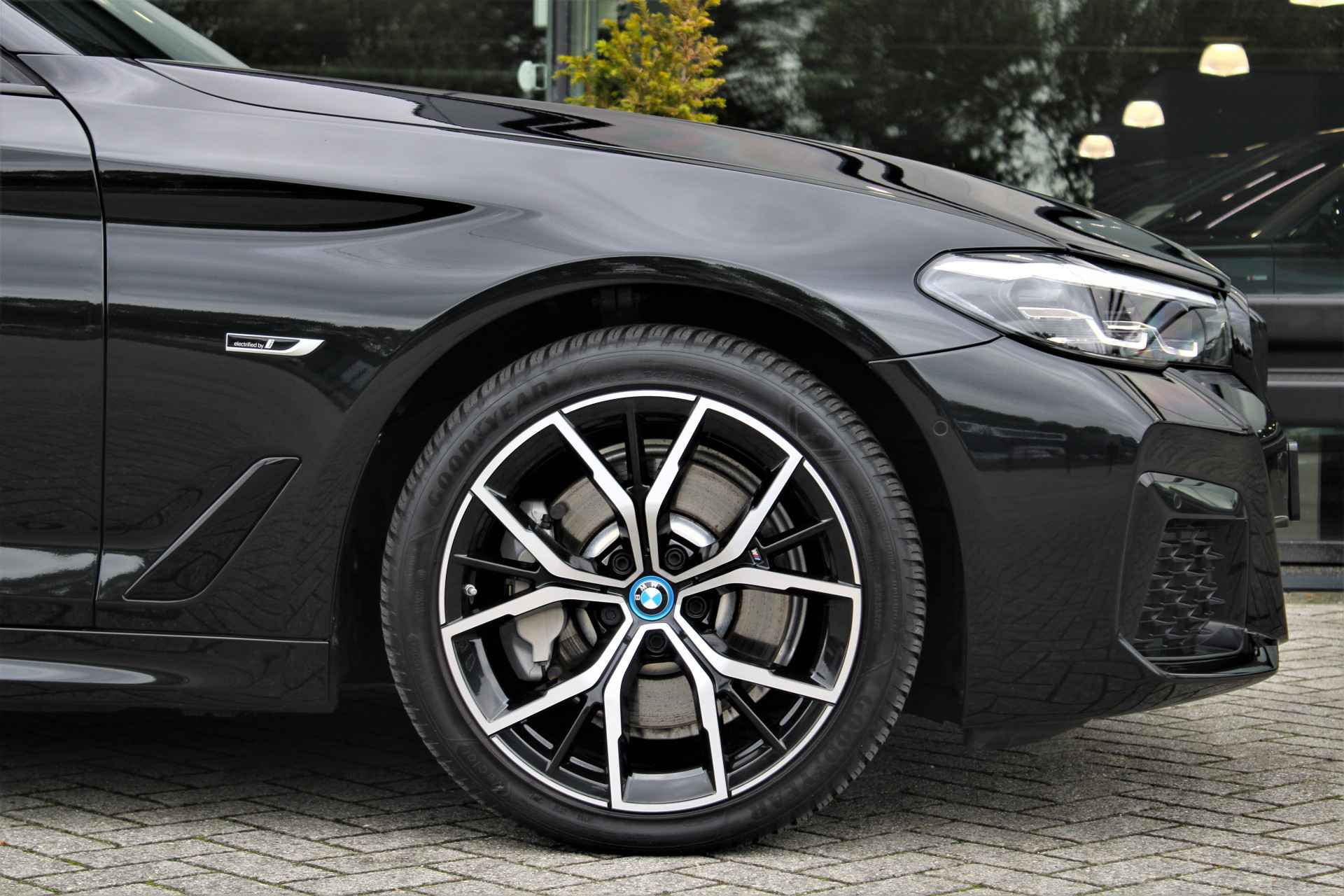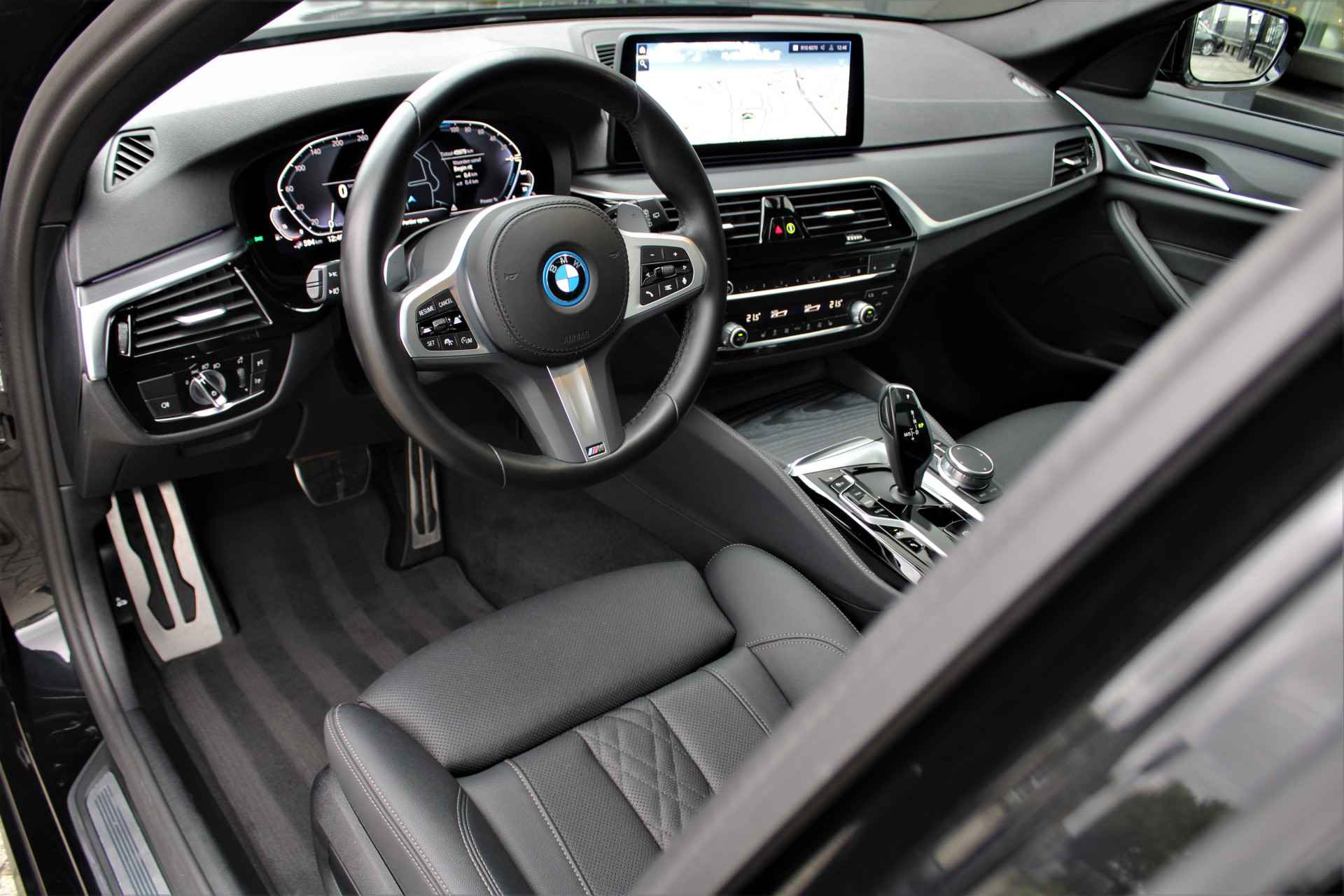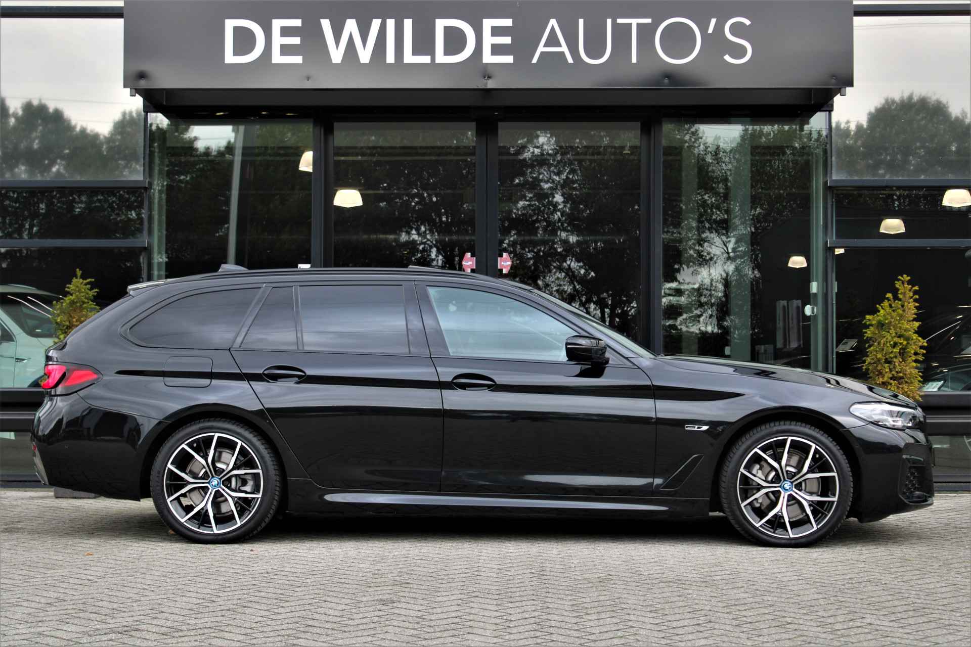 BMW 530e Touring xDrive M-sport in de kleur 'Saphierzwart metallic'. De 530e Touring heeft nog BMW fabrieksgarantie en is compleet BMW dealer onderhouden.