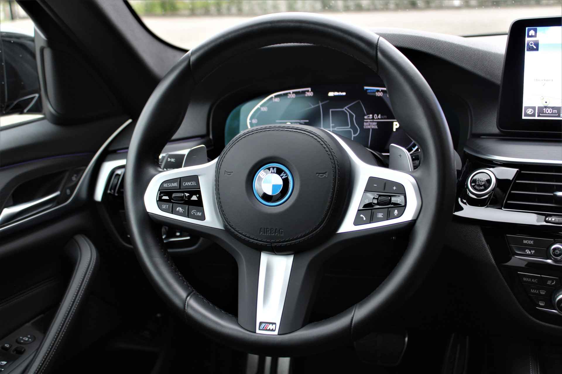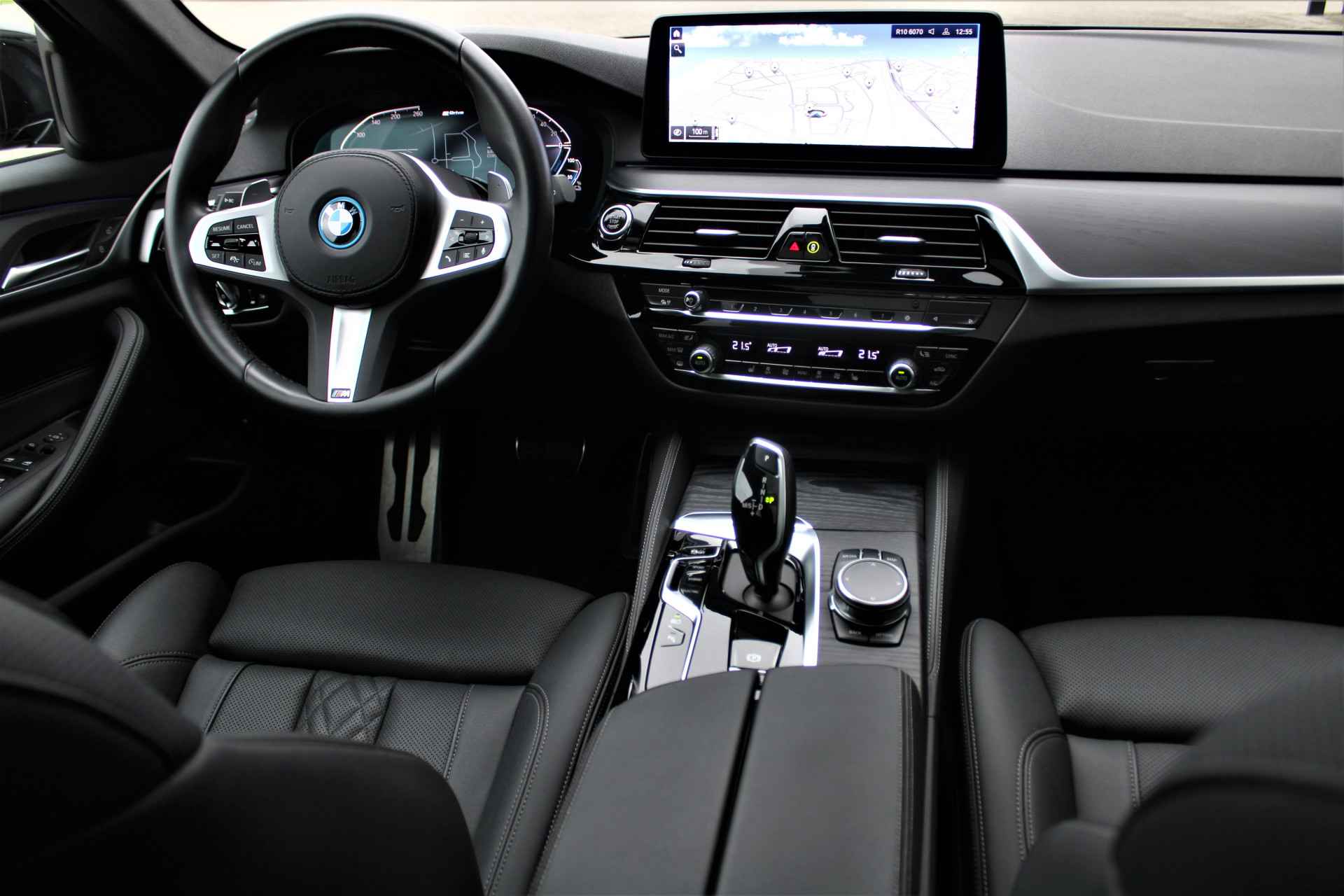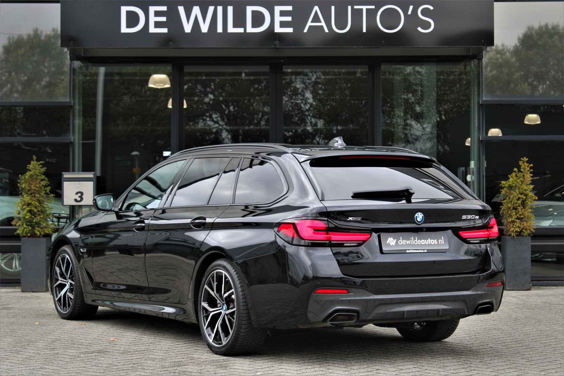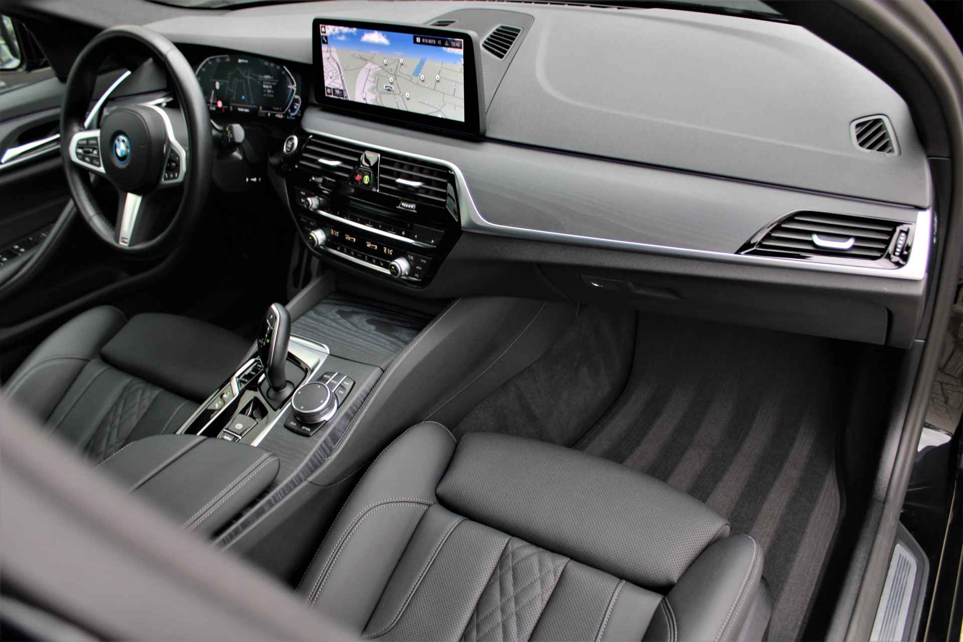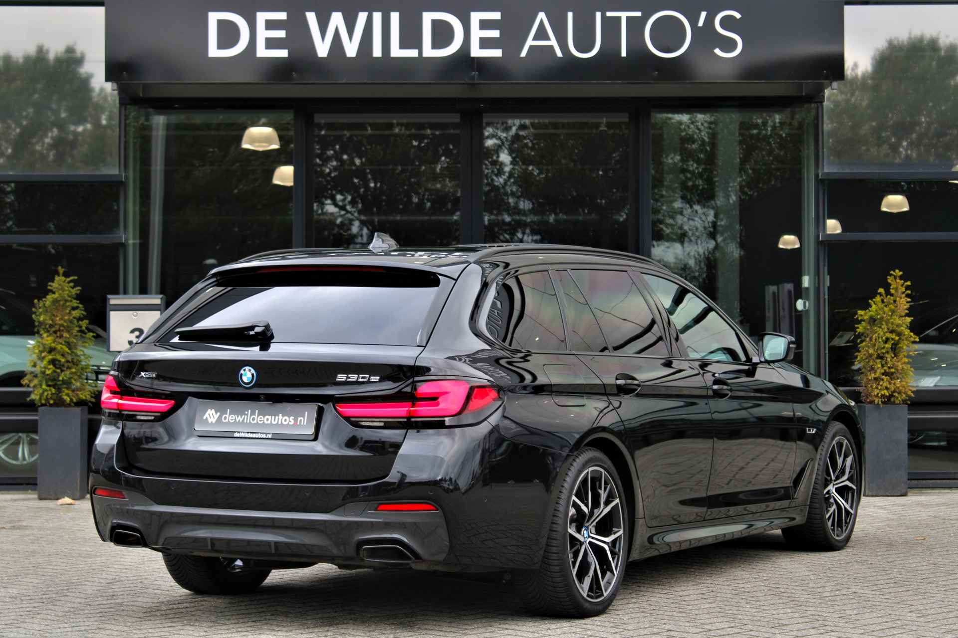 BMW 530e Touring xDrive M-sport in de kleur 'Saphierzwart metallic'. De 530e Touring heeft nog BMW fabrieksgarantie en is compleet BMW dealer onderhouden.