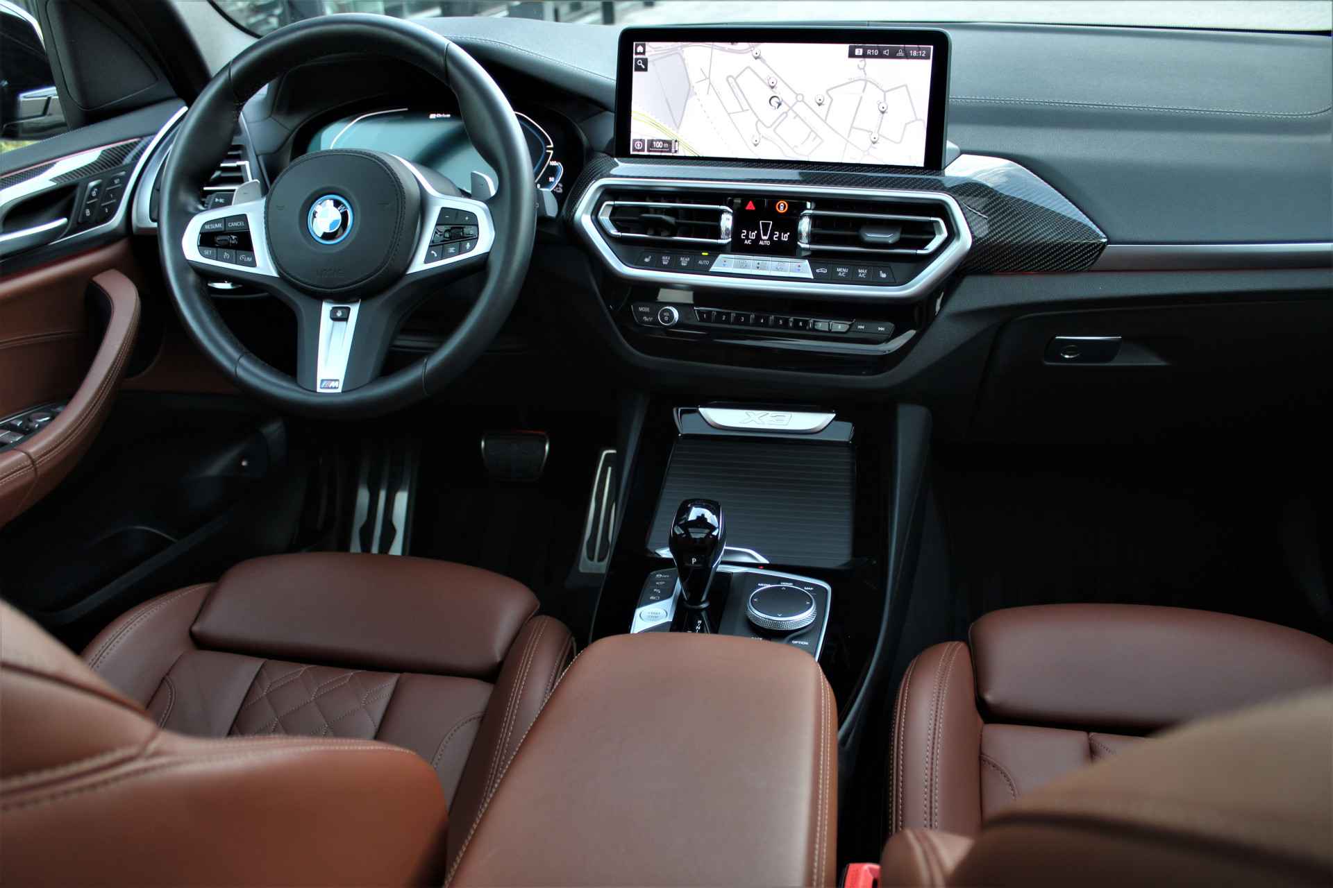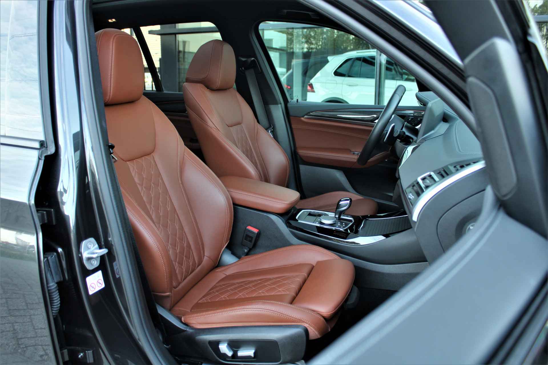 BMW X3 30e M-sport (facelift) in de speciale kleur 'Sophistogrijs metallic' gecombineerd met een Leder Merino Tartufo interieur. De BMW X3 is compleet BMW dealer onderhouden en heeft slechts 1 eigenaar gehad.
