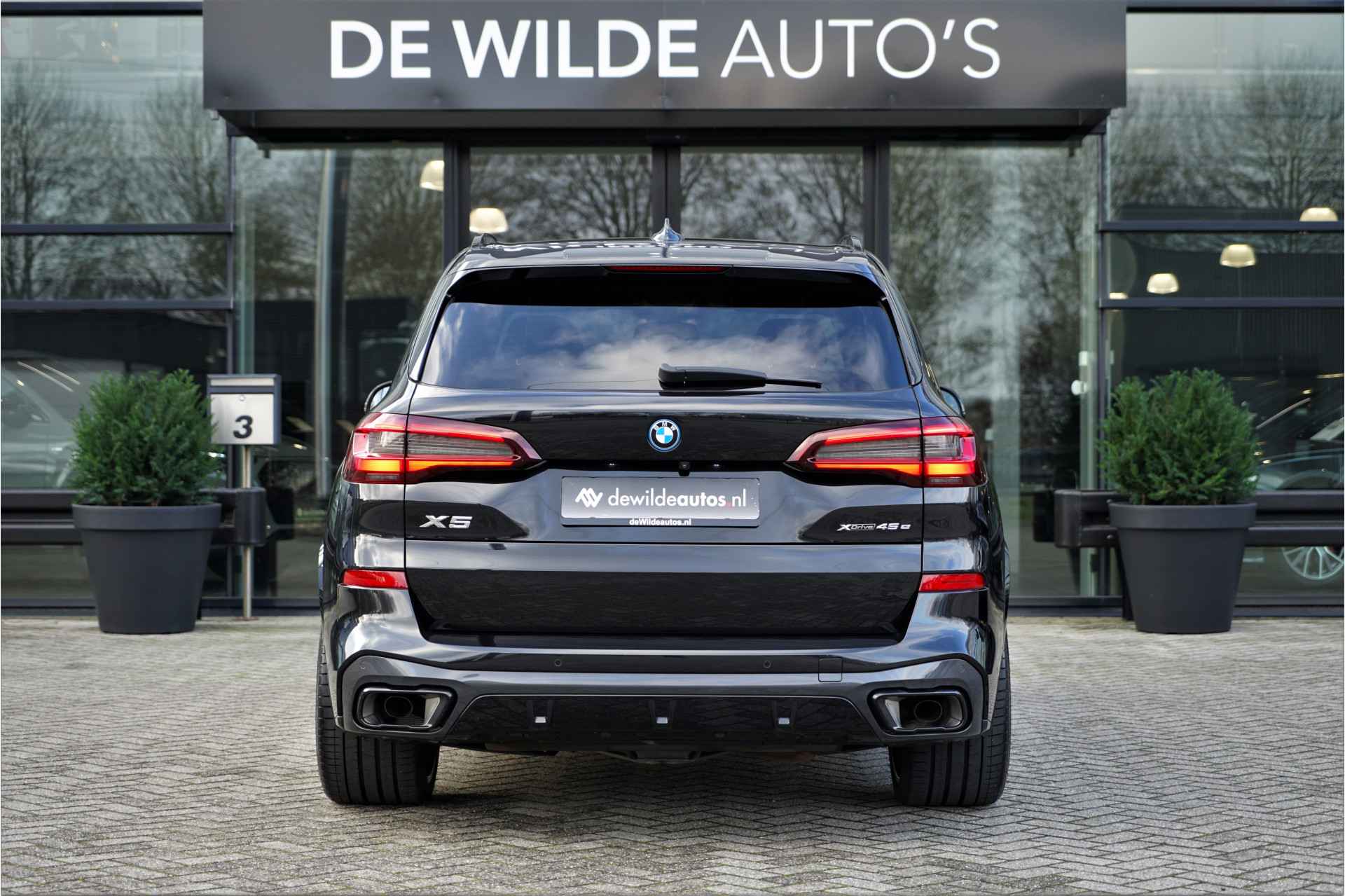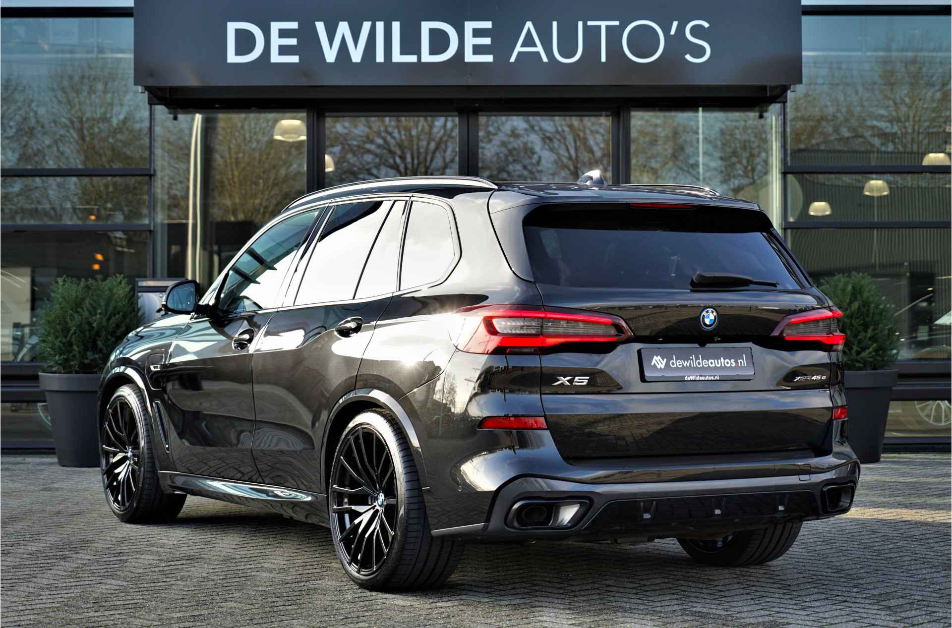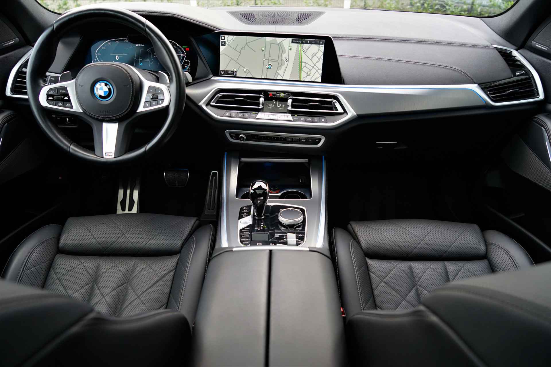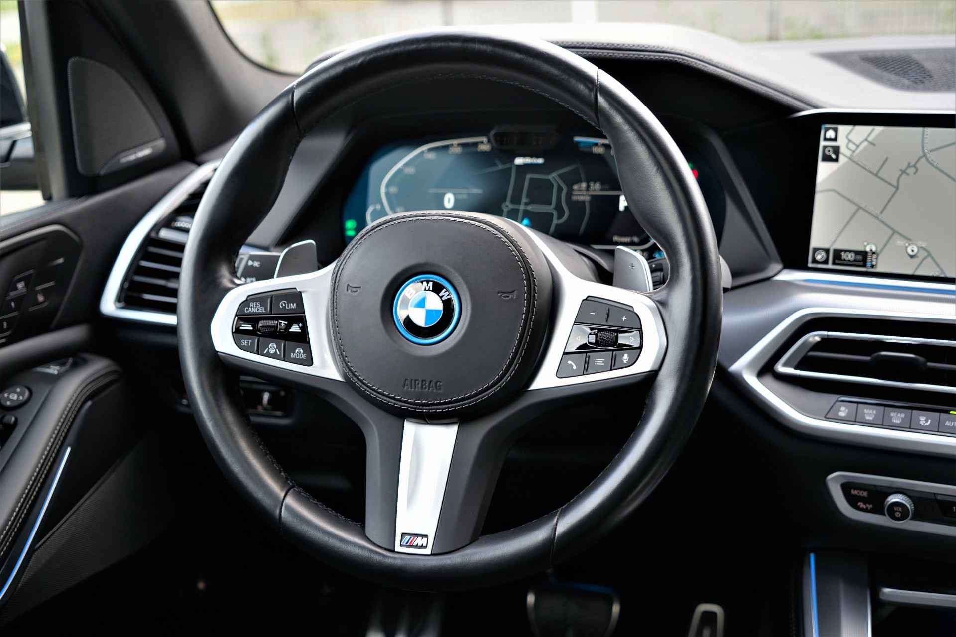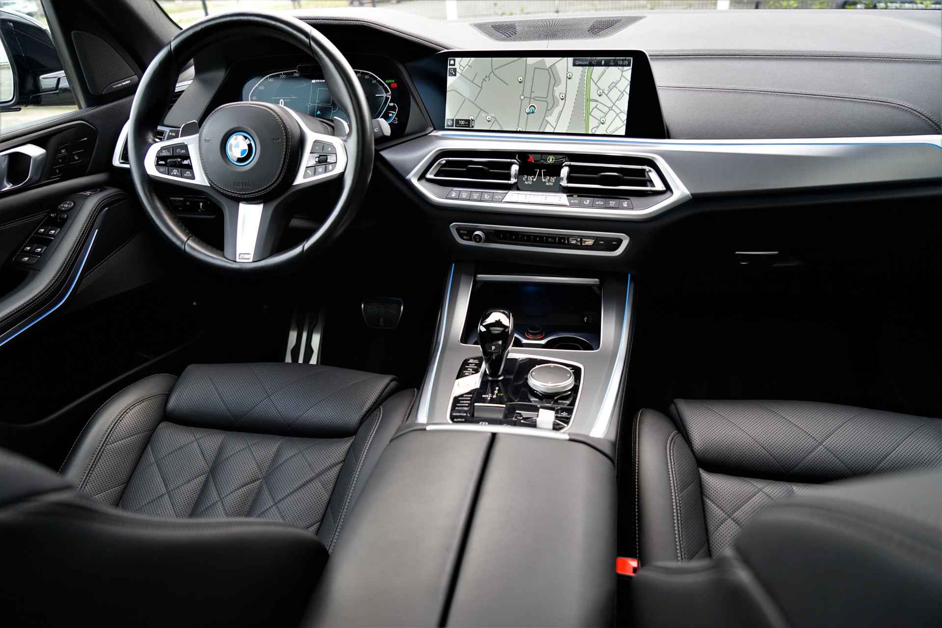 BMW X5 45e Hybride M-sport uitvoering in de kleur 'Saphierzwart metallic'. Deze X5 is compleet BMW dealer onderhouden en heeft slechts één eigenaar gehad. De BMW X5 45e heeft een elektrische actieradius van +/- 86 kilometer en heeft een gecombineerd vermogen van 394 pk. Het betreft een BTW-auto, waardoor de BTW voor de zakelijke rijder is terug te vorderen. Daarnaast betreft het een mega compleet uitgevoerde auto met o.a. de volgende lijst aan opties:
