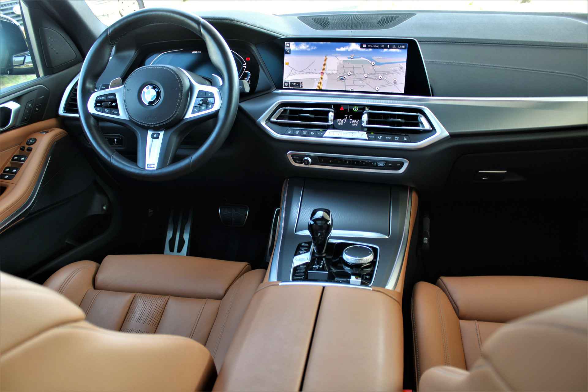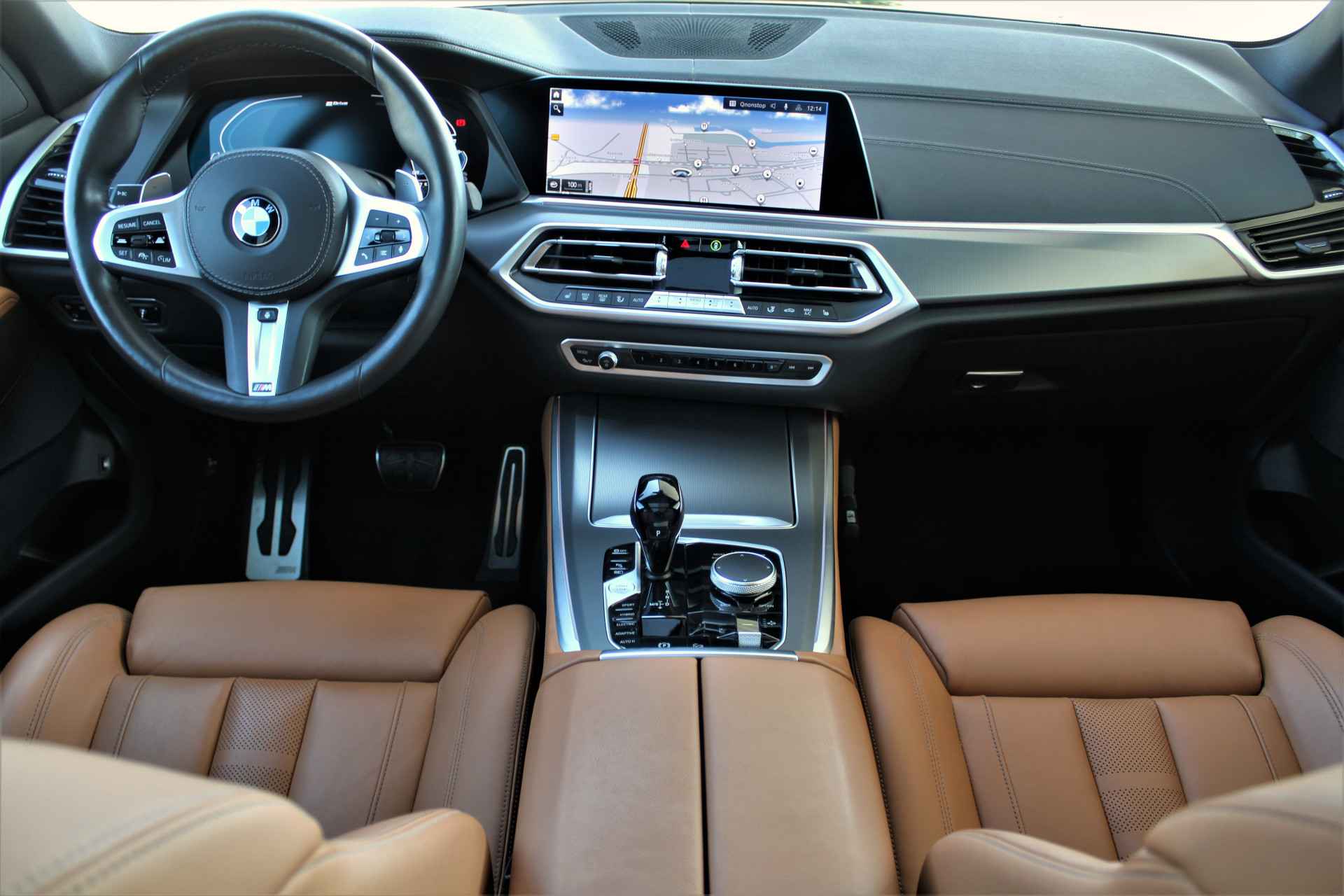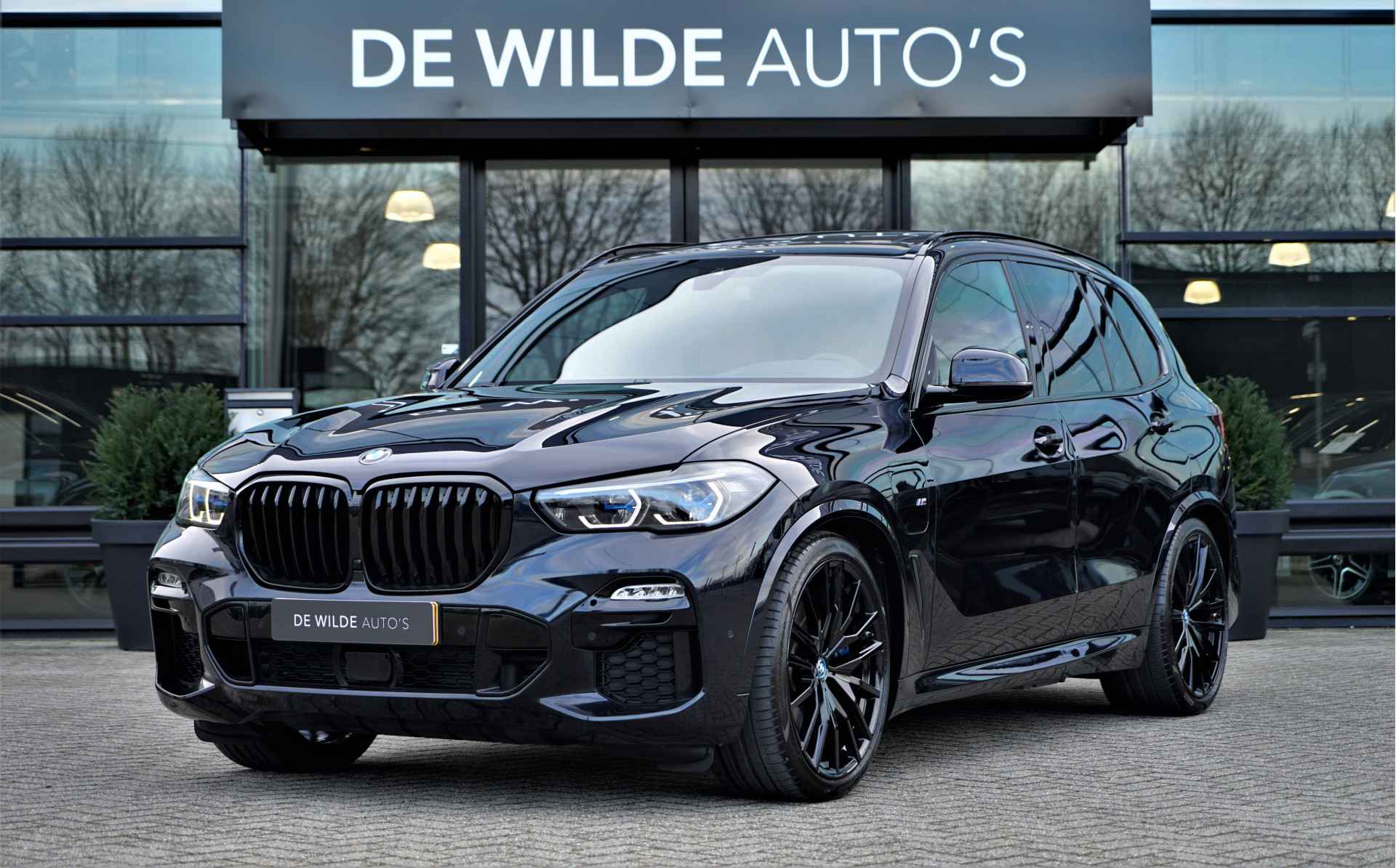 BMW X5 45e Hybride M-sport uitvoering in de BMW M kleur 'Carbonzwart metallic' gecombineerd met een Cognac lederen interieur . De X5 is compleet BMW dealer onderhouden, heeft een elektrische actieradius van +/- 86 kilometer en heeft een gecombineerd vermogen van 394 pk. Daarnaast betreft het een mega compleet uitgevoerde auto met o.a. de volgende lijst aan opties: