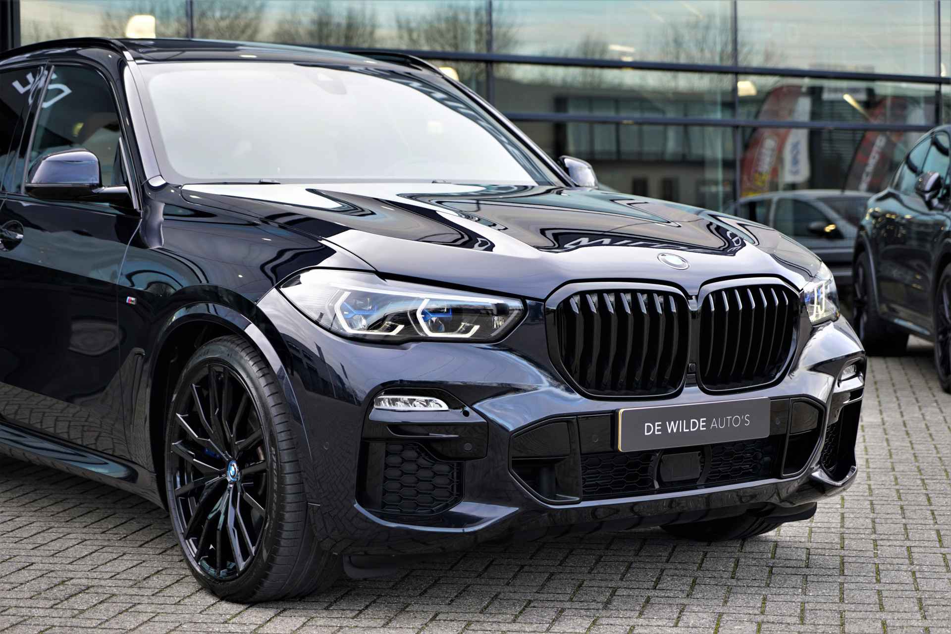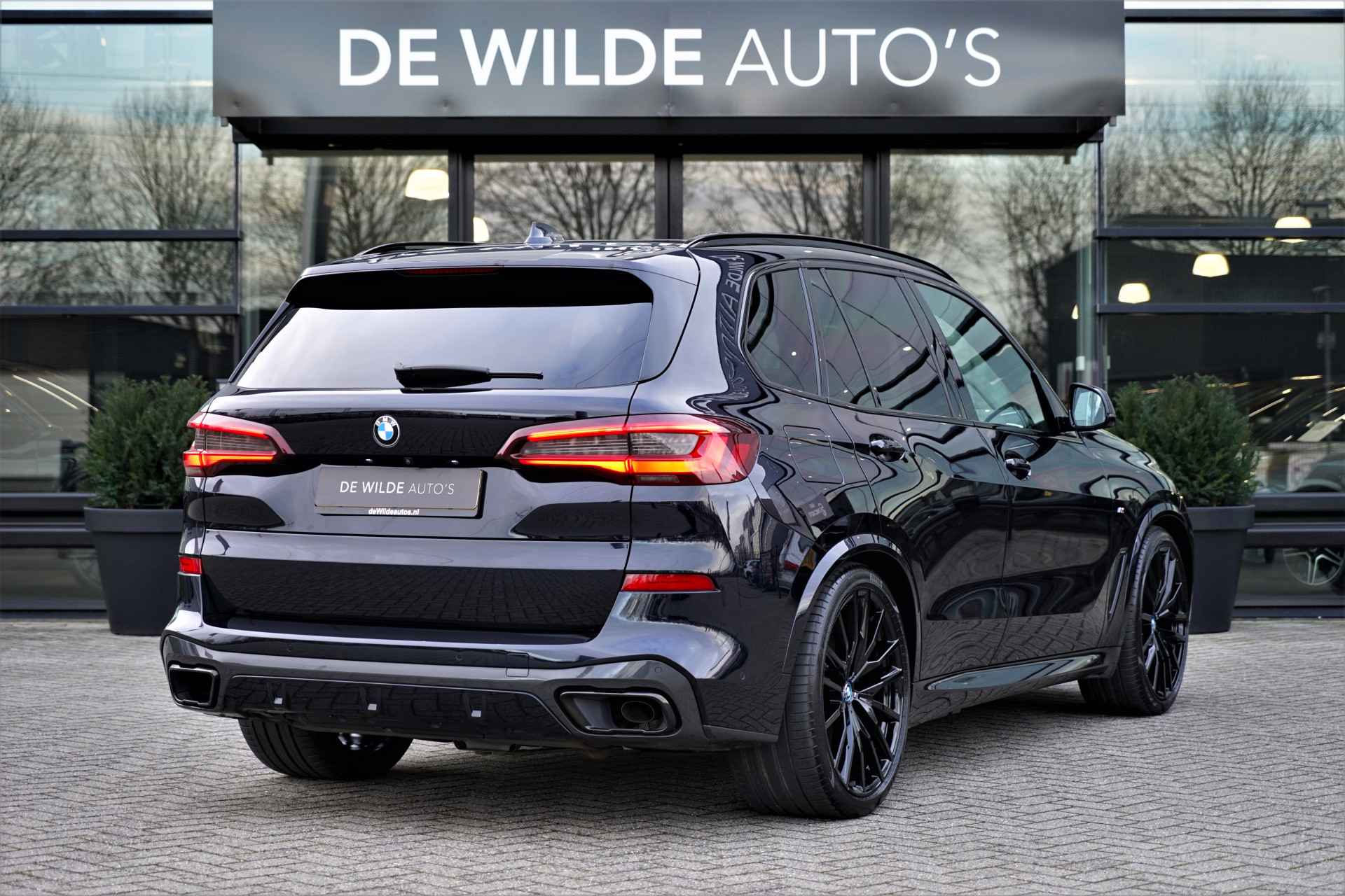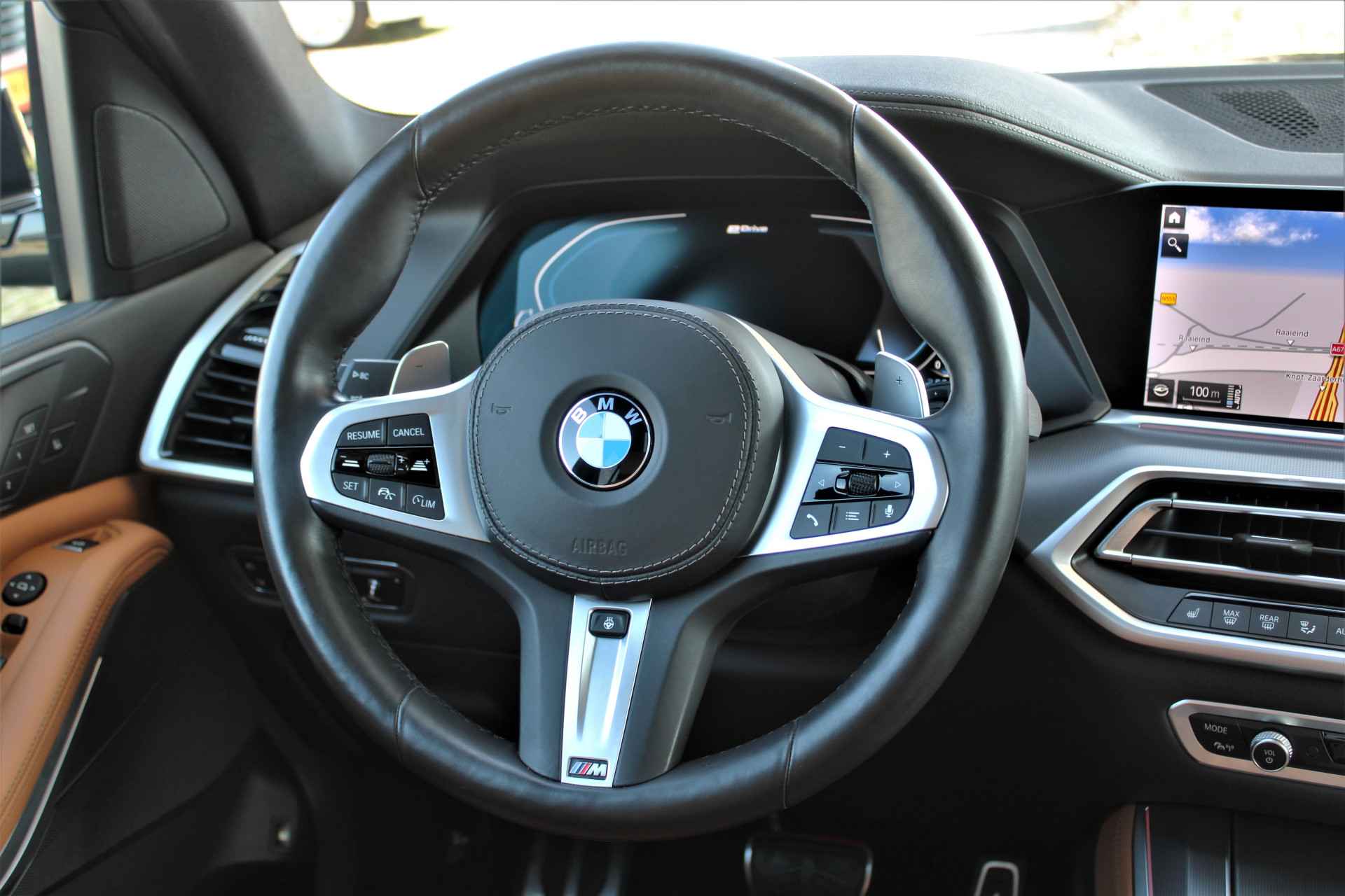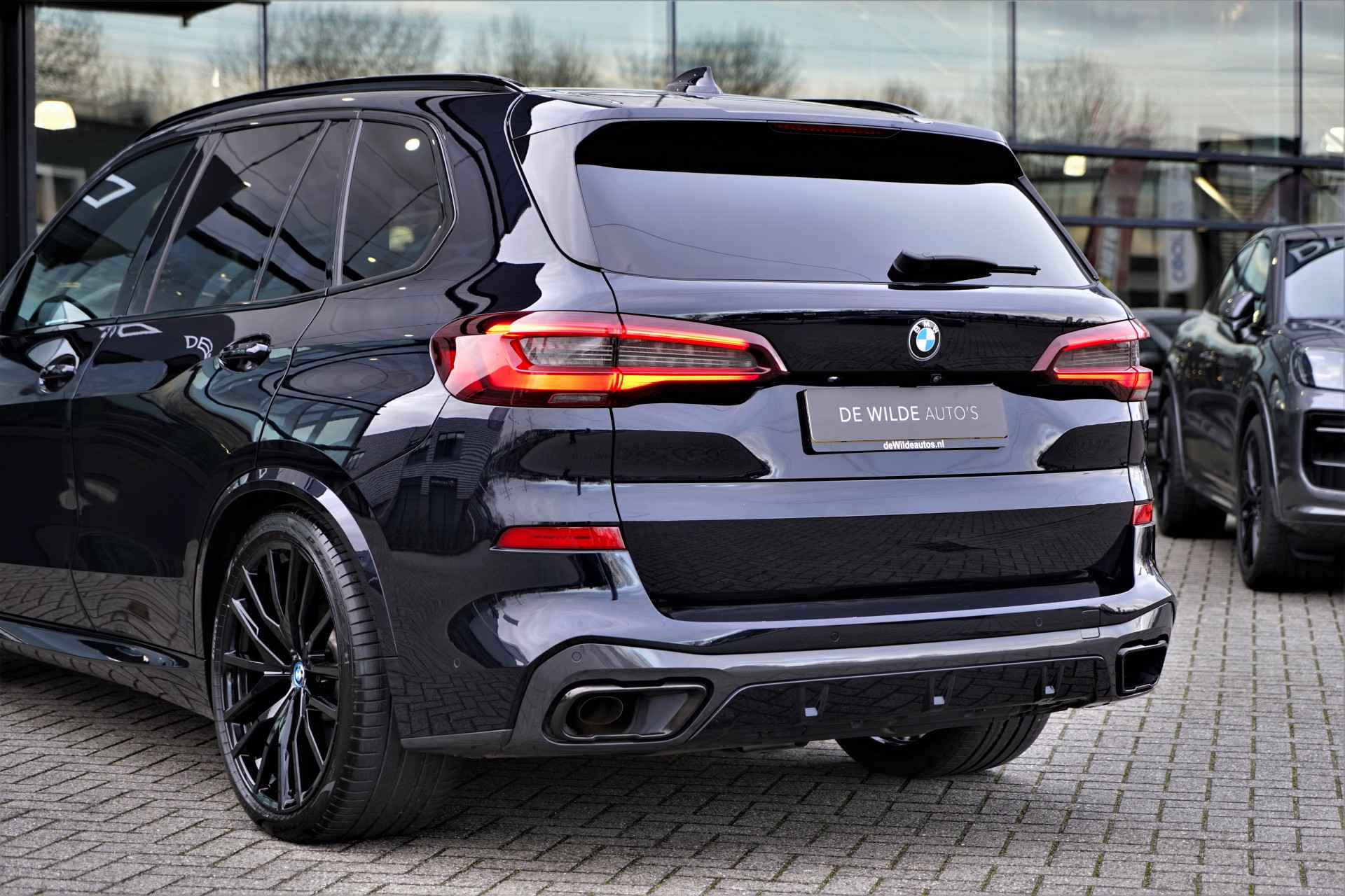 BMW X5 45e Hybride M-sport uitvoering in de BMW M kleur 'Carbonzwart metallic' gecombineerd met een Cognac lederen interieur . De X5 is compleet BMW dealer onderhouden, heeft een elektrische actieradius van +/- 86 kilometer en heeft een gecombineerd vermogen van 394 pk. Daarnaast betreft het een mega compleet uitgevoerde auto met o.a. de volgende lijst aan opties: