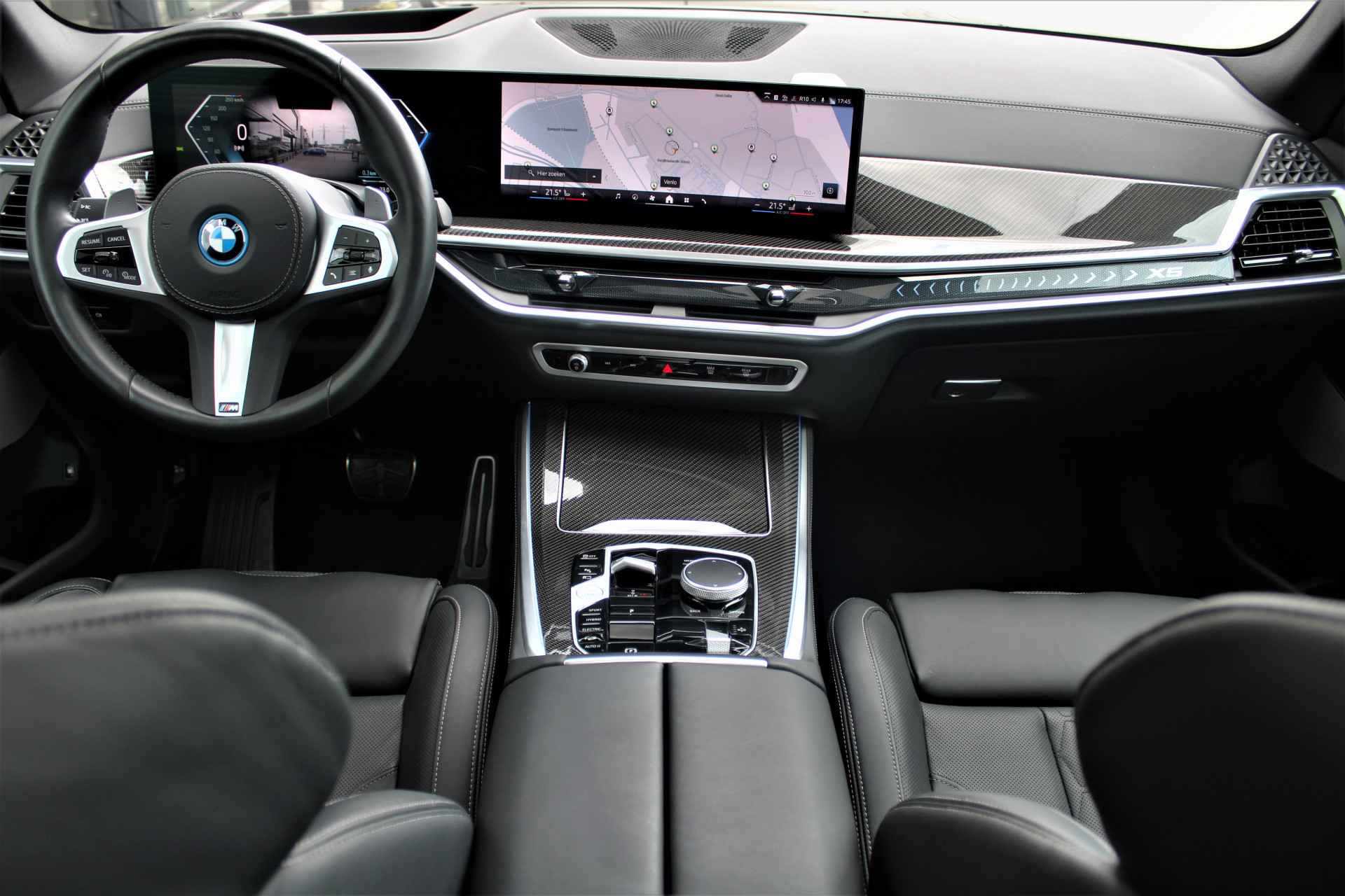Per direct beschikbaar: uniek uitgevoerde BMW X5 50e M-sport in de kleur 'Saphierzwart Metallic'. Deze in nieuwstaat verkerende BMW X5 50e heeft fabrieksgarantie tot 11-10-2027 en heeft slechts 7.309 kilometer gereden. De maximale elektrische actieradius bedraagt 110 km en de auto heeft een gecombineerd vermogen van 489 pk. Deze X5 Het betreft een BTW-auto, waardoor de BTW door de zakelijke rijder is terug te vorderen (verkoopprijs is inclusief BTW). Daarnaast behoort aanschaf via full operational lease tot de mogelijkheden voor deze auto. Verder is de X5 mega compleet uitgevoerd met o.a. de volgende uitgebreide lijst aan opties: