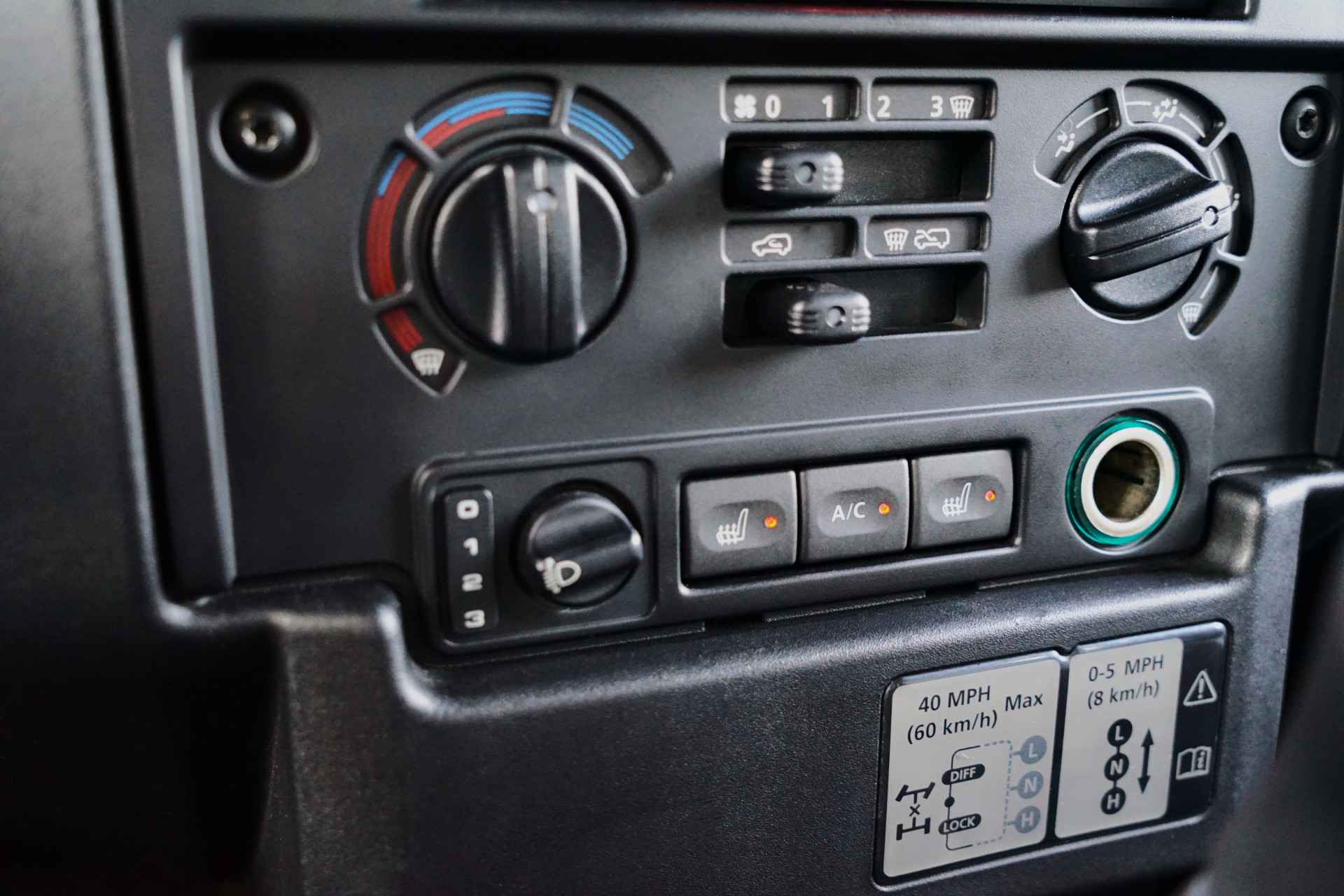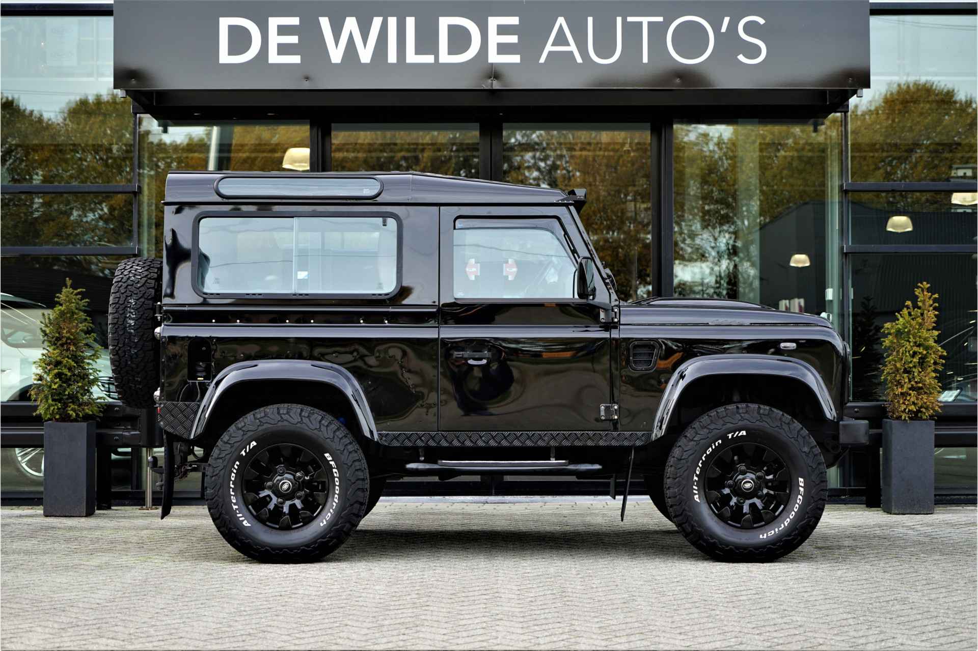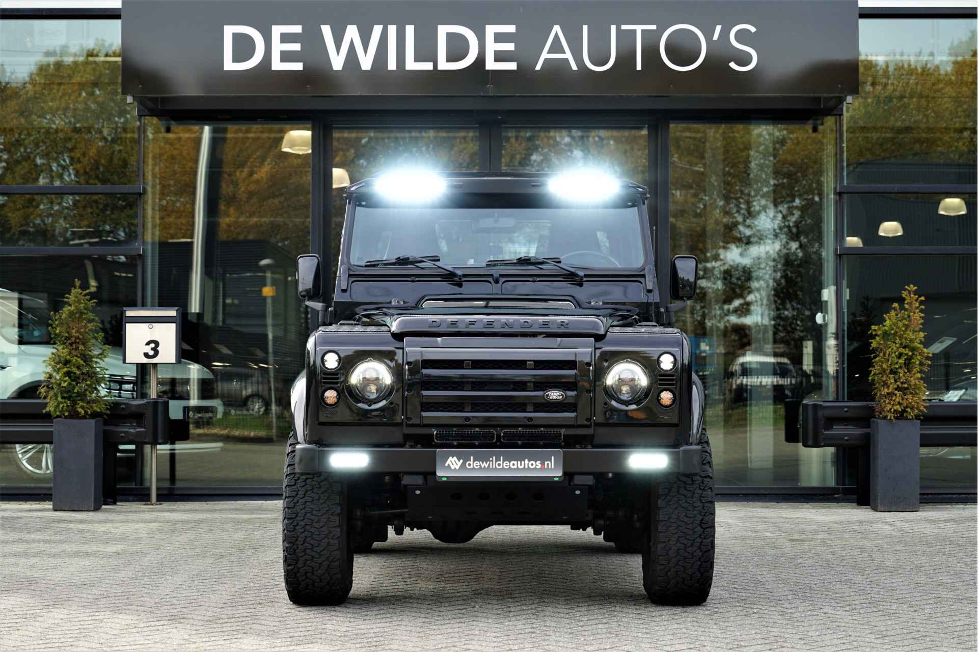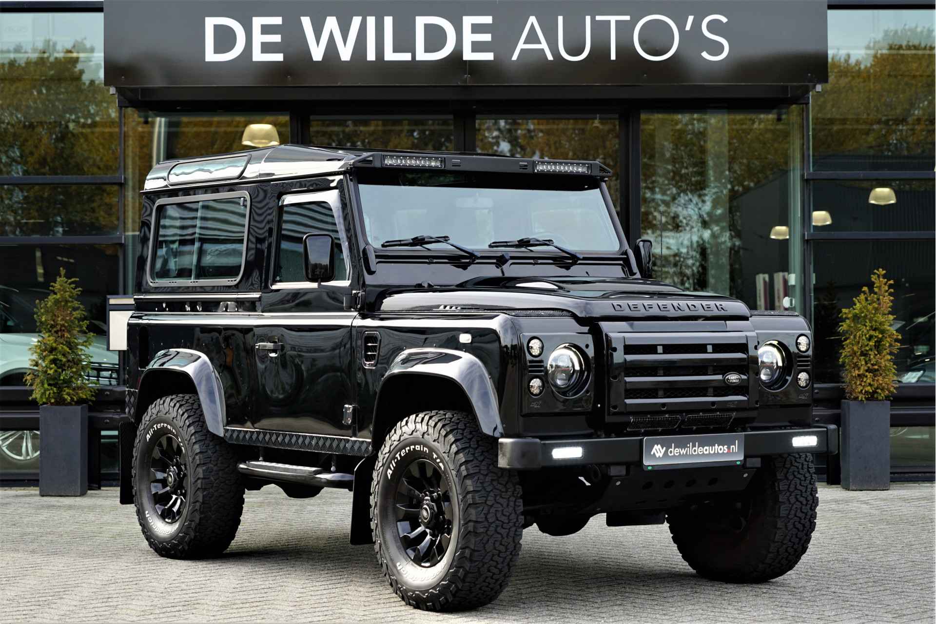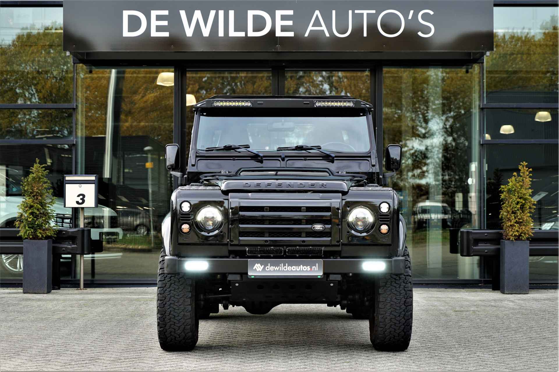 Unieke Land Rover Defender 2.4 TD 90 4-persoons op geel-kenteken. De Defender is voorzien van een Harris Tweed interieur, waarbij de karakteristieke wolstof terugkomt in de stoelen, middenarmsteun en deurpanelen. Daarnaast is de complete dakhemel en B-stijl 'custom' afgewerkt in 'Brown Velvet'.