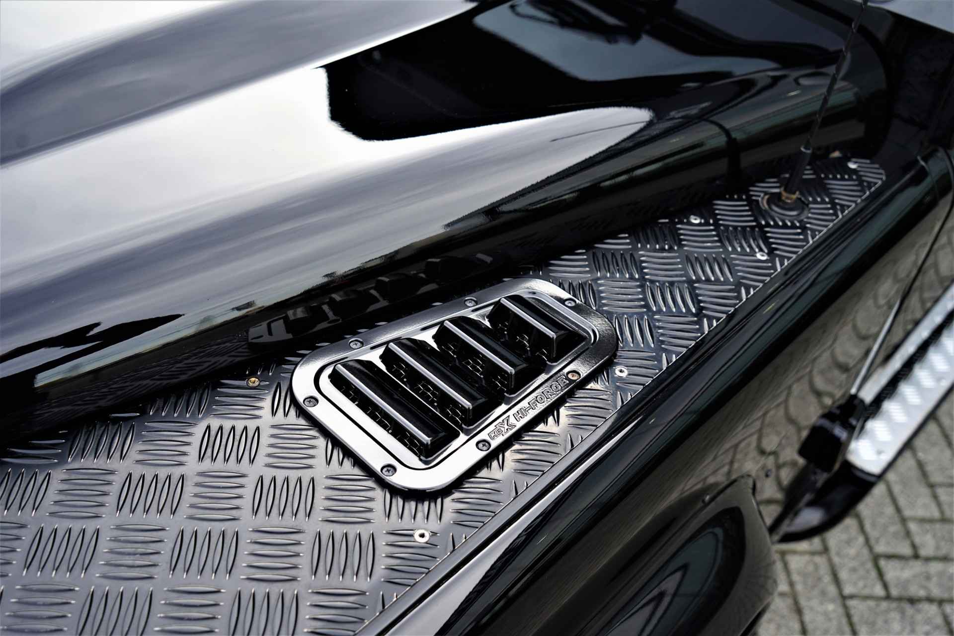 Verdere upgrades aan deze defender zijn: KBX Grill upgrade (hoogglans zwart), KBX Air intake (hoogglans zwart), J.W. speaker LED verlichting, Top Light Bar (LED-lichtbalk op het dak), Front LED bumper, Lift Kit (ophangingsverhogingsset). Daarnaast is de defender nog voorzien van de volgende optie's: