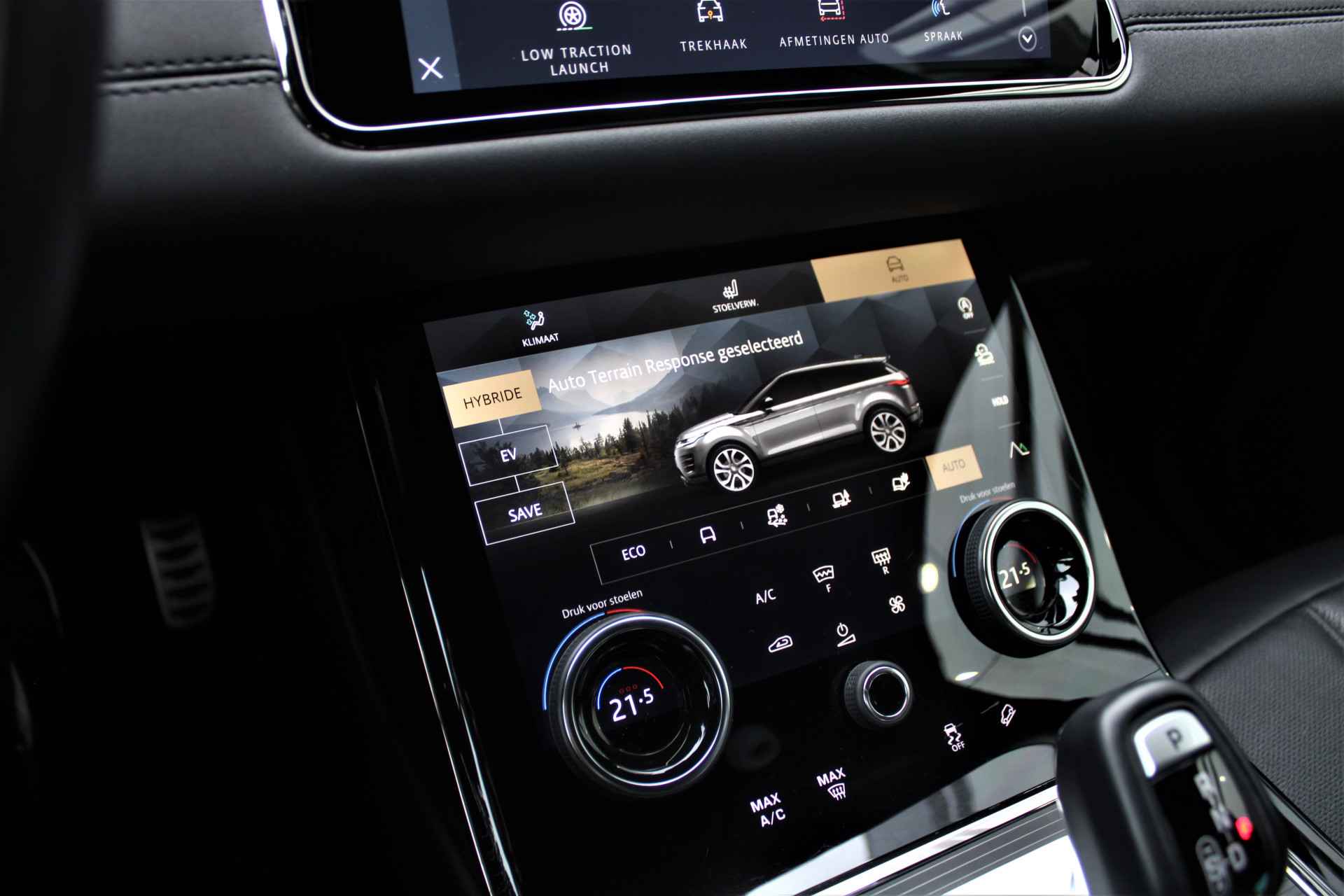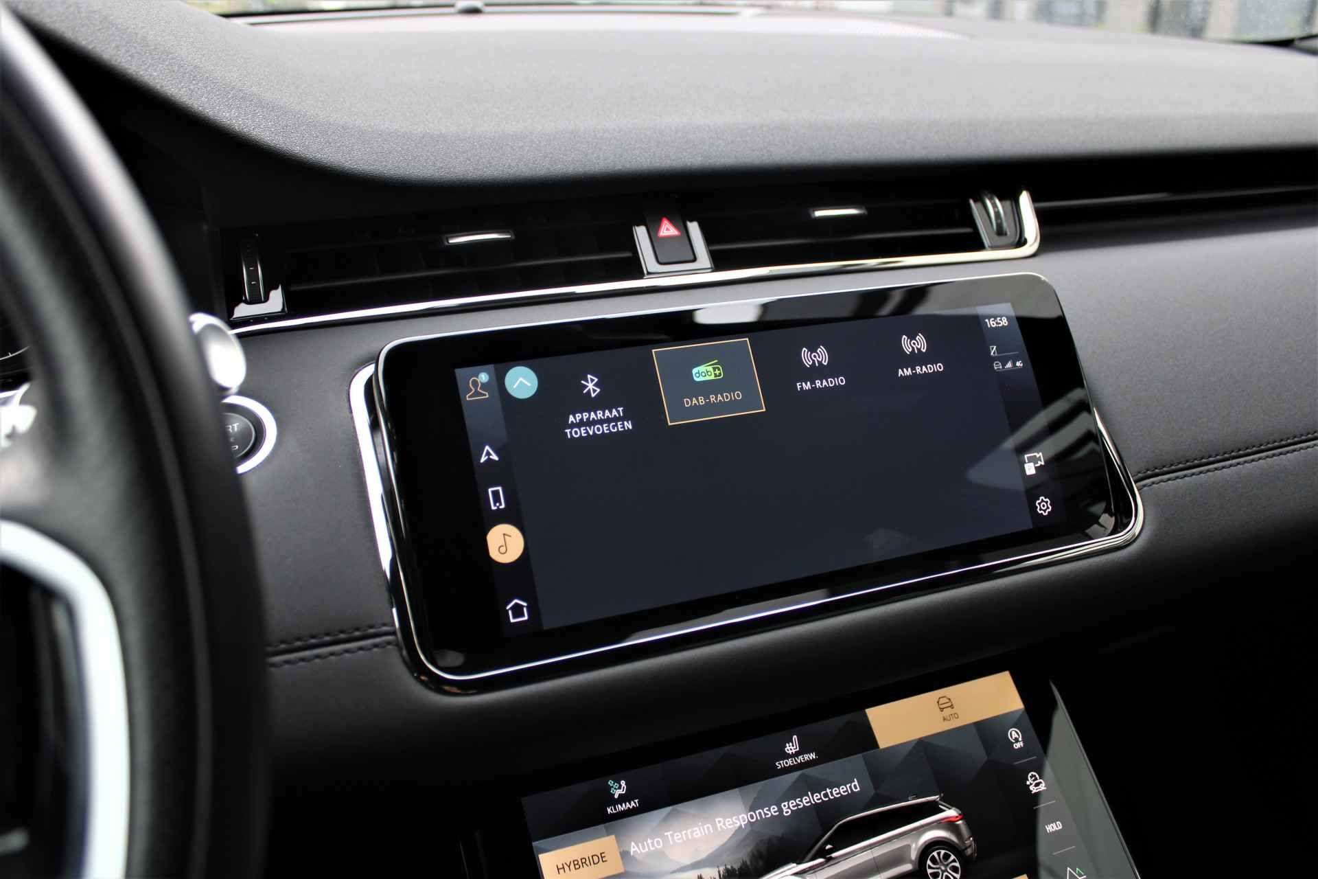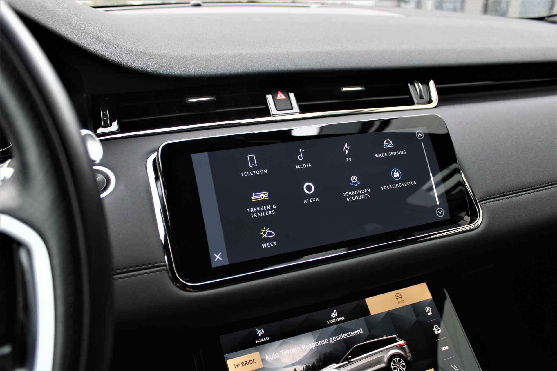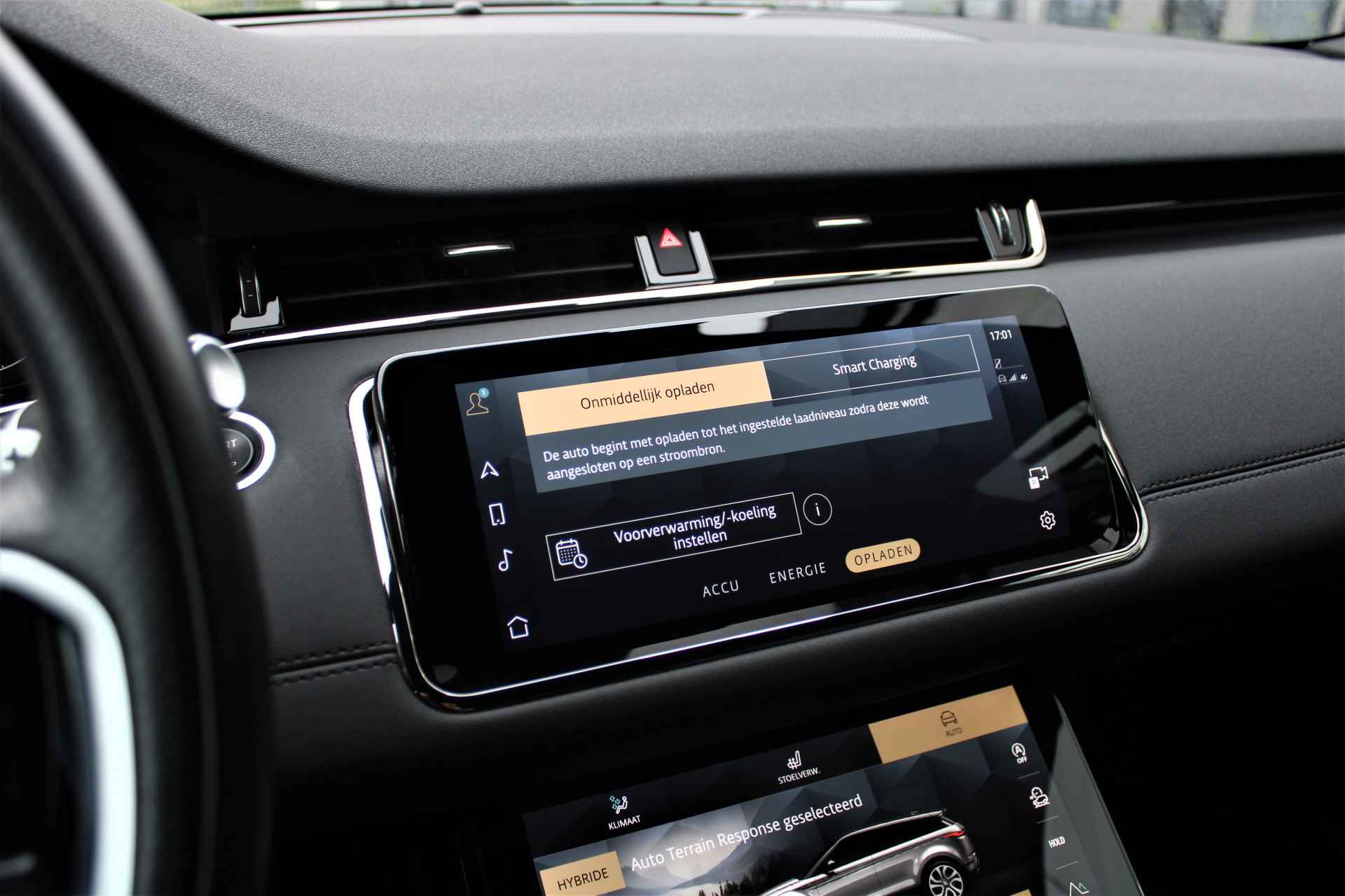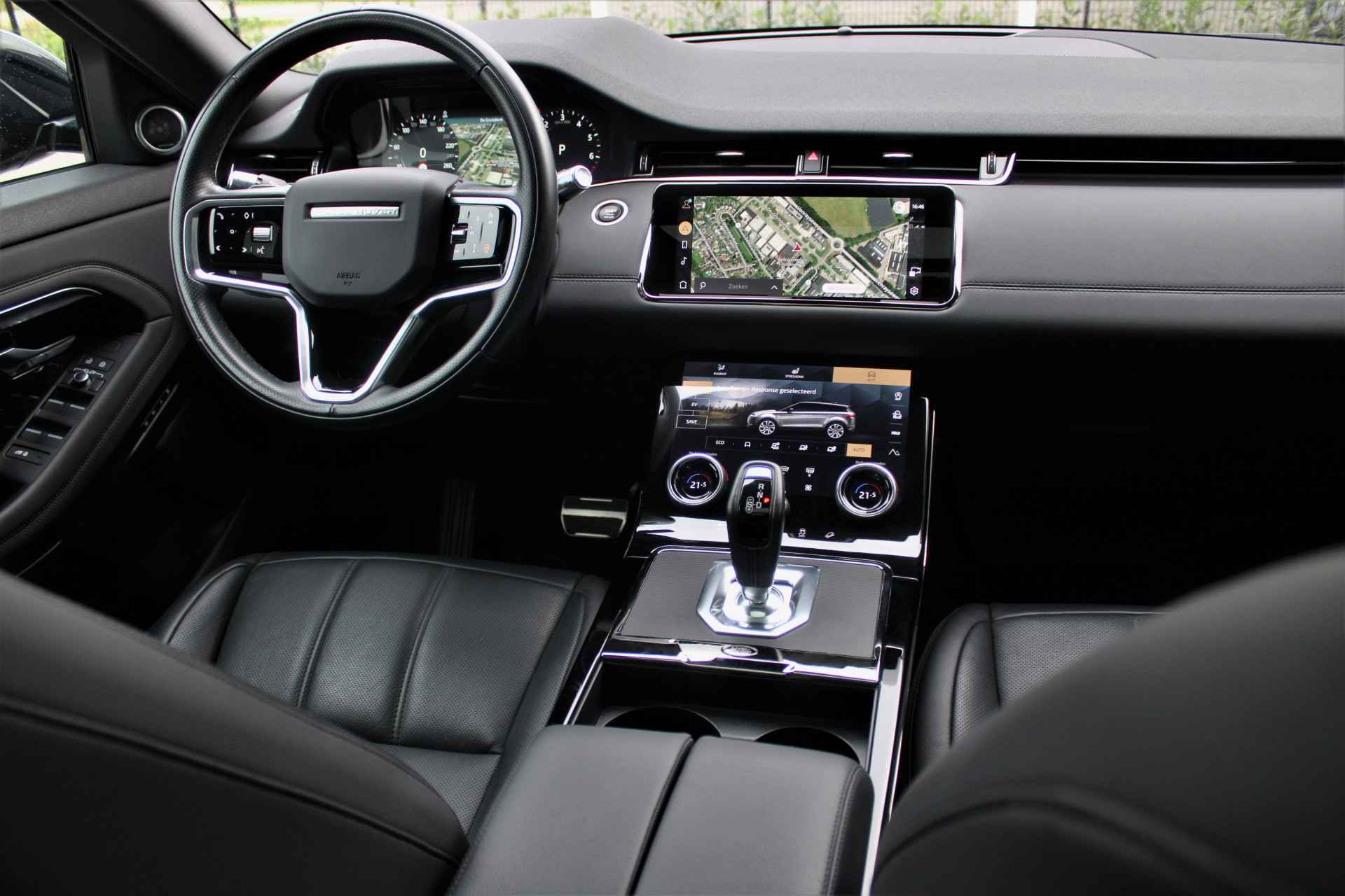 Land Rover Range Rover Evoque P300e AWD R-dynamic uitgevoerd in de prachtige kleur 'Santorini zwart metallic'. Deze Range Rover Evoque is compleet Land Rover dealer onderhouden en heeft 1 eigenaar gehad.