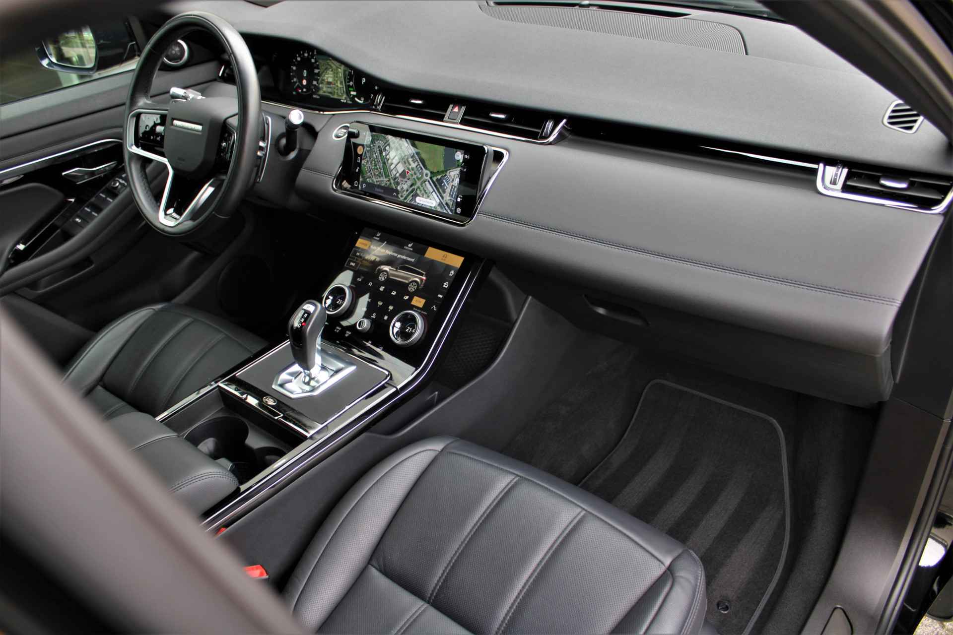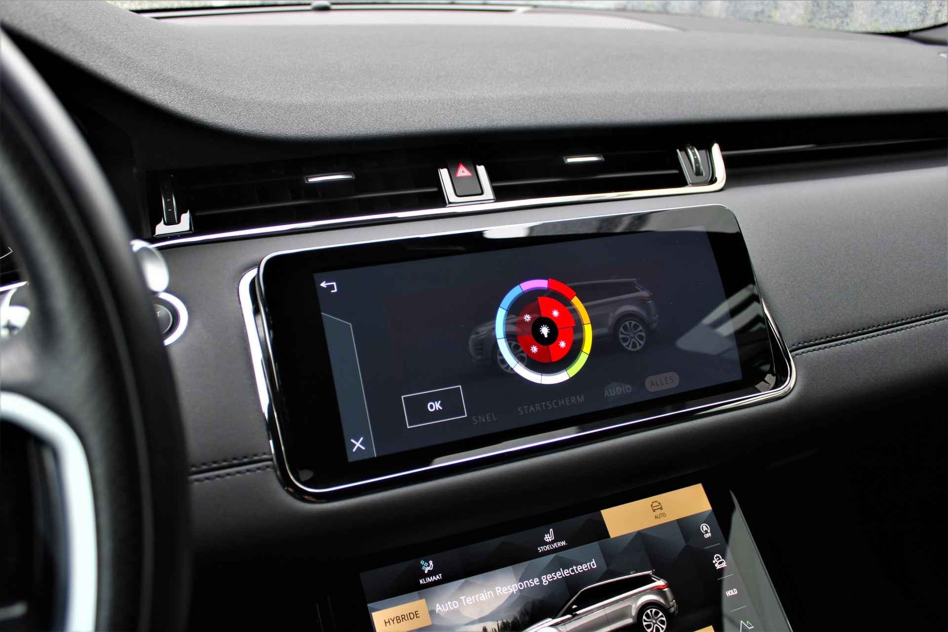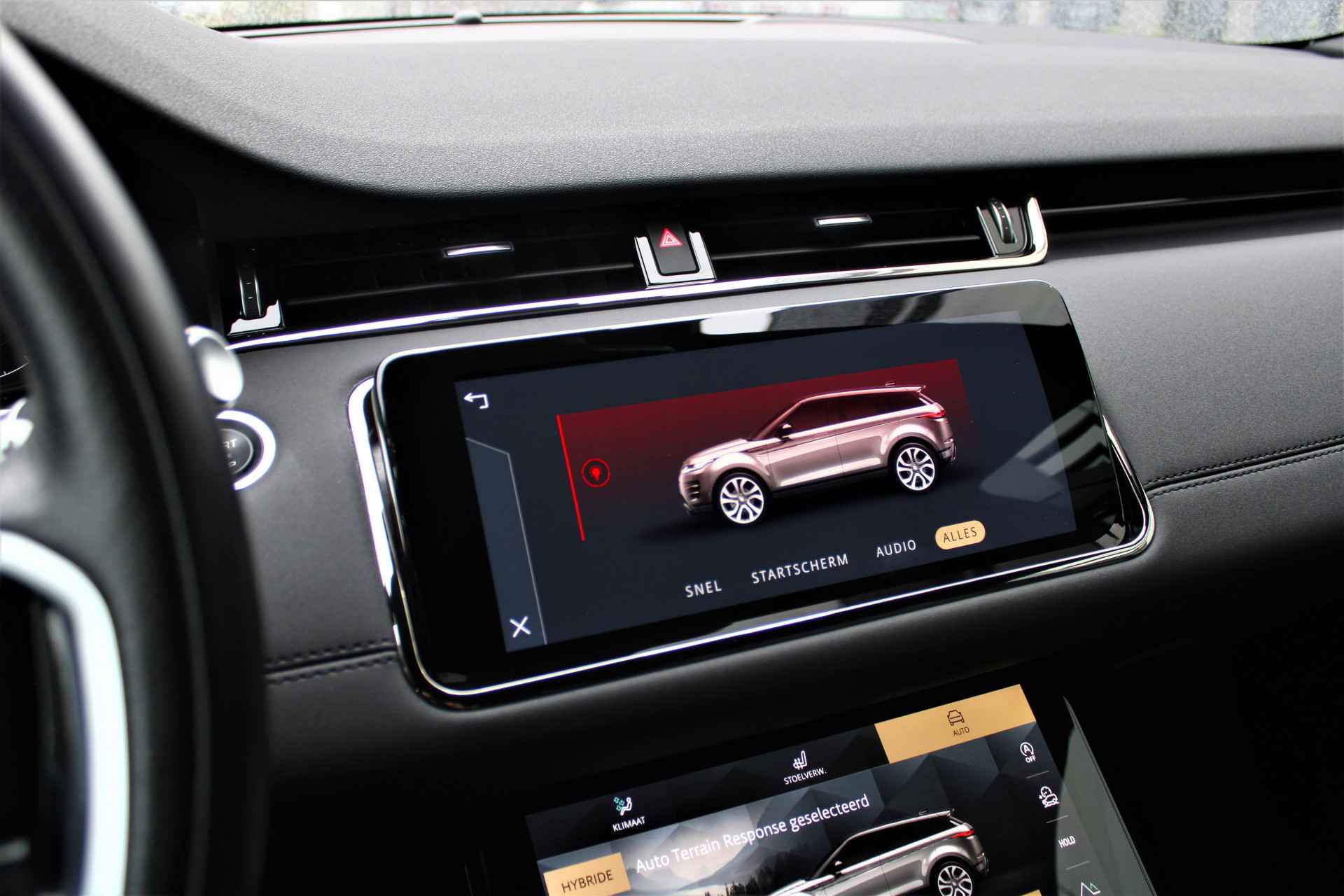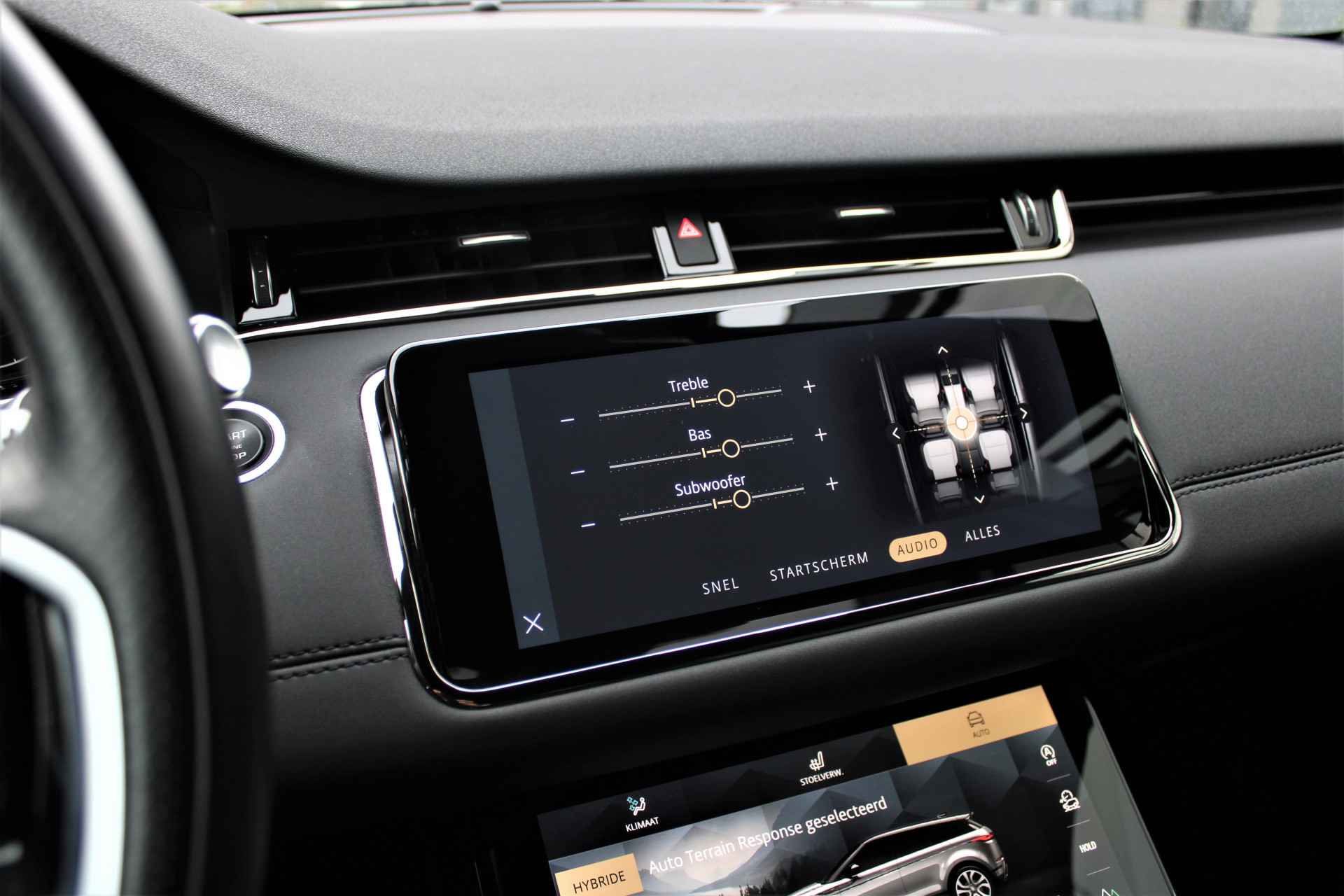 Land Rover Range Rover Evoque P300e AWD R-dynamic uitgevoerd in de prachtige kleur 'Santorini zwart metallic'. Deze Range Rover Evoque is compleet Land Rover dealer onderhouden en heeft 1 eigenaar gehad.