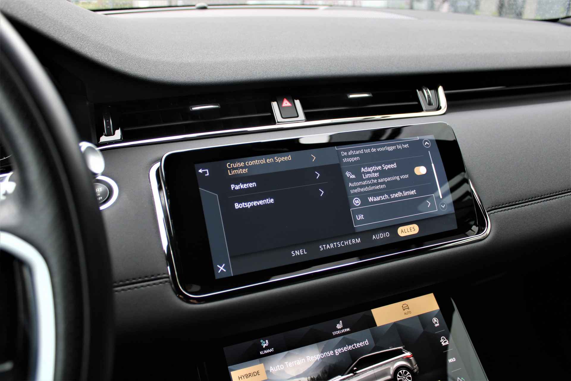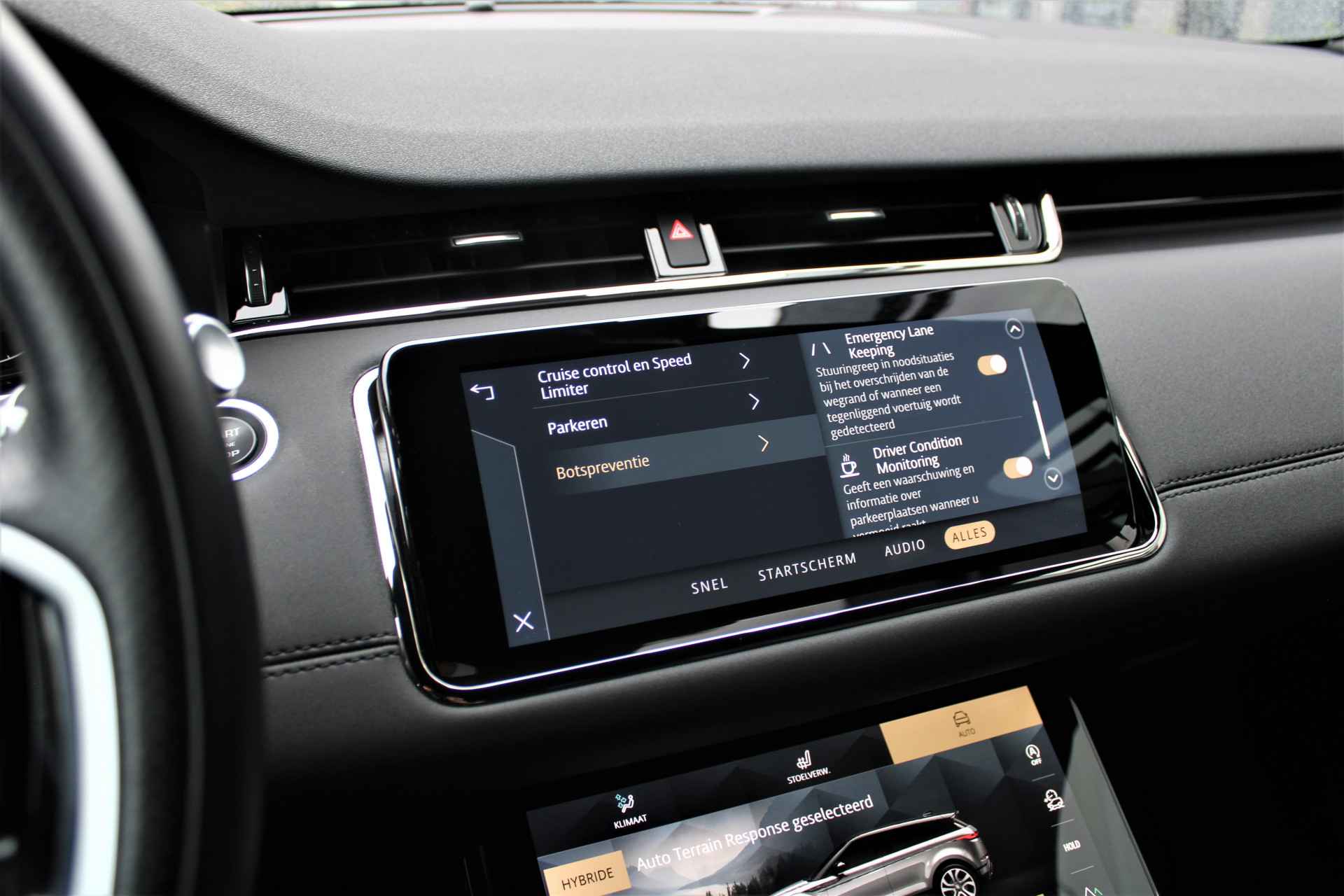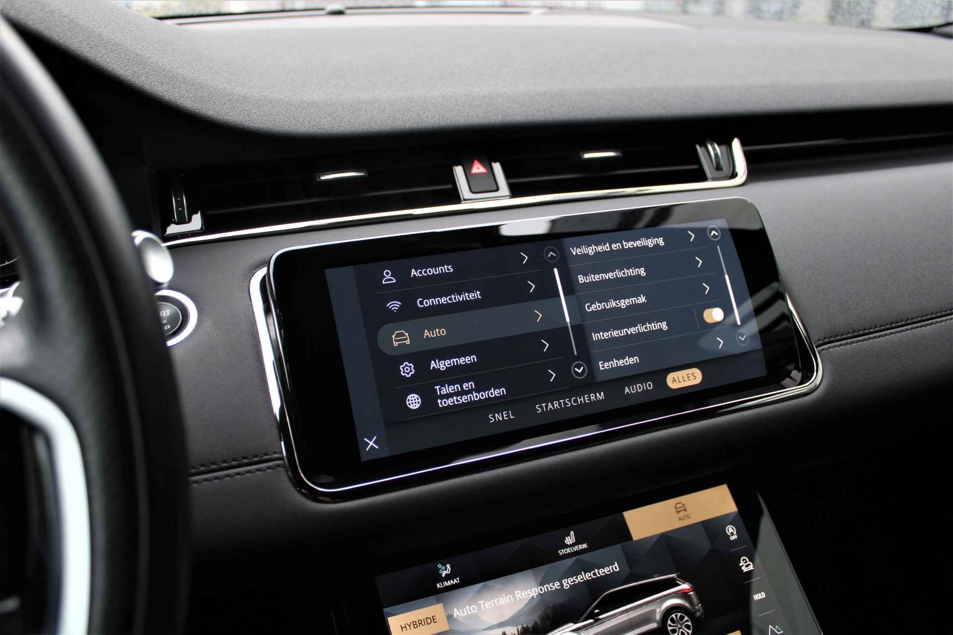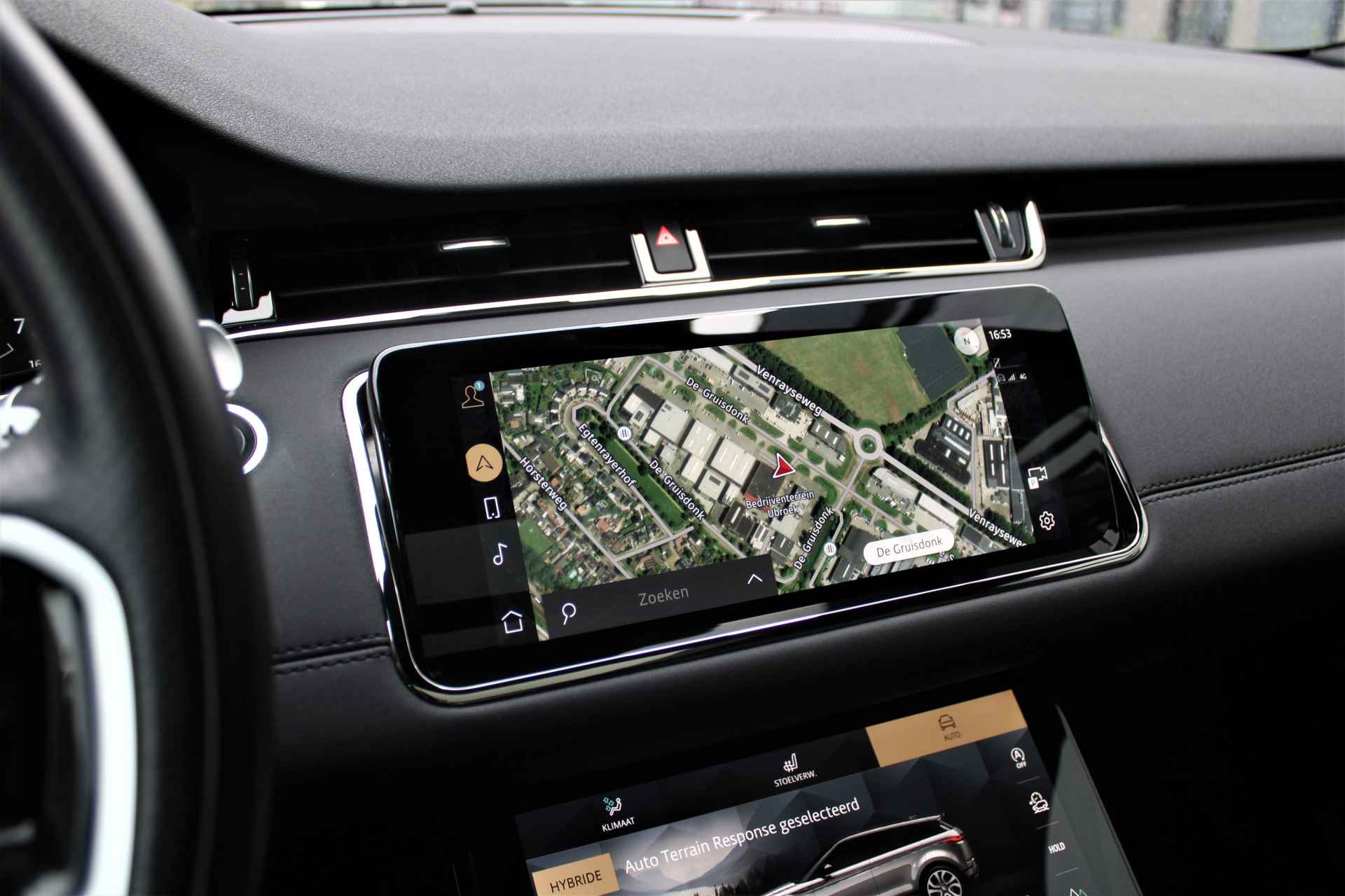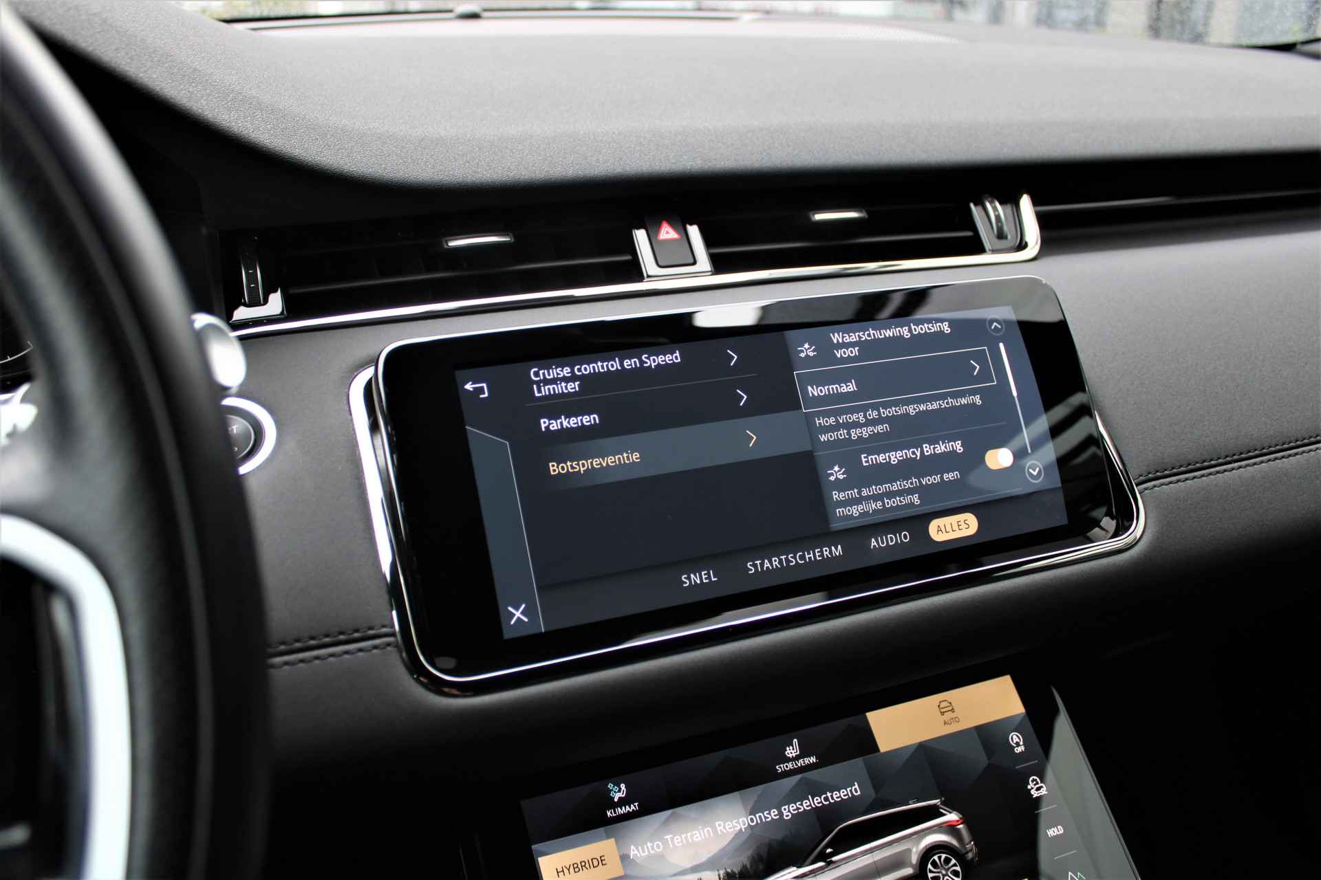 Land Rover Range Rover Evoque P300e AWD R-dynamic uitgevoerd in de prachtige kleur 'Santorini zwart metallic'. Deze Range Rover Evoque is compleet Land Rover dealer onderhouden en heeft 1 eigenaar gehad.
