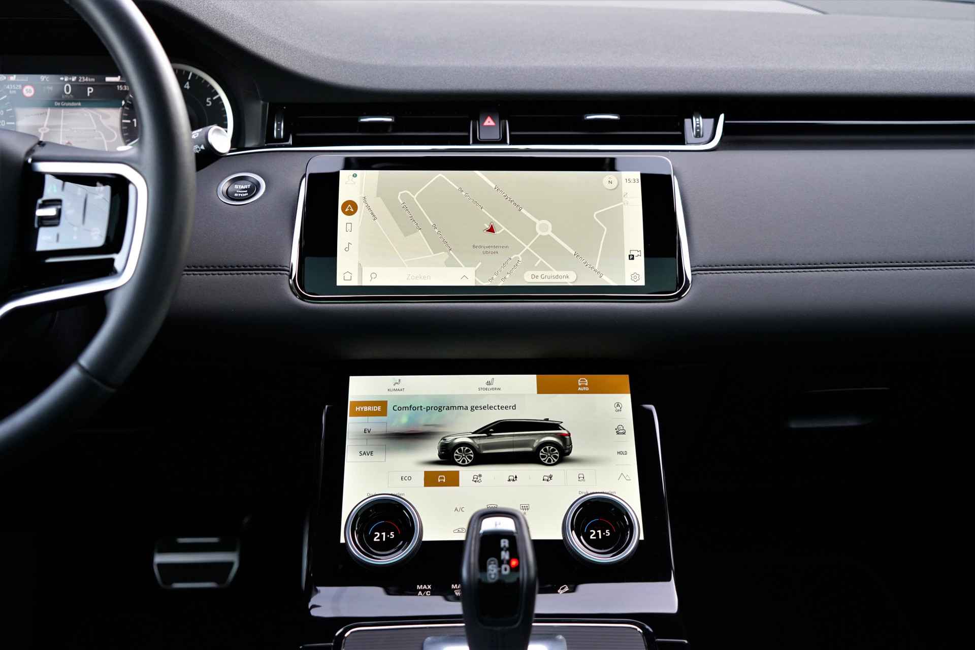 Land Rover Range Rover Evoque P300e AWD R-Dynamic SE uitgevoerd in de prachtige kleur 'EigerGrey metallic'. Deze Range Rover Evoque is compleet Land Rover dealer onderhouden en heeft 1 eigenaar gehad.