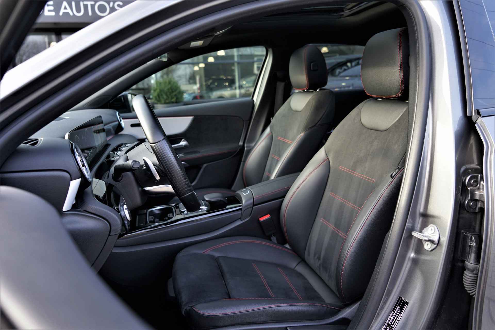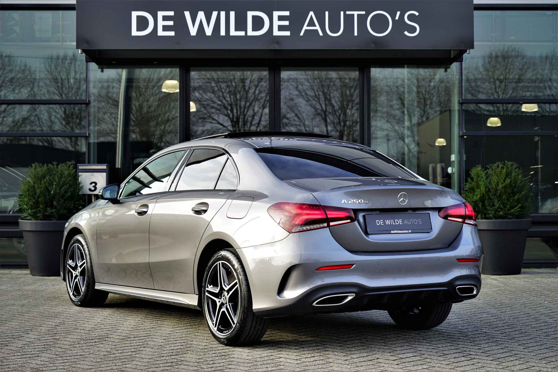 Mercedes-Benz A-klasse 250e hybride limousine in de kleur 'MountainGrey Metallic' voorzien van AMG-pakket & een Night-pakket. De Mercedes A-klasse is compleet Mercedes dealer onderhouden en heeft slechts één eigenaar gehad. De A250e heeft een elektrisch bereik van +/- 70 kilometer en een gecombineerd vermogen van 218pk. Het betreft een BTW-auto, waardoor de BTW voor de zakelijke rijder is terug te vorderen (verkoopprijs inclusief BTW). Verder is de auto zeer compleet uitgerust met o.a. de volgende lijst aan opties: