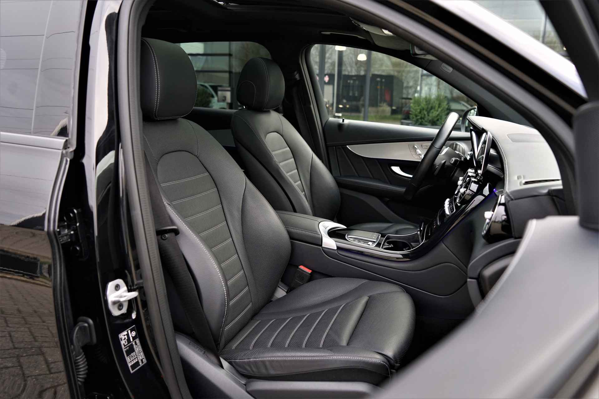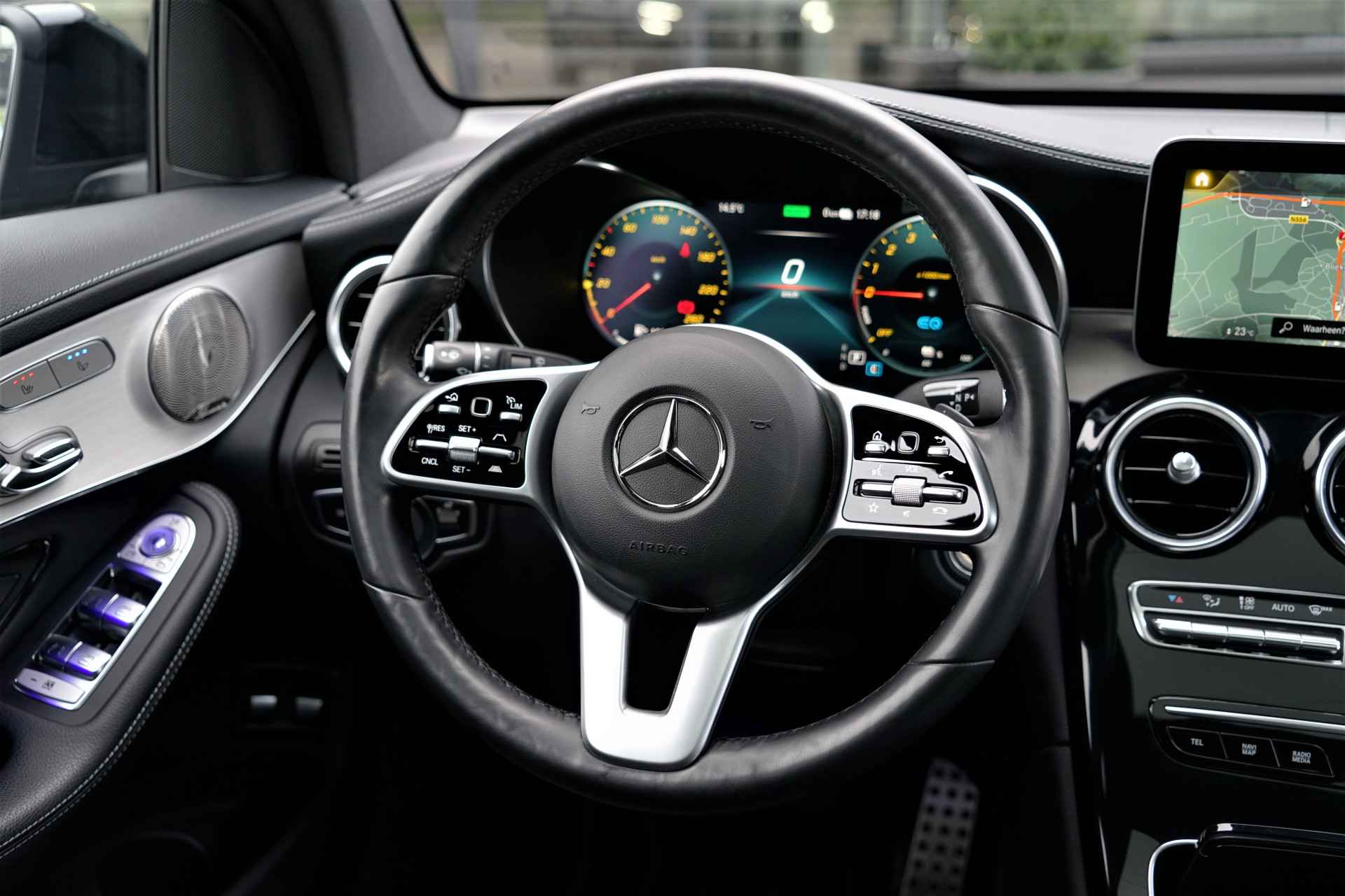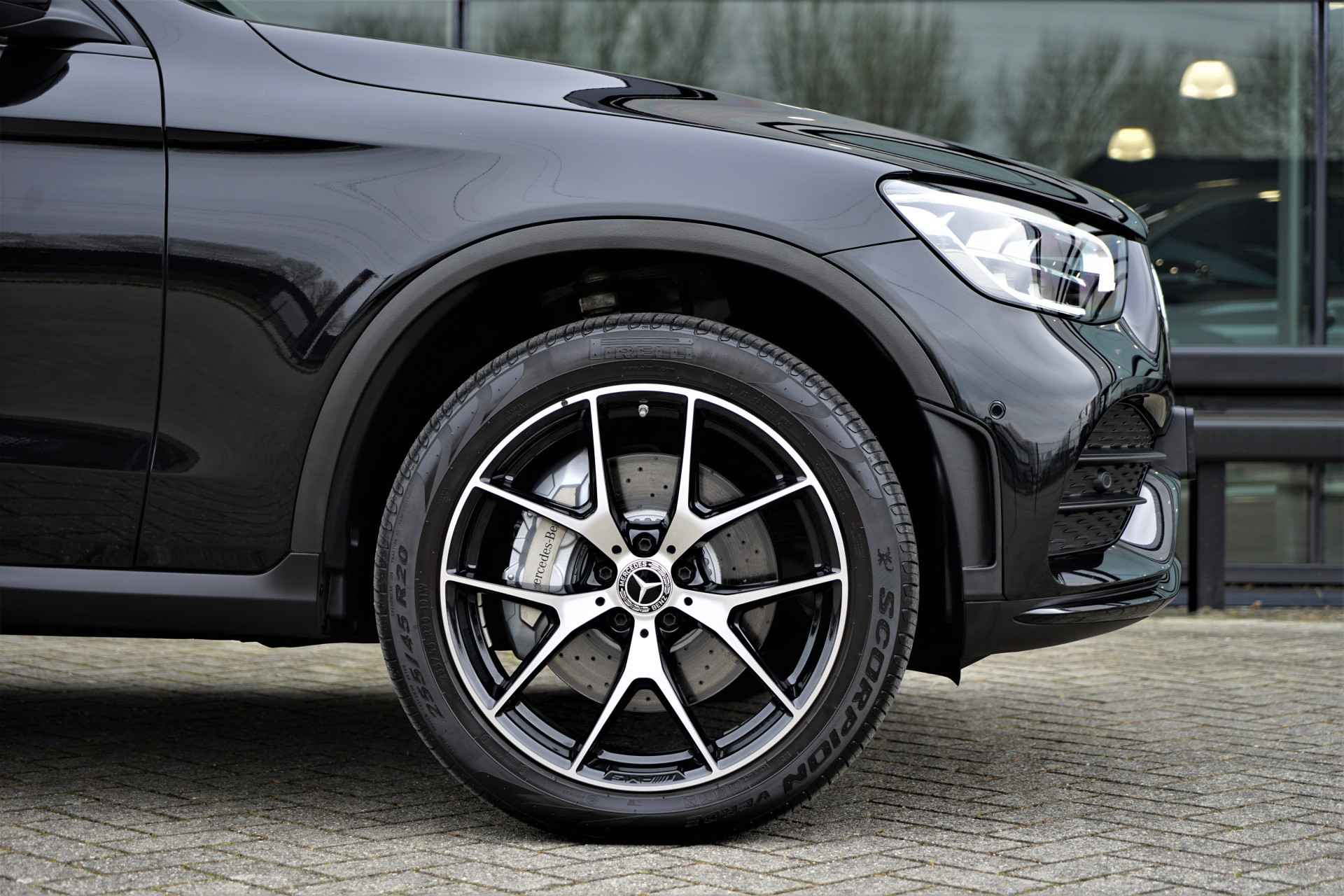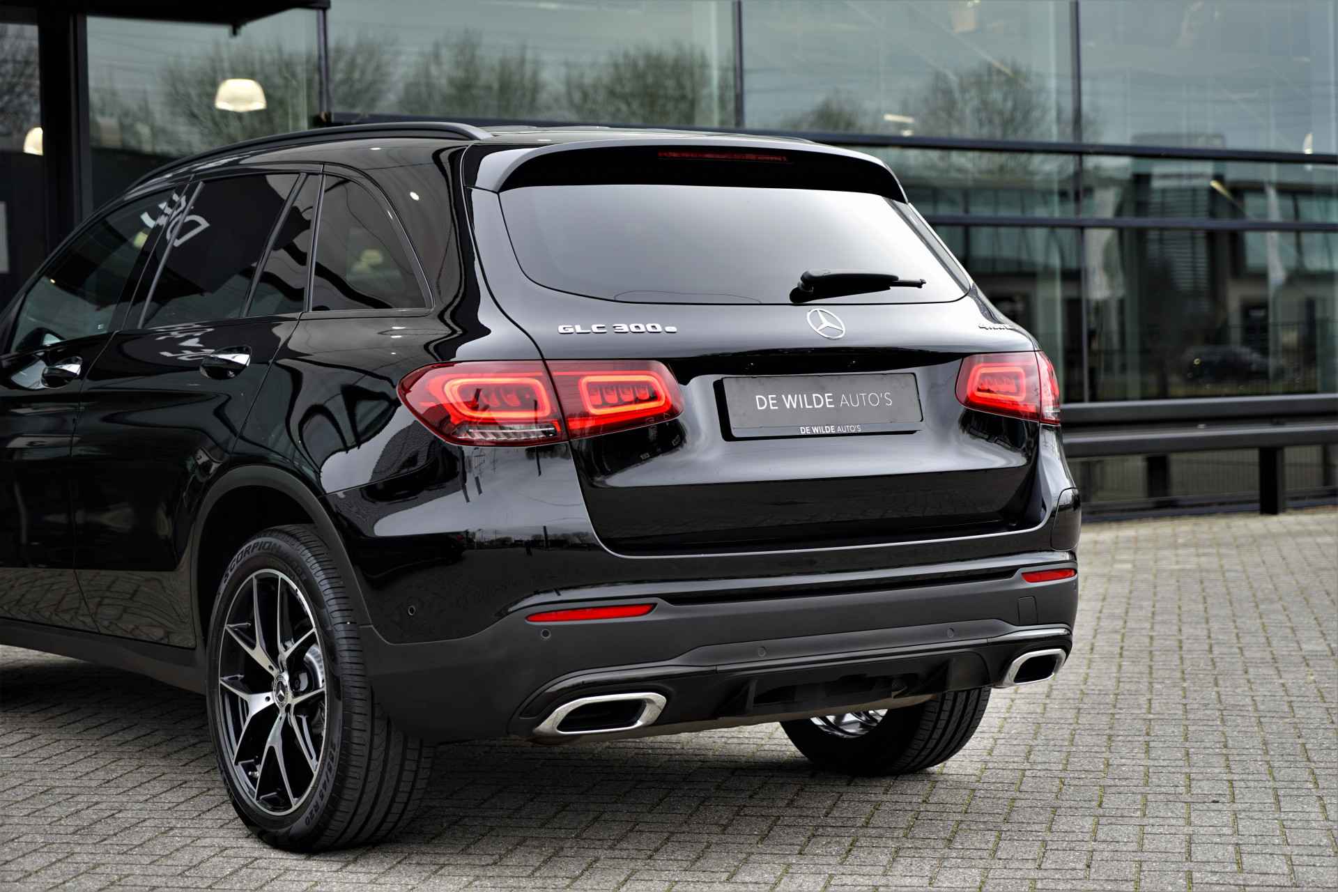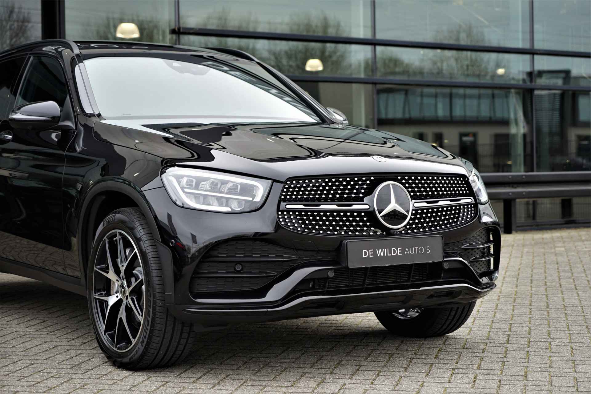 Mercedes GLC 300e 4MATIC hybride in de kleur 'Obsidiaanzwart Metallic' gecombineerd met een AMG- & Night-pakket. De auto is compleet Mercedes dealer onderhouden, heeft slecht één eigenaar gehad en is reeds voorzien van alarm klasse 3. Het betreft een BTW-auto, waardoor de BTW voor de zakelijke rijder is terug te vorderen. De GLC 300e heeft een gecombineerd vermogen van 320 pk en een elektrisch bereik van +/- 50 km. Deze Mercedes GLC is verder mega compleet uitgerust met o.a. de volgende lijst aan opties: