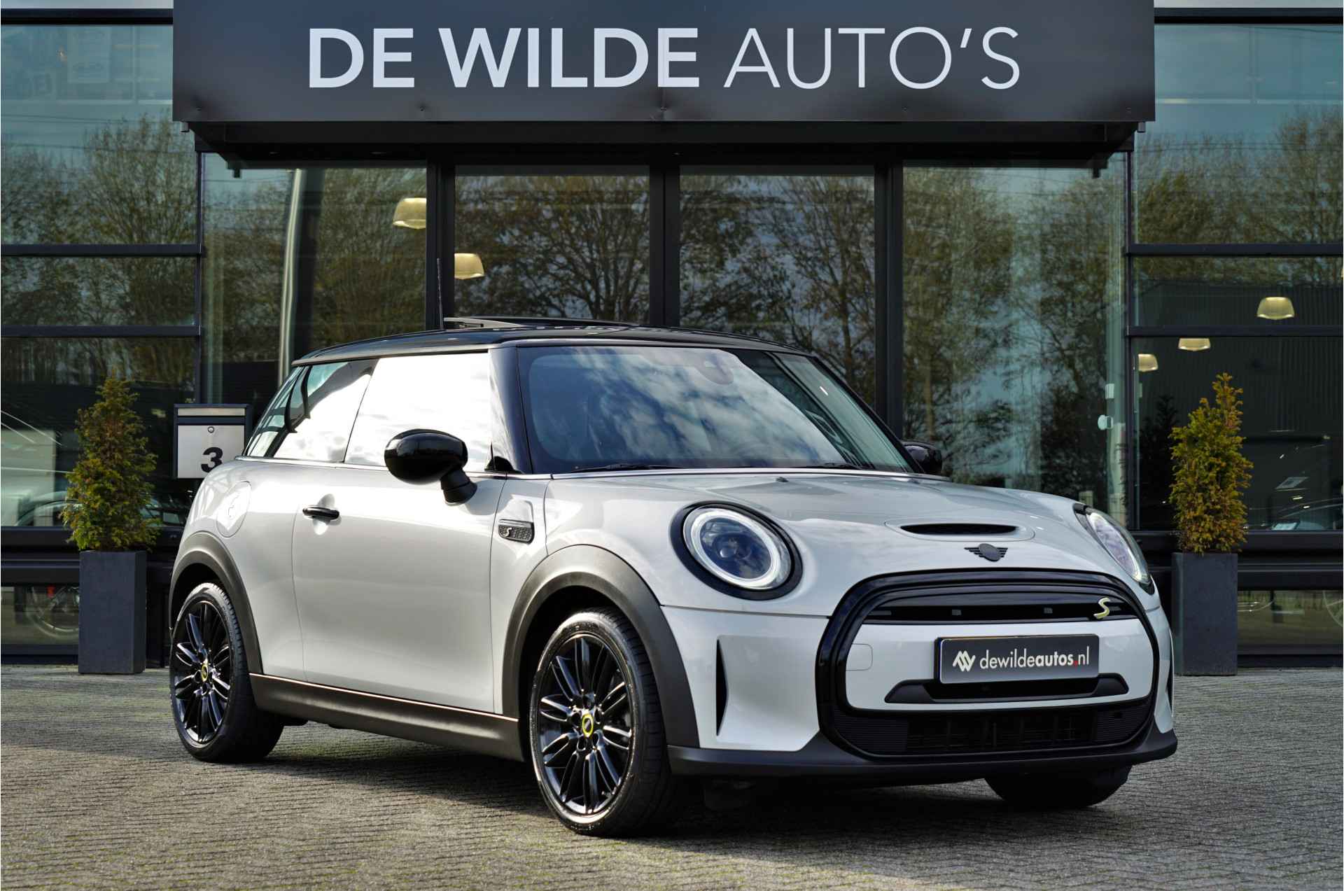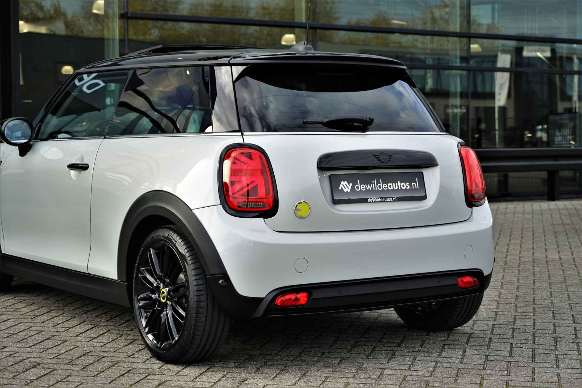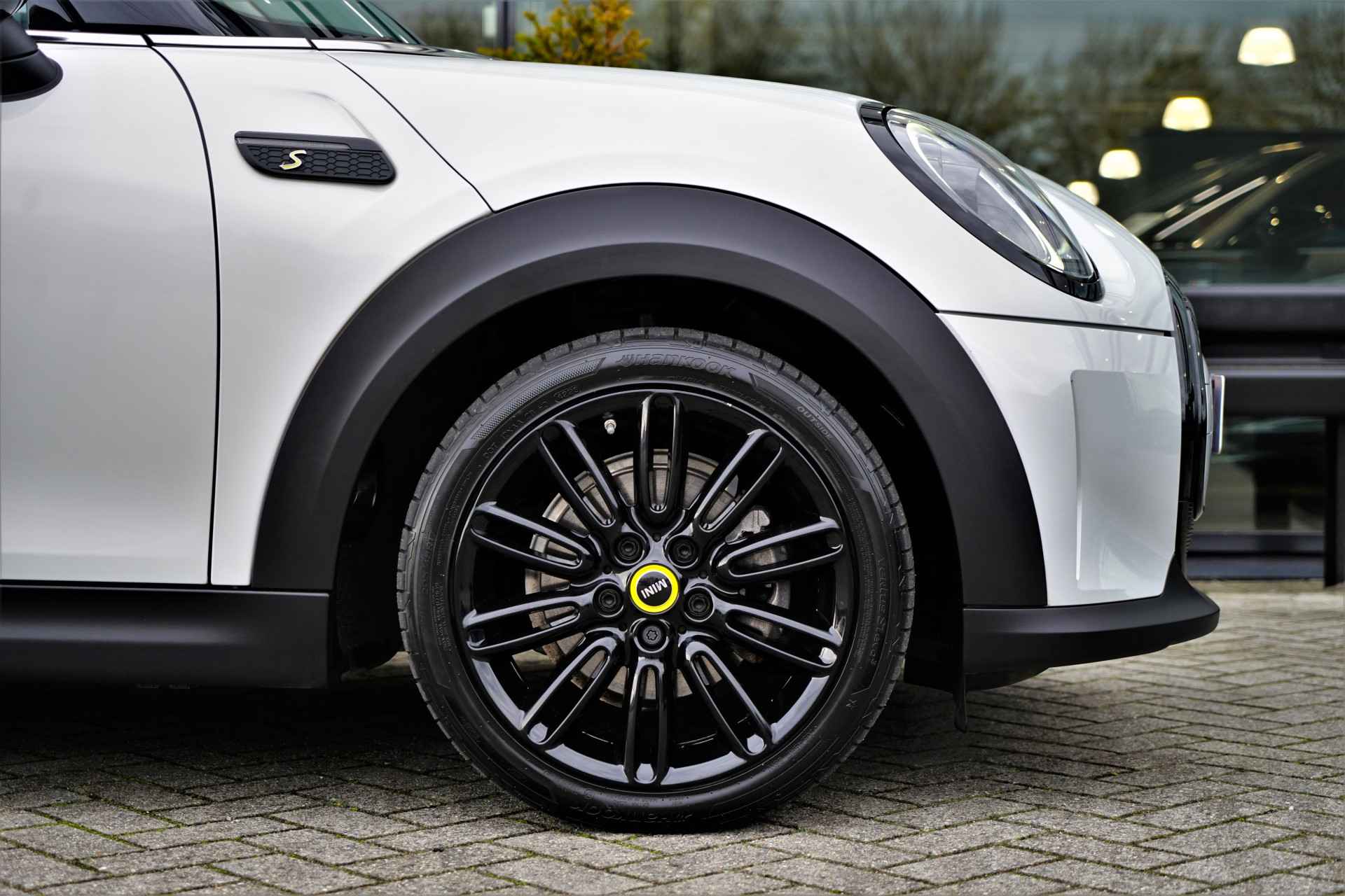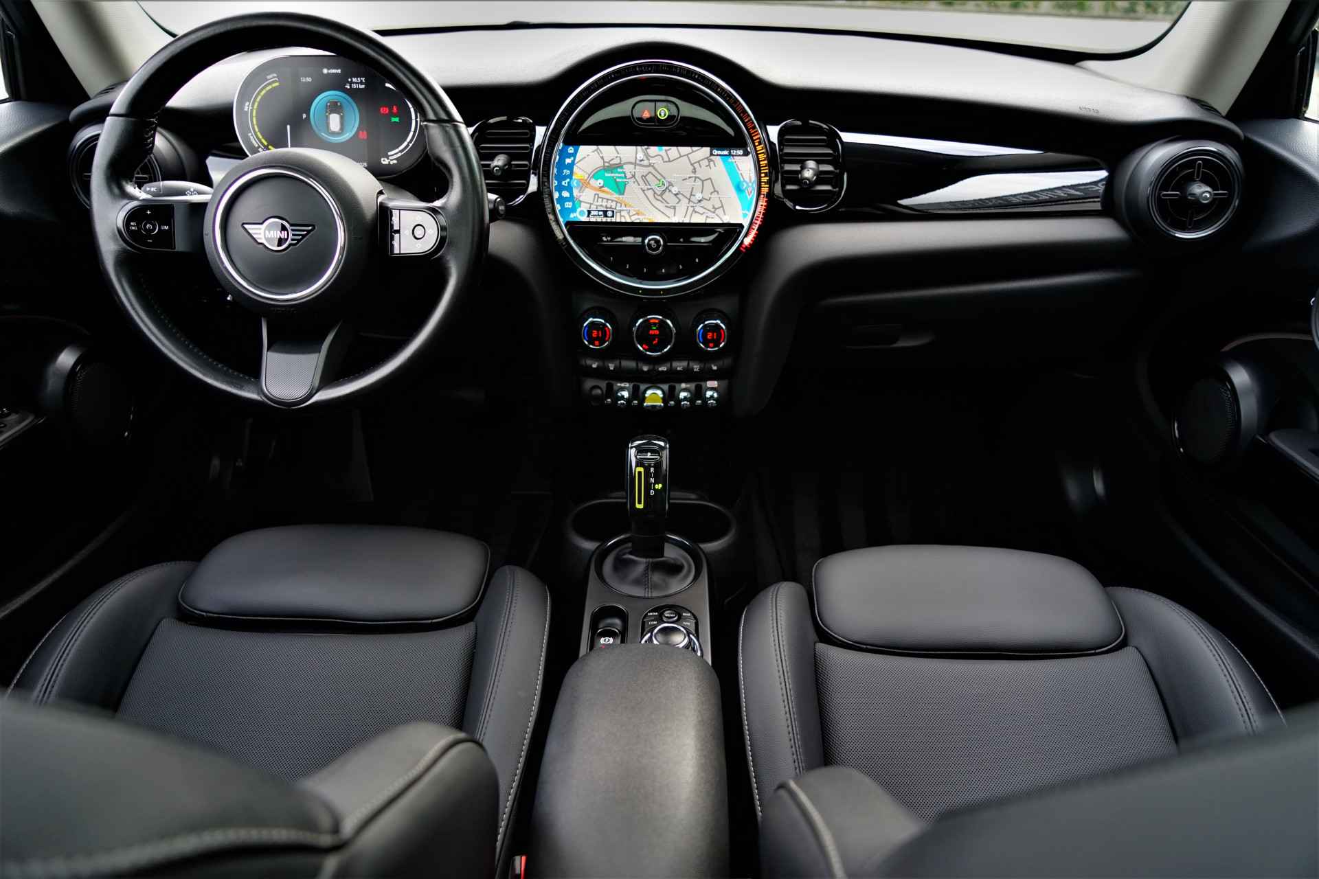 MINI Cooper Electric 33 kWh in de speciale kleur 'White Silver Metallic' met een zwart Lederen interieur. De MINI is compleet MINI dealer onderhouden en heeft slechts één eigenaar gehad. De MINI Electric heeft een vermogen van 184 pk en een actieradius van +/- 200 / 234 (WLTP) kilometer.