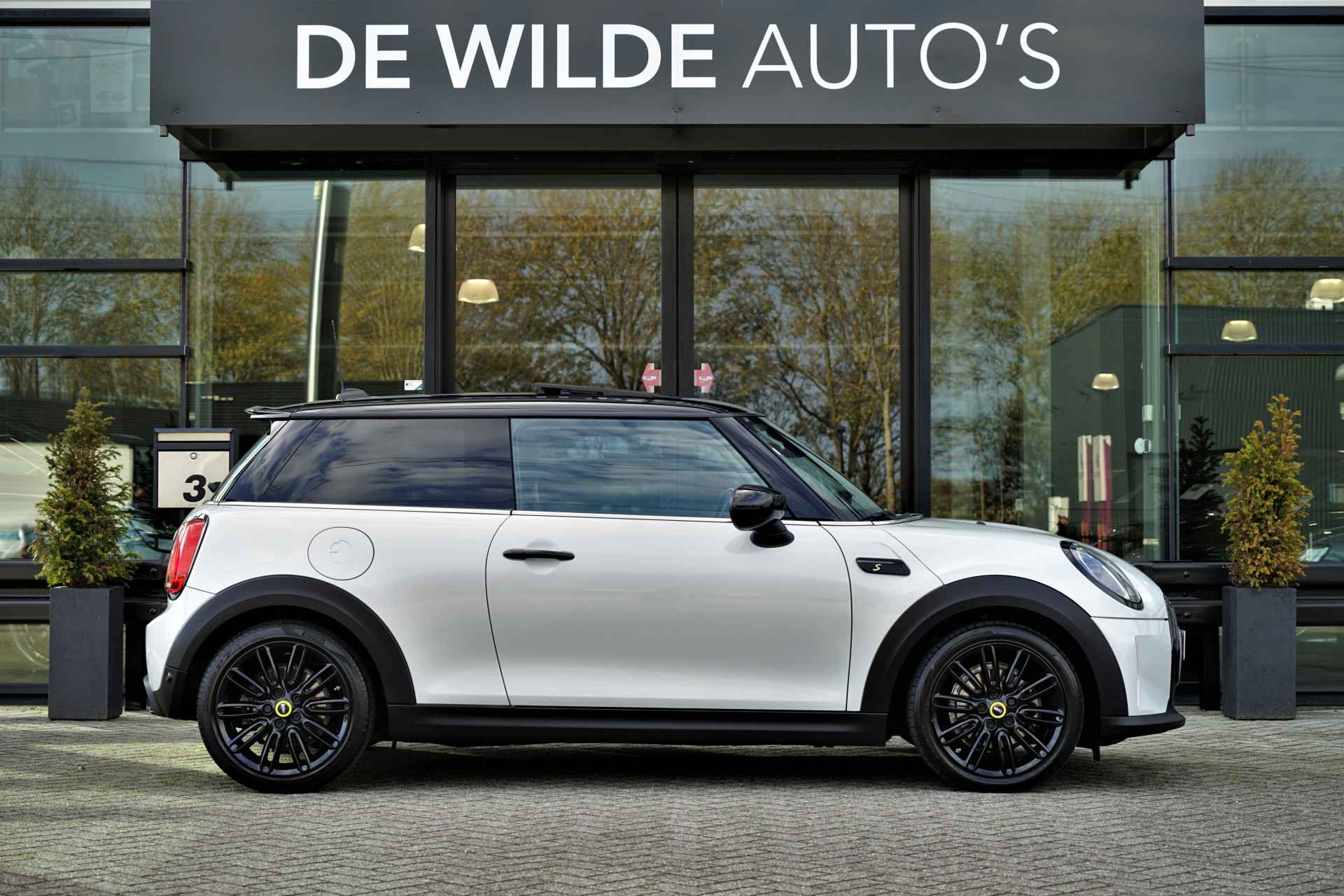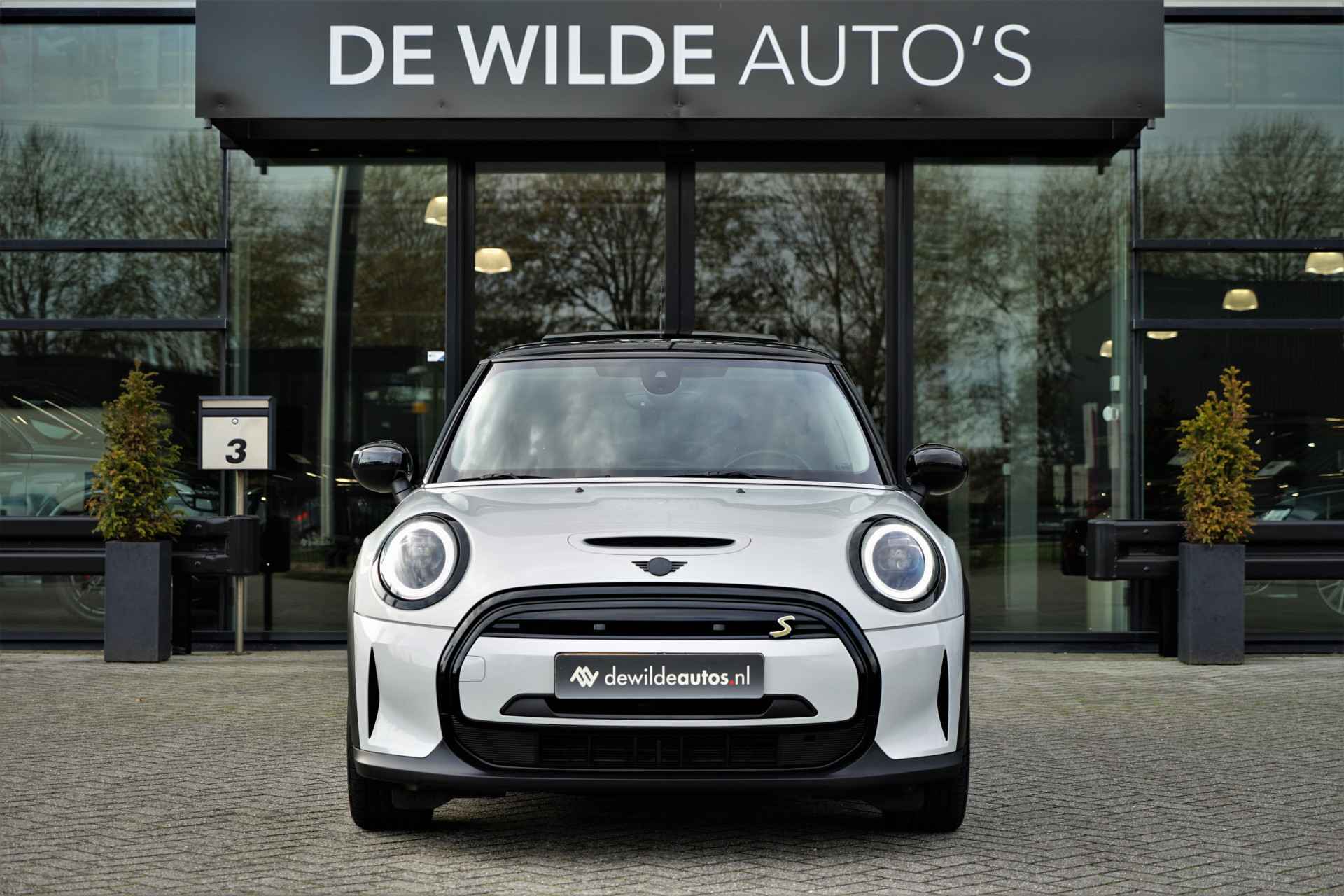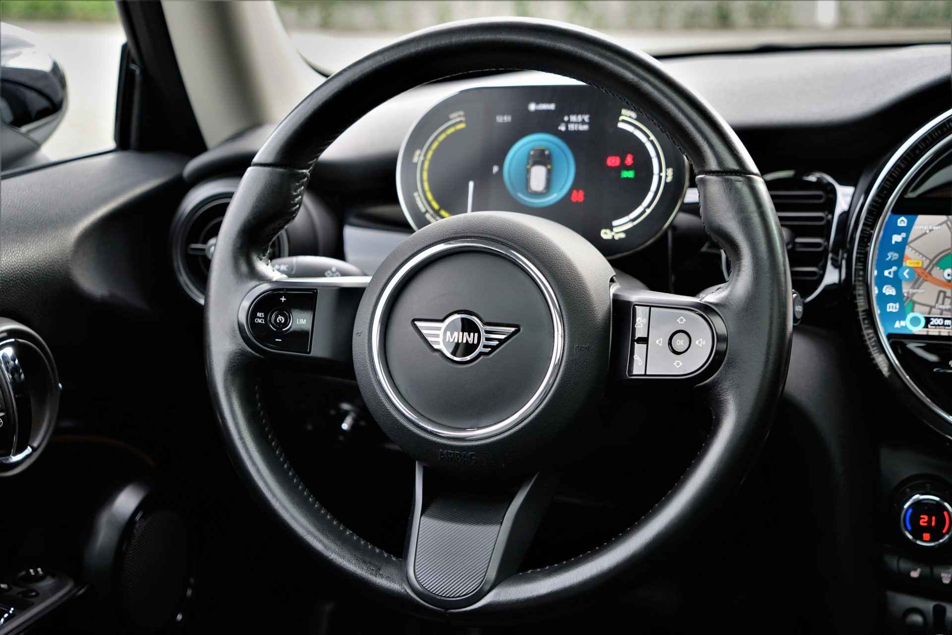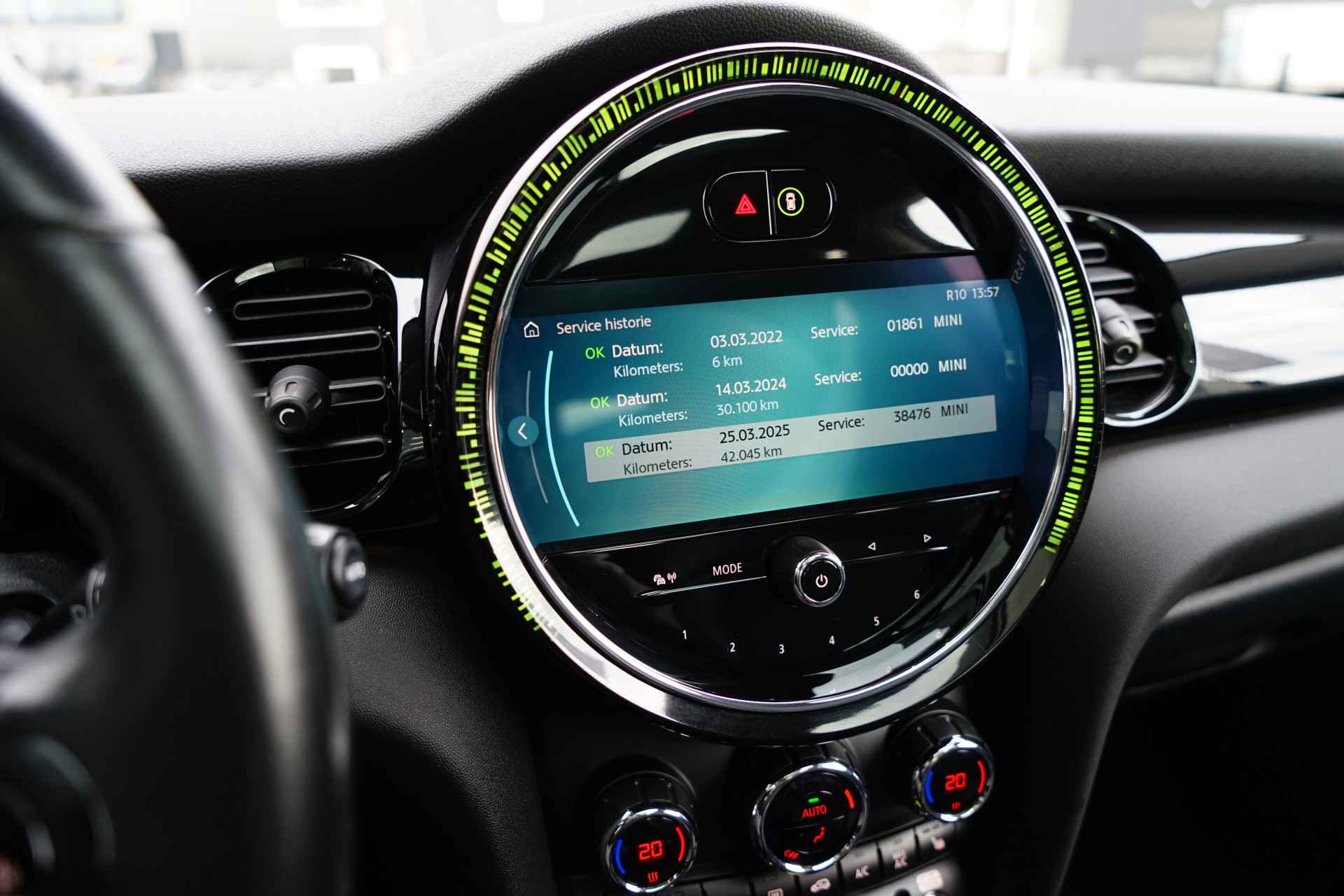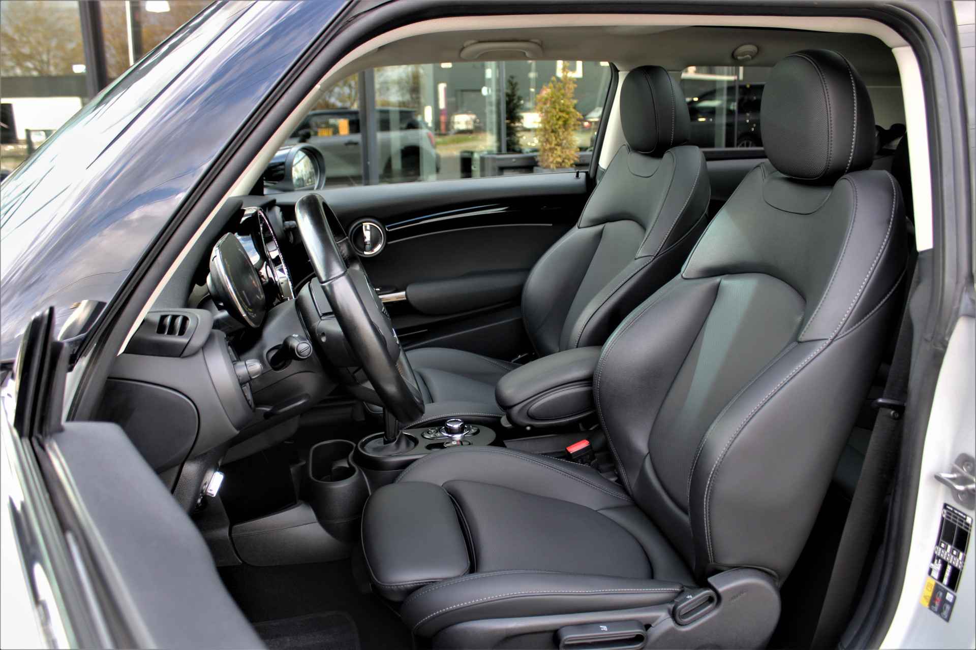MINI Cooper Electric 33 kWh in de speciale kleur 'White Silver Metallic' met een zwart Lederen interieur. De MINI is compleet MINI dealer onderhouden en heeft slechts één eigenaar gehad. De MINI Electric heeft een vermogen van 184 pk en een actieradius van +/- 200 / 234 (WLTP) kilometer.