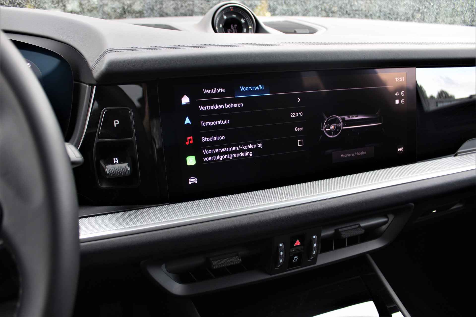 Per direct beschikbaar: Porsche Cayenne Coupé 3.0 E-hybrid in SportDesign uitvoering en de speciale kleur 'Krijt grijs'. De Cayenne heeft nog volledige fabrieksgarantie en is compleet Porsche dealer onderhouden. De Porsche Cayenne E-hybrid heeft gecombineerd vermogen van 470 pk en heeft een elektrische actieradius van +/- 80 kilometer. Het betreft een BTW-auto, waardoor de BTW voor de zakelijke rijder is terug te vorderen. Verder is deze Cayenne zeer compleet uitgevoerd met o.a. de volgende lijst aan opties: