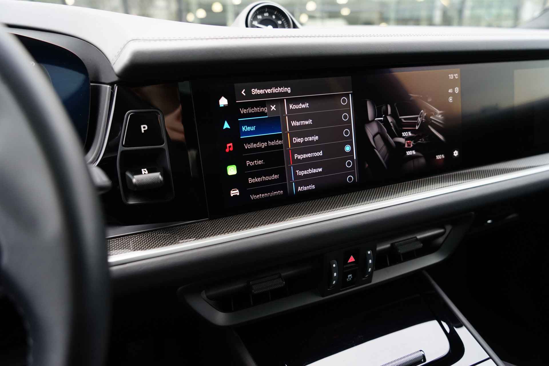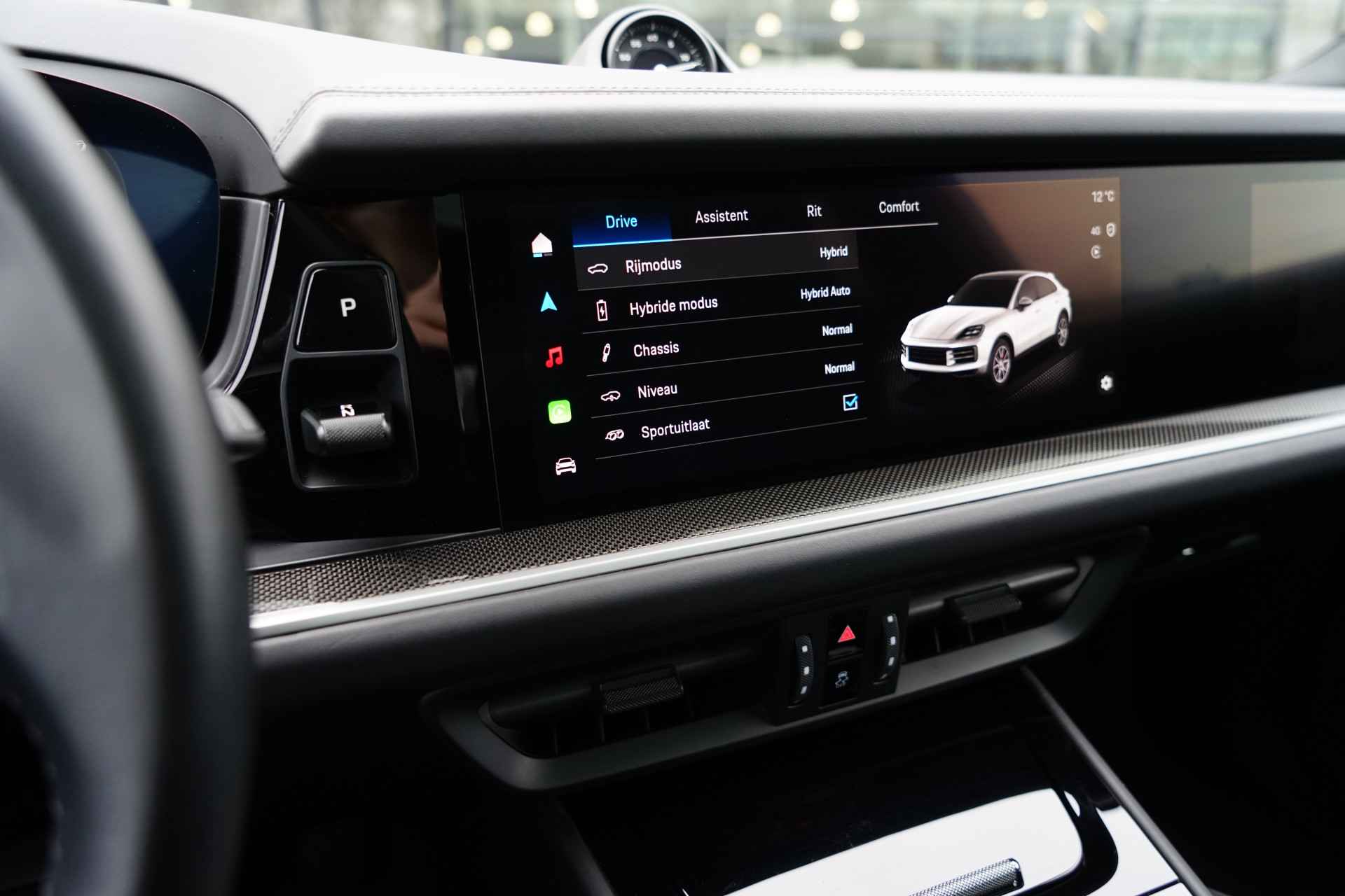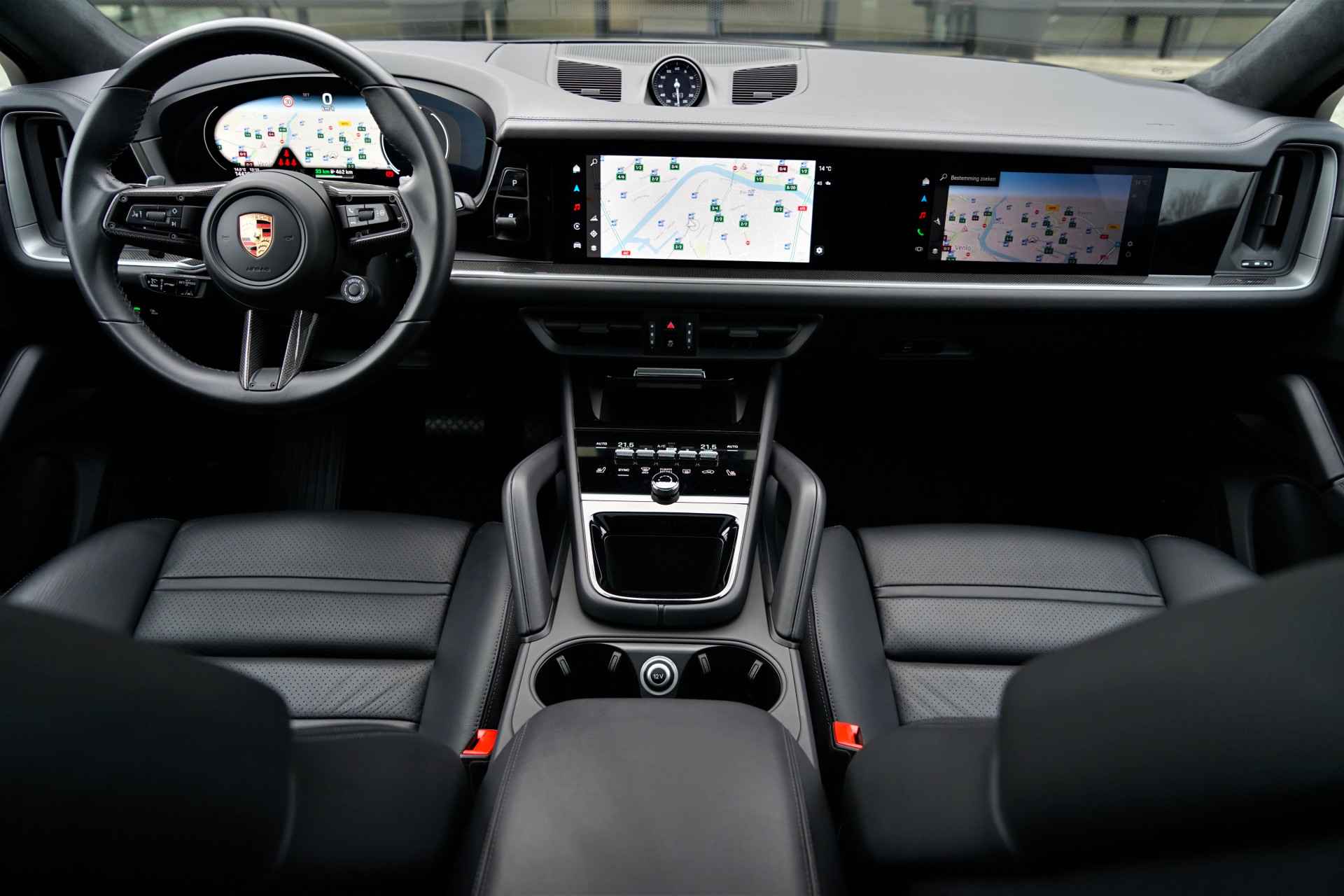 Per direct beschikbaar: Origineel Nederlands geleverde (NAP) Porsche Cayenne Coupé 3.0 E-hybrid in SportDesign uitvoering en de prachtige kleur 'Kwartsiet grijs metallic'. De Cayenne heeft nog volledige fabrieksgarantie, is compleet Porsche dealer onderhouden en is reeds voorzien van alarm klasse 3 & 5 voertuigvolgsysteem. De Porsche Cayenne E-hybrid heeft gecombineerd vermogen van 470 pk en heeft een elektrische actieradius van +/- 80 kilometer. Verder is deze Cayenne zeer compleet uitgevoerd met o.a. de volgende lijst aan opties: