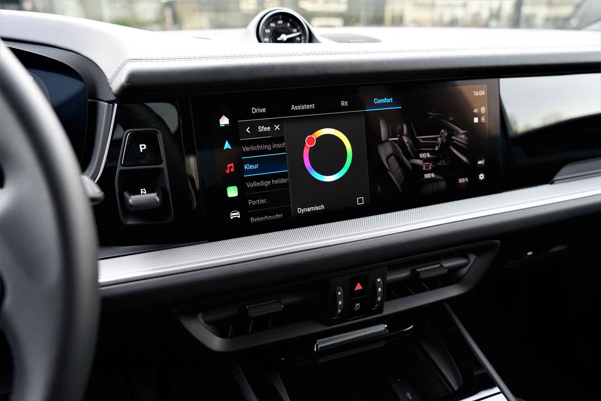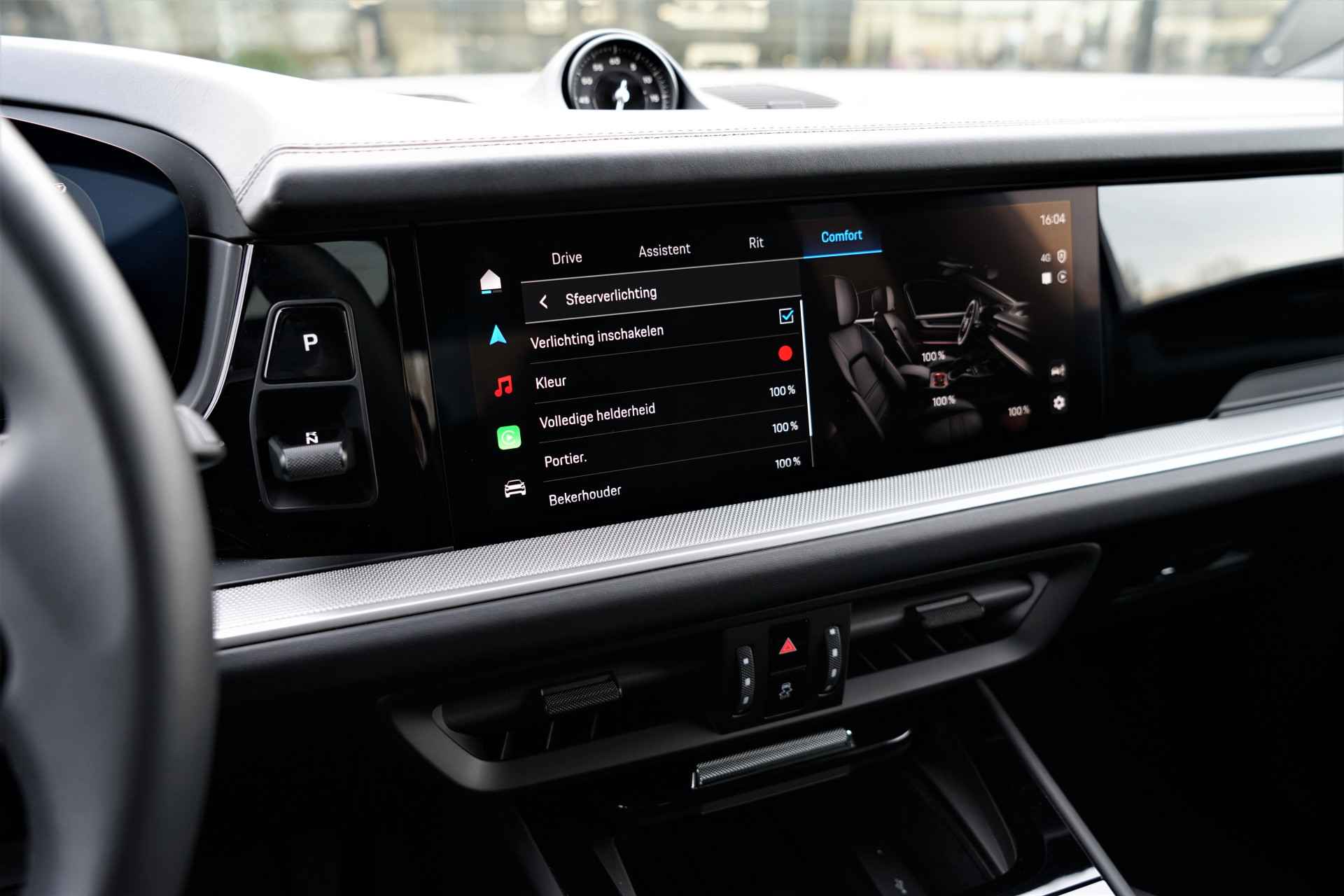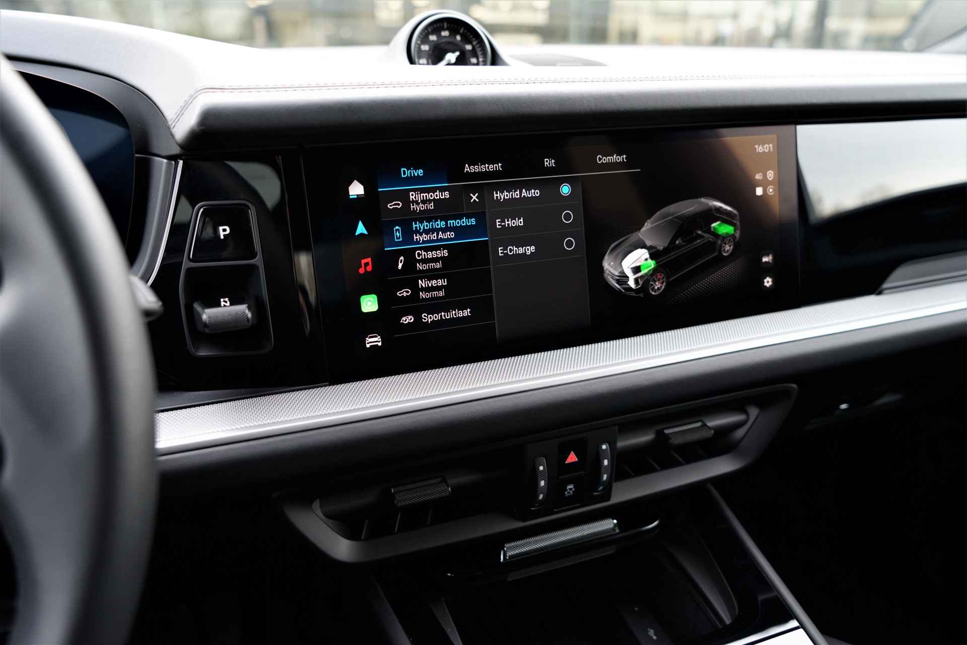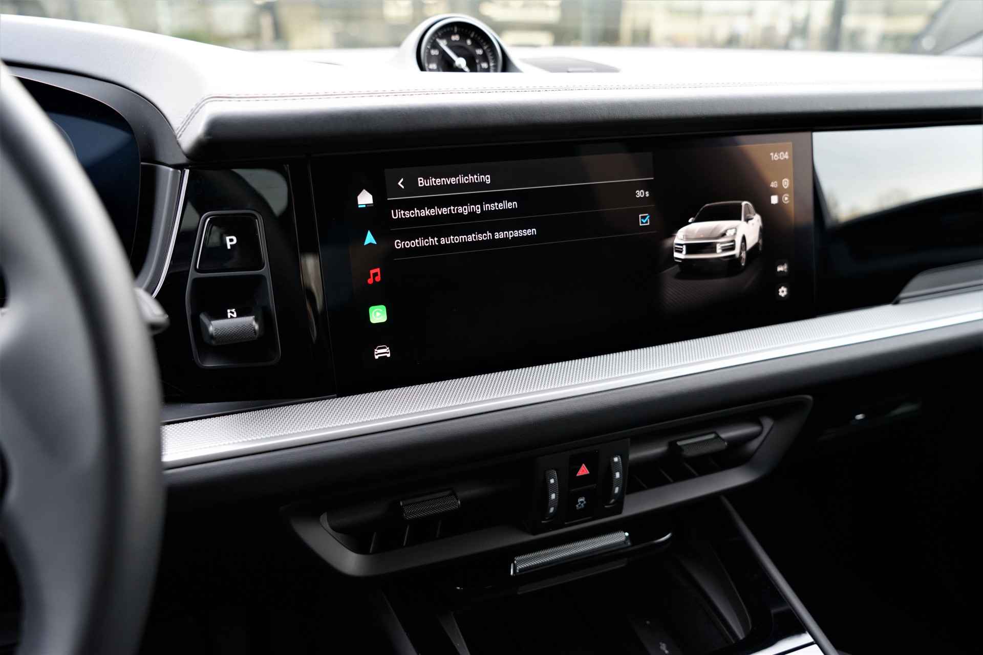 Per direct beschikbaar: Origineel Nederlands geleverde (NAP) Porsche Cayenne Coupé 3.0 E-hybrid in SportDesign uitvoering en de prachtige kleur 'Kwartsiet grijs metallic'. De Cayenne heeft nog volledige fabrieksgarantie, is compleet Porsche dealer onderhouden en is reeds voorzien van alarm klasse 3 & 5 voertuigvolgsysteem. De Porsche Cayenne E-hybrid heeft gecombineerd vermogen van 470 pk en heeft een elektrische actieradius van +/- 80 kilometer. Het betreft een BTW-auto, waardoor de BTW voor de zakelijke rijder is terug te vorderen. Verder is deze Cayenne zeer compleet uitgevoerd met o.a. de volgende lijst aan opties: