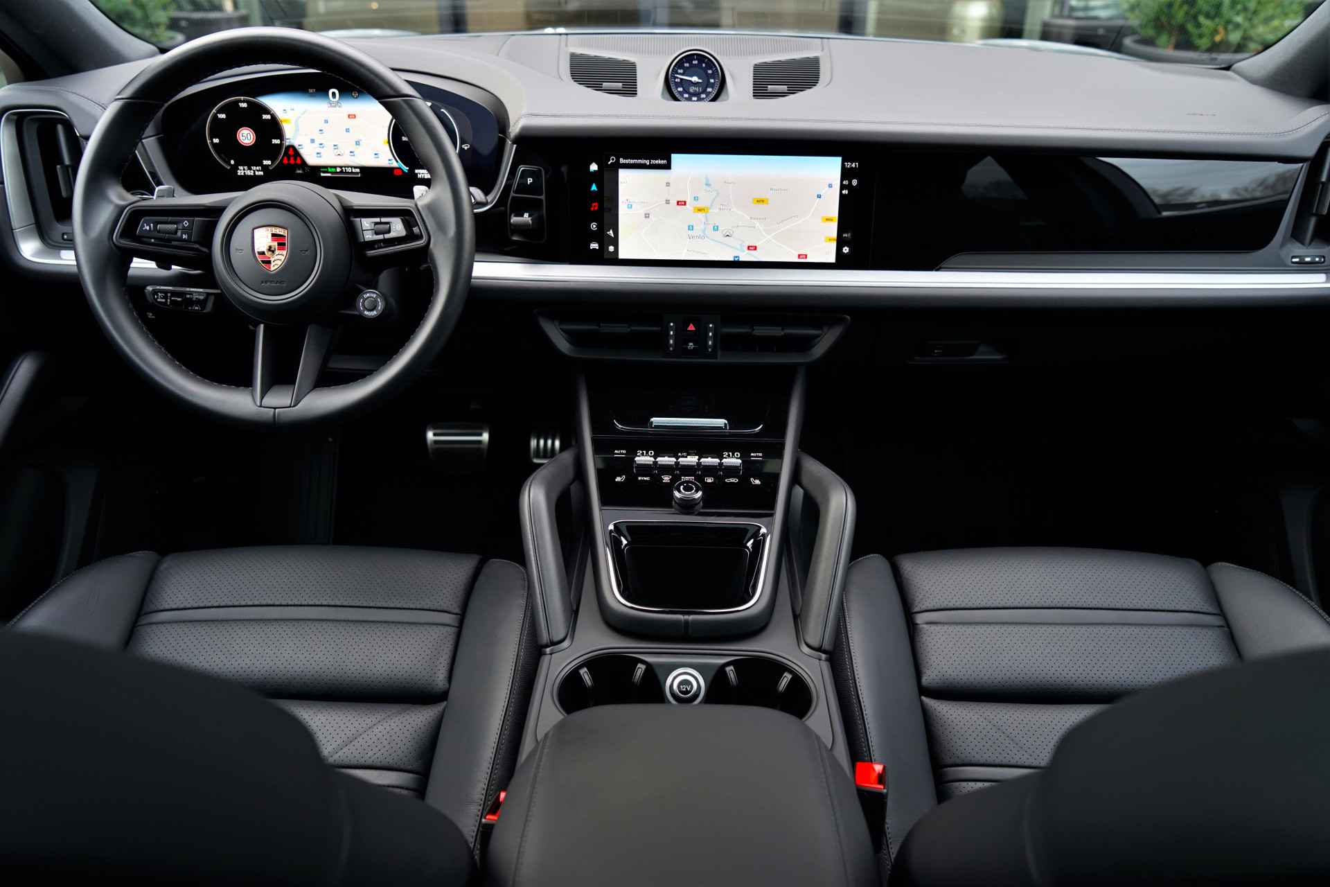 Per direct beschikbaar: Porsche Cayenne Coupé 3.0 S E-hybrid in SportDesign uitvoering en de speciale kleur 'Arctic Grey'. De Cayenne heeft nog volledige fabrieksgarantie en is compleet Porsche dealer onderhouden. De Porsche Cayenne S E-hybrid heeft gecombineerd vermogen van 520 pk en heeft een elektrische actieradius van +/- 90 kilometer. Het betreft een BTW-auto, waardoor de BTW voor de zakelijke rijder is terug te vorderen. Verder is deze Cayenne zeer compleet uitgevoerd met o.a. de volgende lijst aan opties: