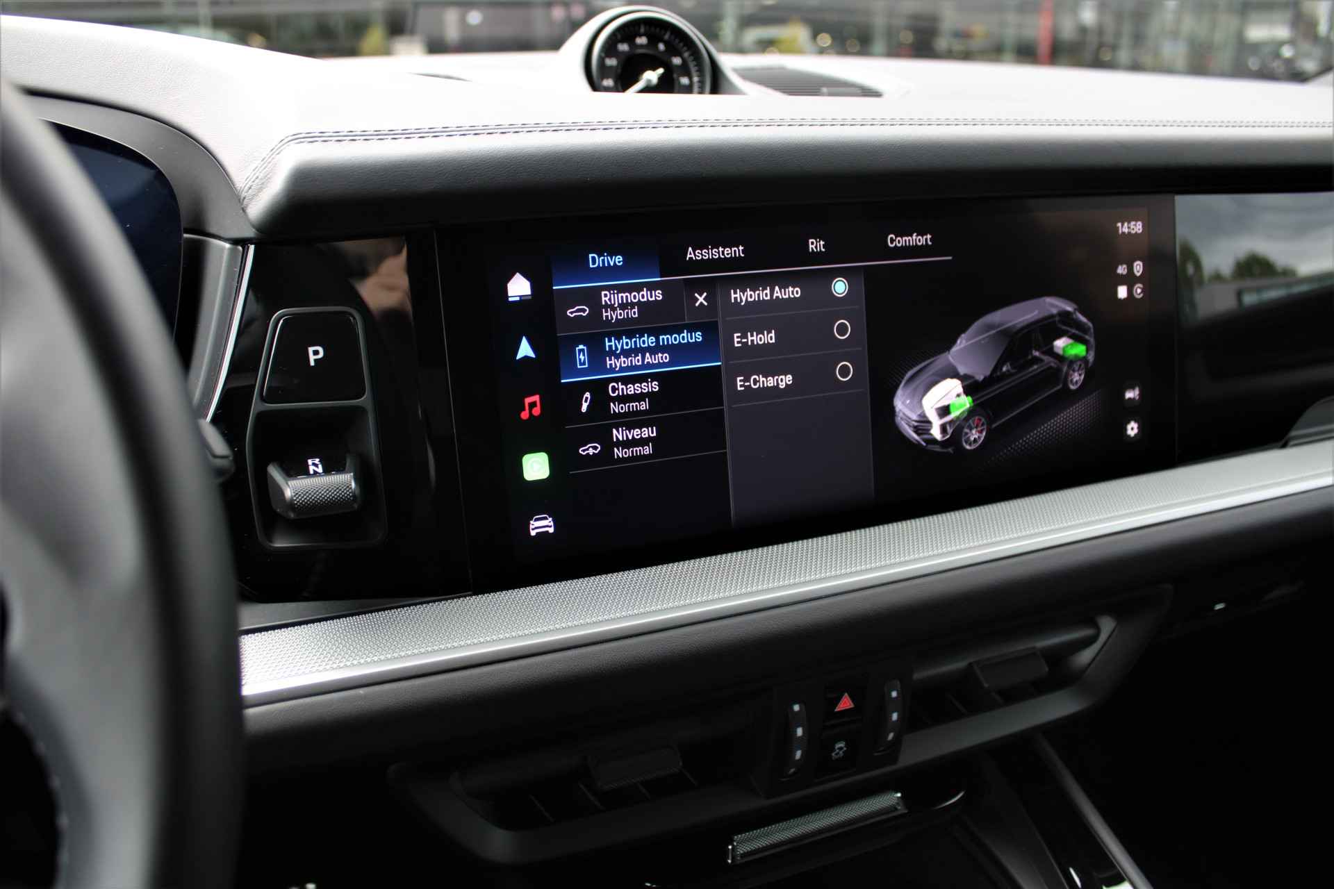 Per direct beschikbaar: Porsche Cayenne 3.0 S E-hybrid in SportDesign uitvoering en de speciale kleur 'Krijt Grijs'. De Cayenne heeft nog volledige fabrieksgarantie en is compleet Porsche dealer onderhouden. De Porsche Cayenne S E-hybrid heeft gecombineerd vermogen van 520 pk en heeft een elektrische actieradius van +/- 90 kilometer. Het betreft een BTW-auto, waardoor de BTW voor de zakelijke rijder is terug te vorderen. Verder is deze Cayenne zeer compleet uitgevoerd met o.a. de volgende lijst aan opties: