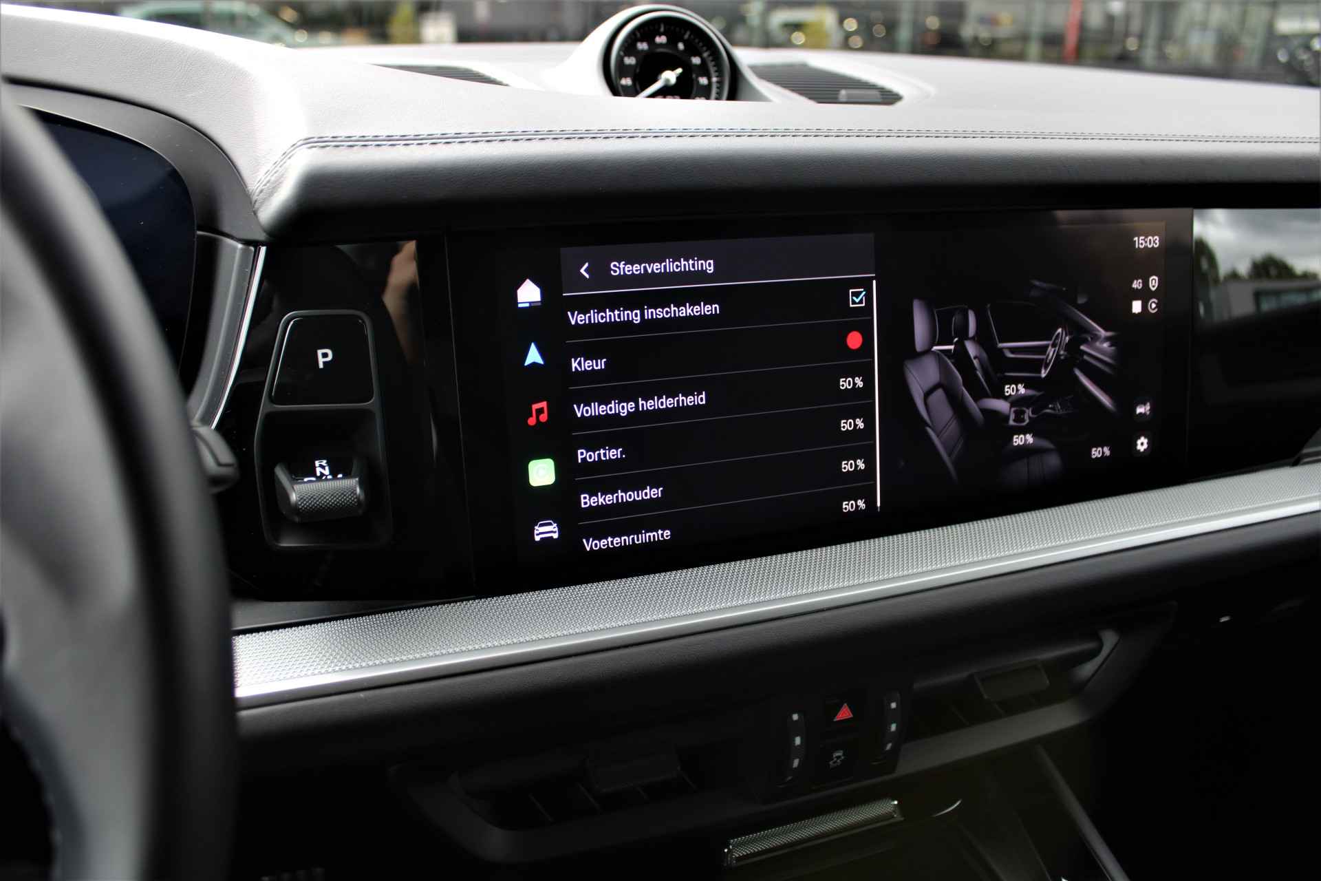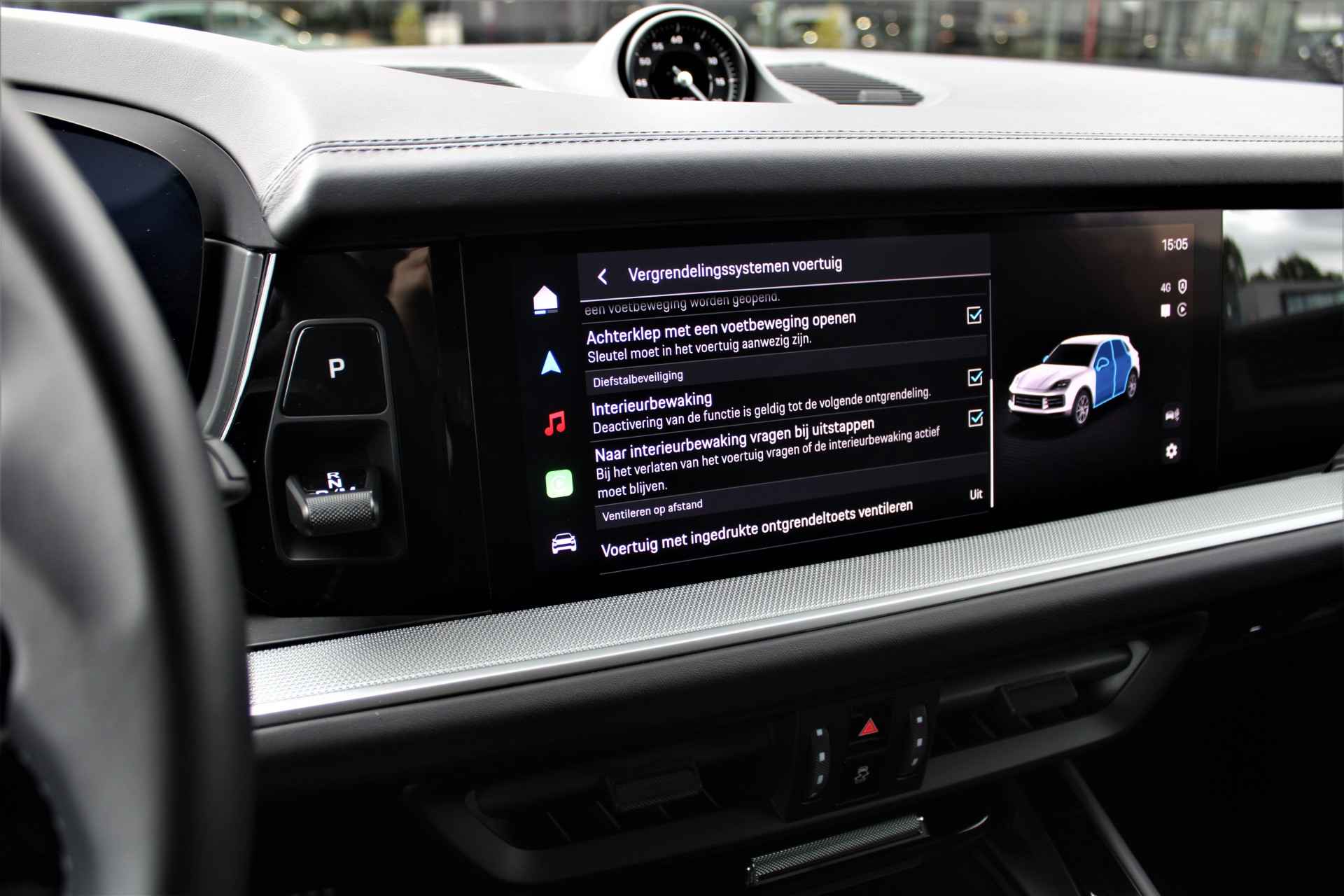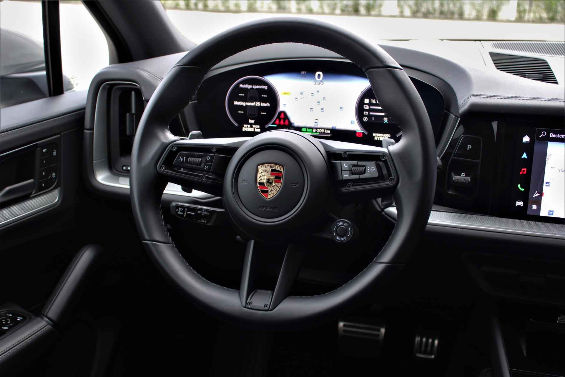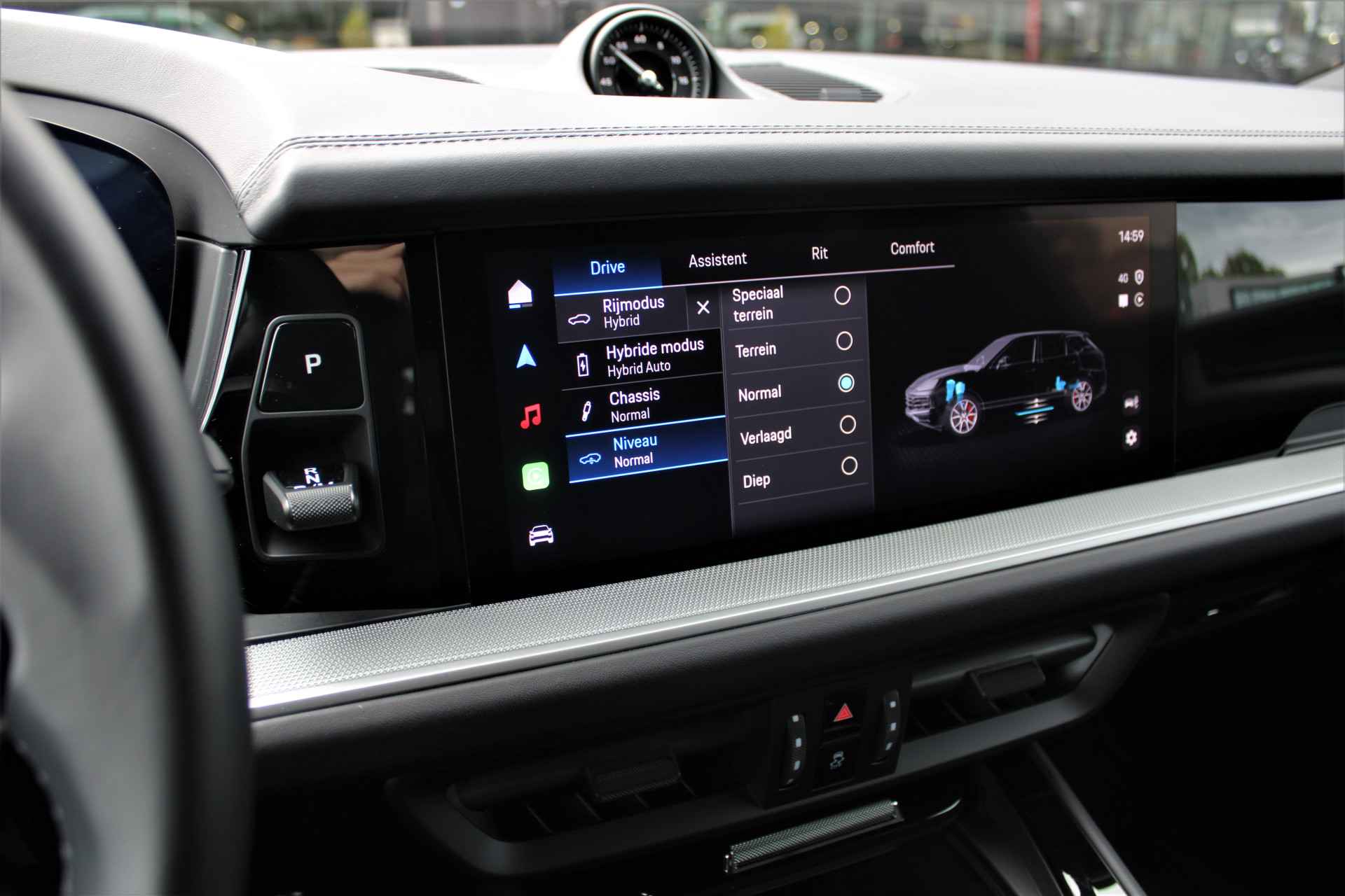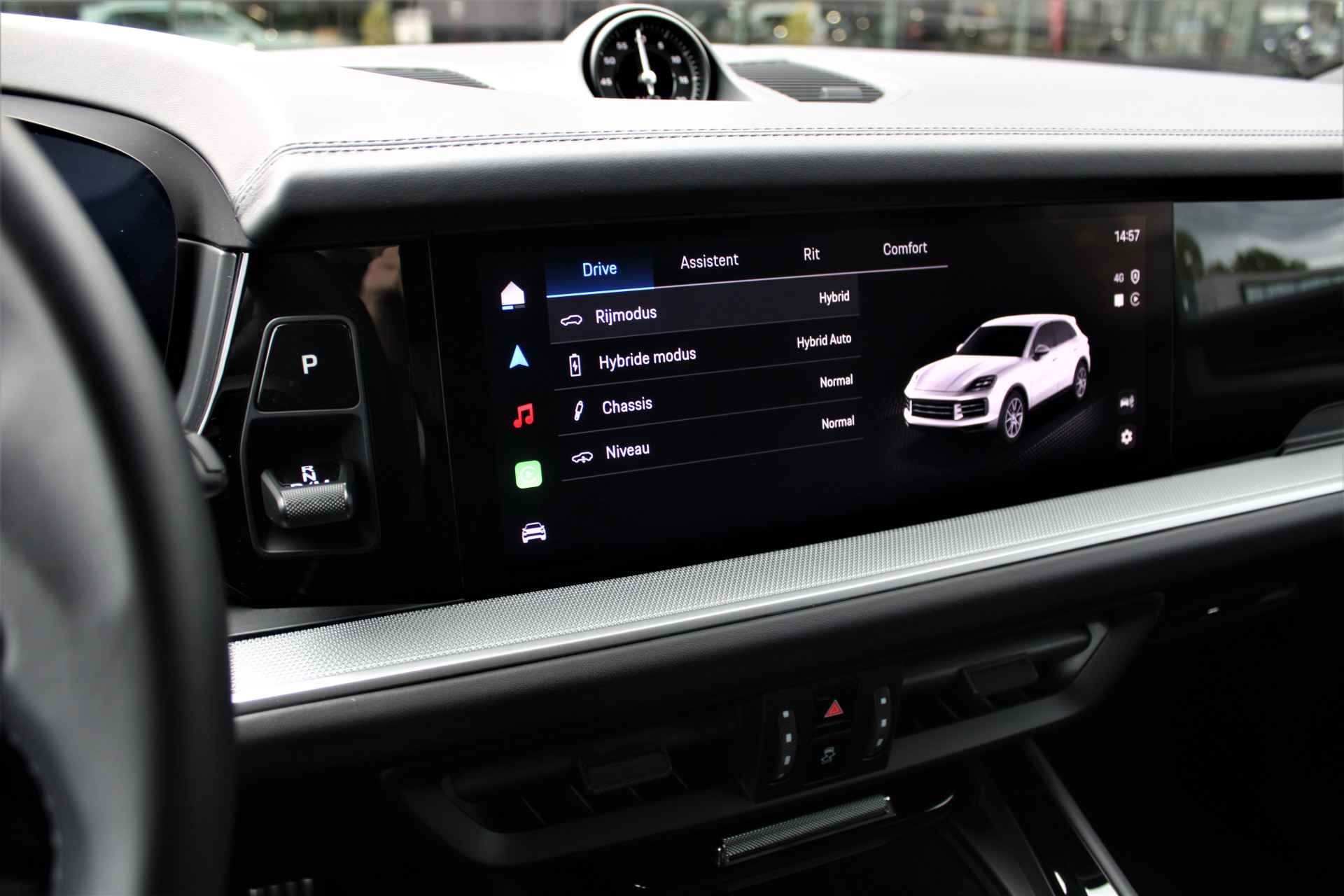 Per direct beschikbaar: Porsche Cayenne 3.0 S E-hybrid in SportDesign uitvoering en de speciale kleur 'Krijt Grijs'. De Cayenne heeft nog volledige fabrieksgarantie en is compleet Porsche dealer onderhouden. De Porsche Cayenne S E-hybrid heeft gecombineerd vermogen van 520 pk en heeft een elektrische actieradius van +/- 90 kilometer. Het betreft een BTW-auto, waardoor de BTW voor de zakelijke rijder is terug te vorderen. Verder is deze Cayenne zeer compleet uitgevoerd met o.a. de volgende lijst aan opties: